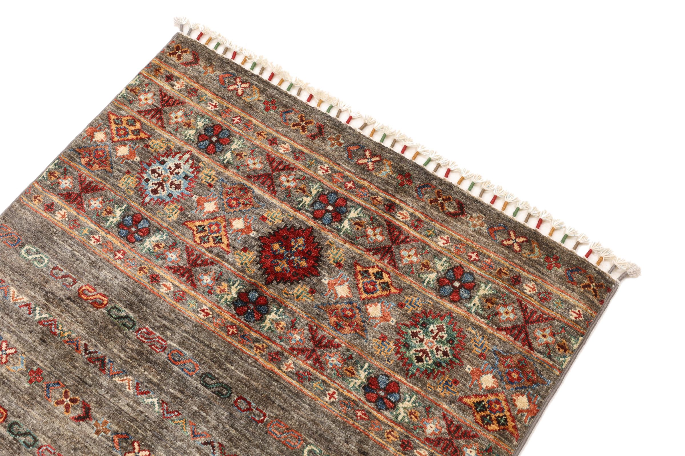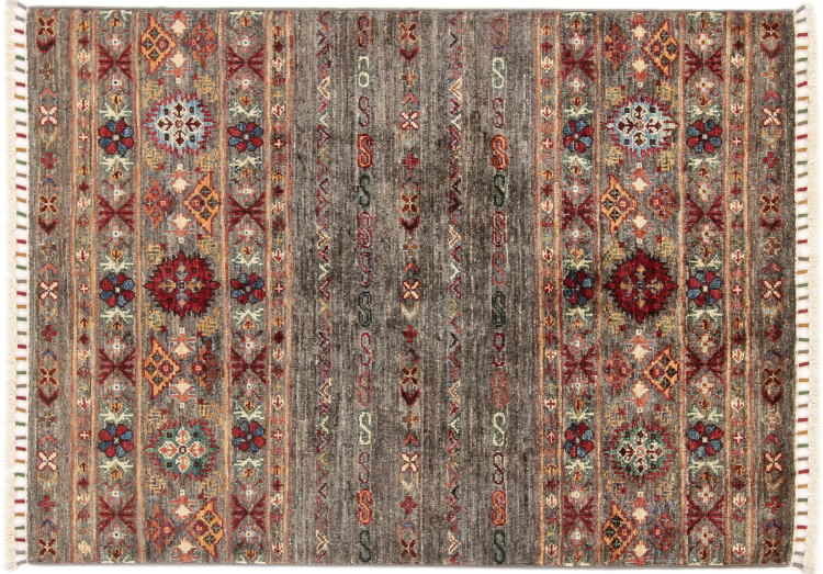 Este tapete Arijana Shaal foi atado à mão no Paquistão com a melhor perícia artesanal. Promete uma qualidade muito elevada e oferece assim um prazer duradouro. O padrão em listras é variado e excitante. Foi inspirado pelo conhecido desenho de Moharamati. Se os tapetes monocromáticos forem demasiado aborrecidos para si, ficará certamente encantado com esta Arijana Shaal.