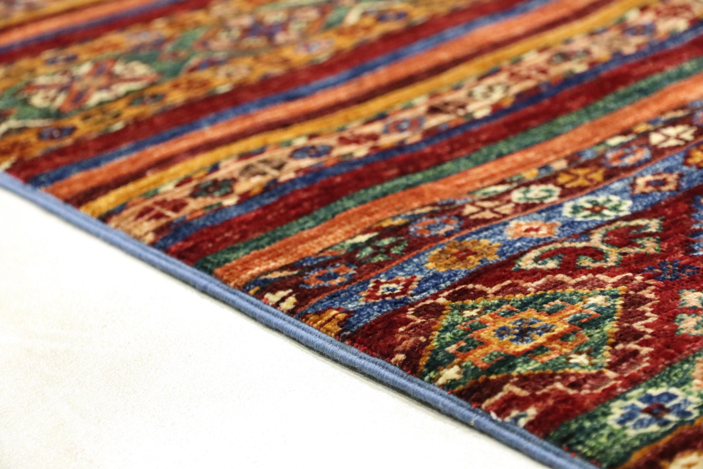 Este tapete Arijana Shaal foi atado à mão no Paquistão com a melhor perícia artesanal. Promete uma qualidade muito elevada e oferece assim um prazer duradouro. O padrão em listras é variado e excitante. Foi inspirado pelo conhecido desenho de Moharamati. Se os tapetes monocromáticos forem demasiado aborrecidos para si, ficará certamente encantado com esta Arijana Shaal.