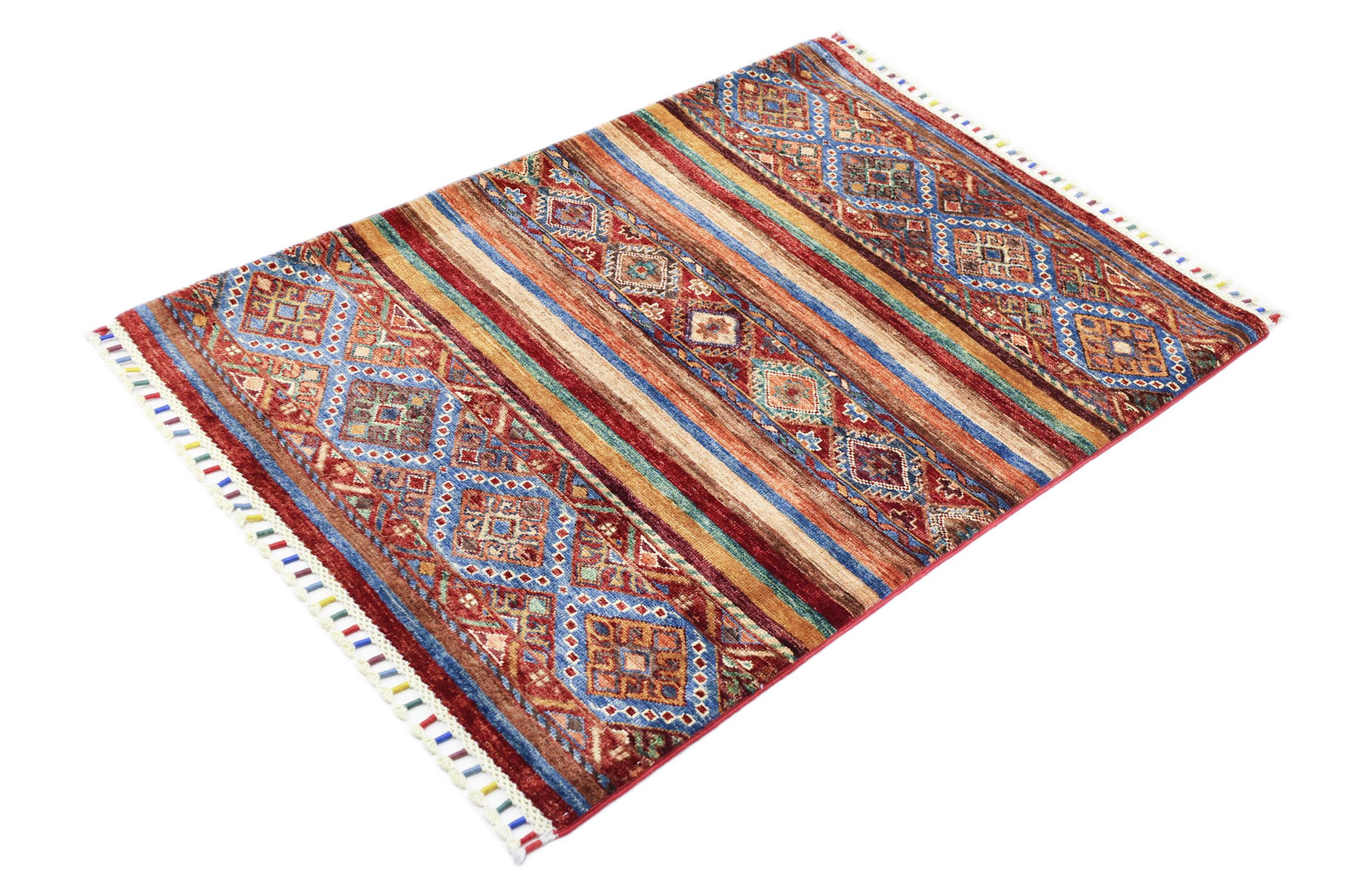 Nº do Tapete: 185071008064658 Tamanho: 122x91 cm Espessura: aproximadamente 5 mm Nós: 160 000 - 200 000 / m² Processamento: Atado à mão Veludo: Lã tecida à mão Urdidura: Algodão Origem: Afeganistão Idade: Novo Peso: aproximadamente 4 kg Em armazém: Único
