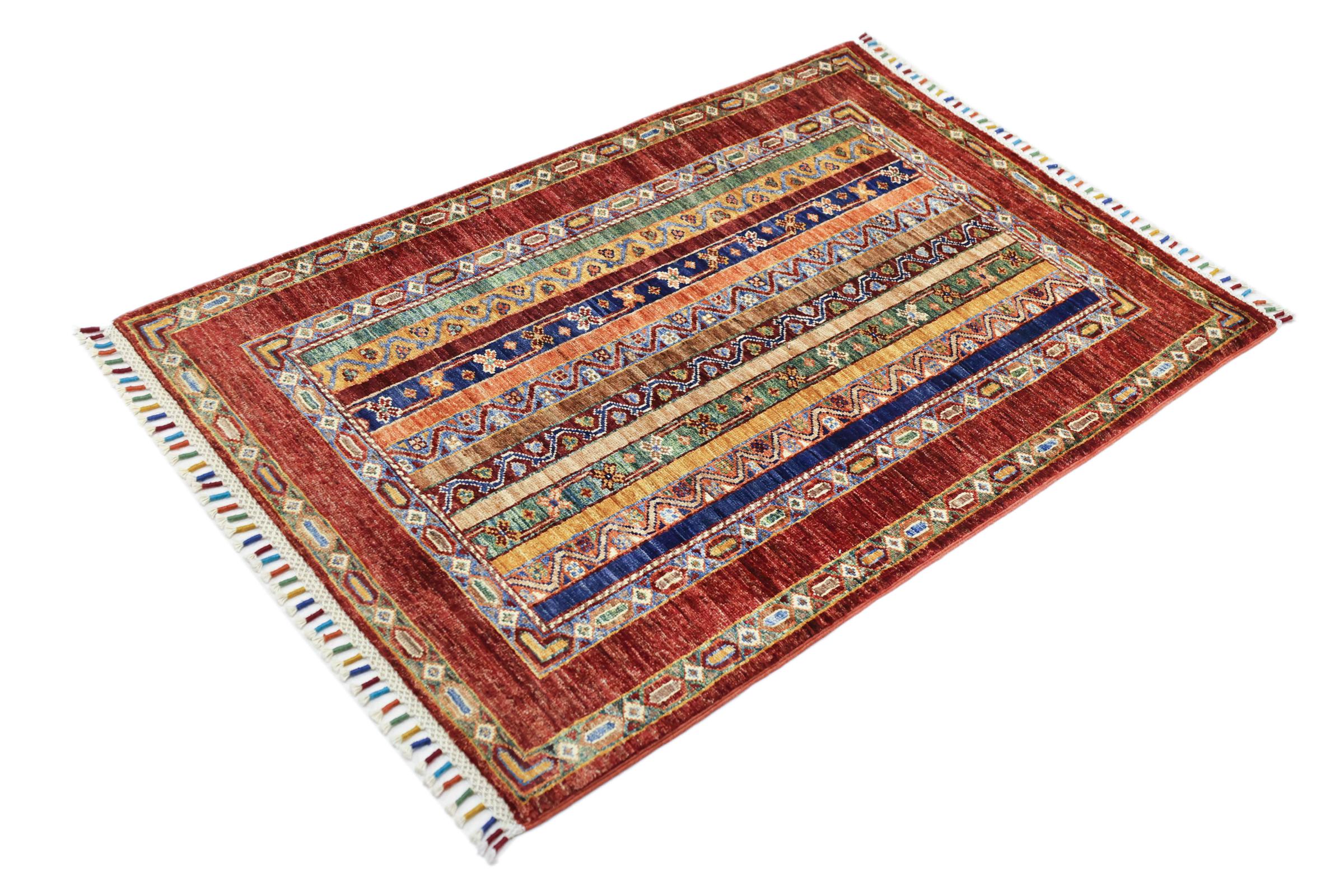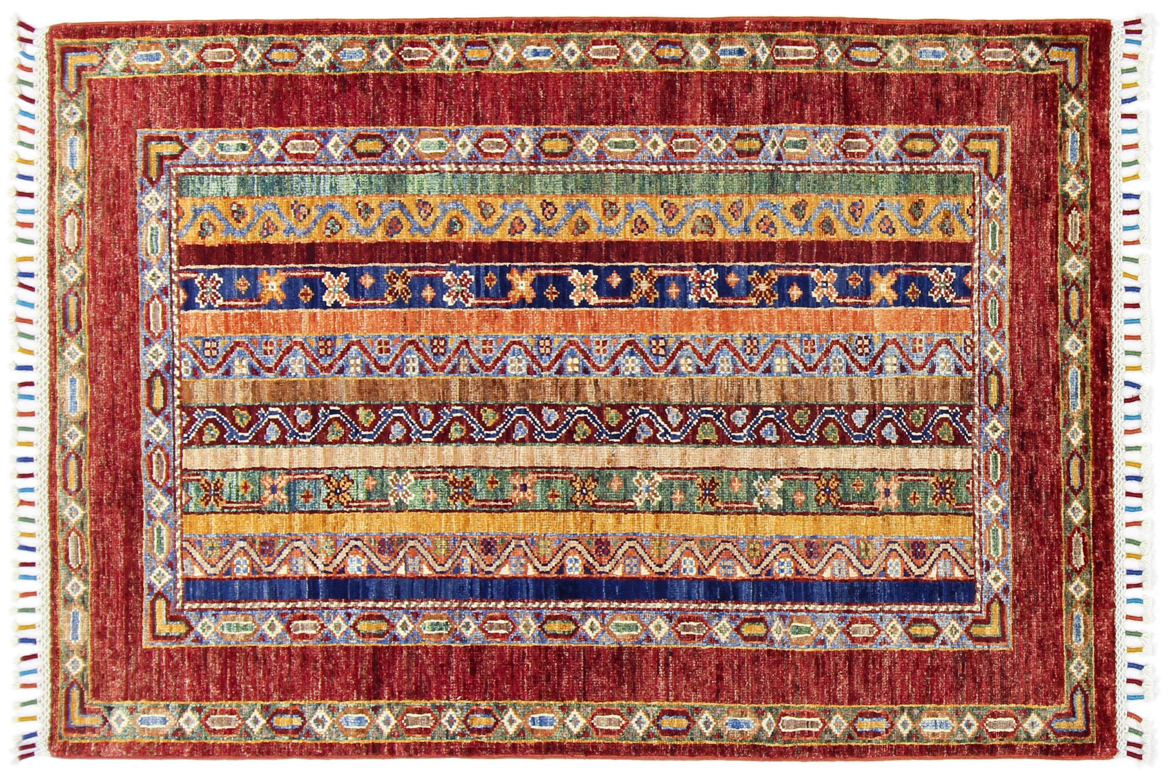 Nº do Tapete: 185052006988496 Tamanho: 124x86 cm Espessura: aproximadamente 5 mm Nós: 160 000 - 200 000 / m² Processamento: Atado à mão Veludo: Lã tecida à mão Urdidura: Algodão Origem: Afeganistão Idade: Novo Peso: aproximadamente 4 kg Em armazém: Único