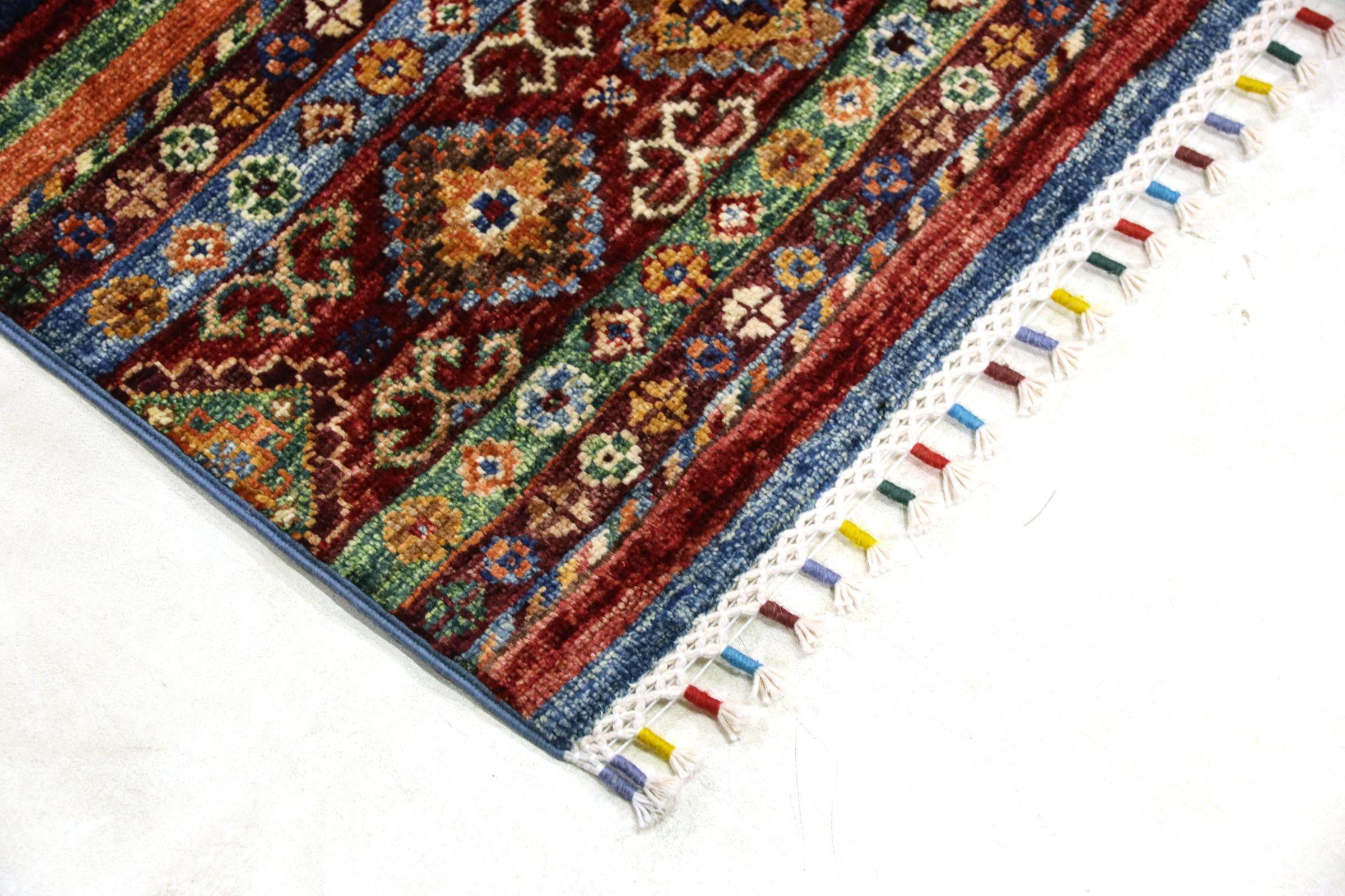 Nº do Tapete: 100962003807609 Tamanho: 125x79 cm Espessura: aproximadamente 5 mm Nós: 128 000 - 160 000 / m² Processamento: Atado à mão Veludo: Lã Natural Urdidura: Algodão Origem: Afeganistão Idade: Novo Peso: aproximadamente 3 kg Em armazém: Único