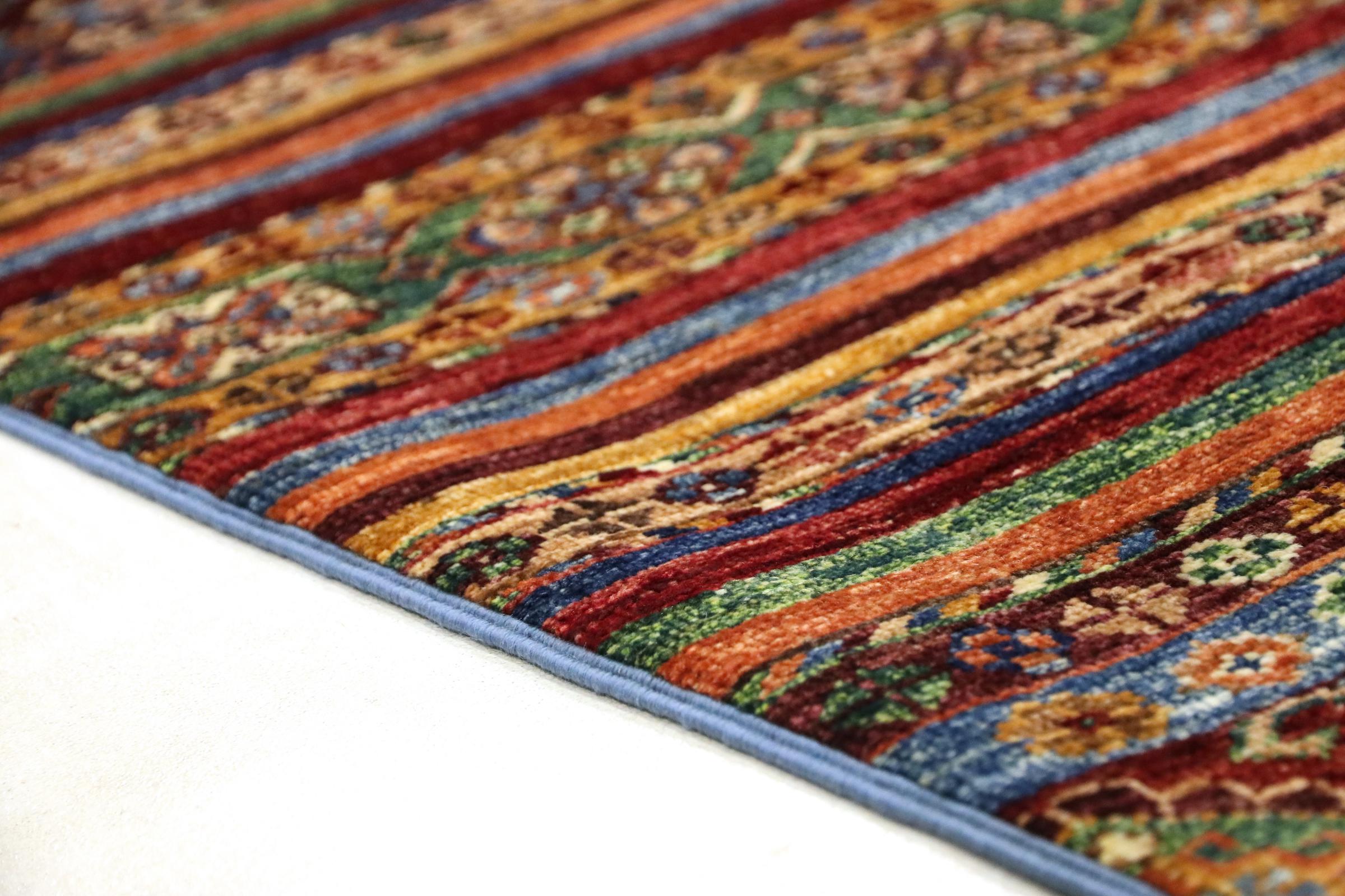 Este tapete Arijana Shaal foi atado à mão no Paquistão com a melhor perícia artesanal. Promete uma qualidade muito elevada e oferece assim um prazer duradouro. O padrão em listras é variado e excitante. Foi inspirado pelo conhecido desenho de Moharamati. Se os tapetes monocromáticos forem demasiado aborrecidos para si, ficará certamente encantado com esta Arijana Shaal.