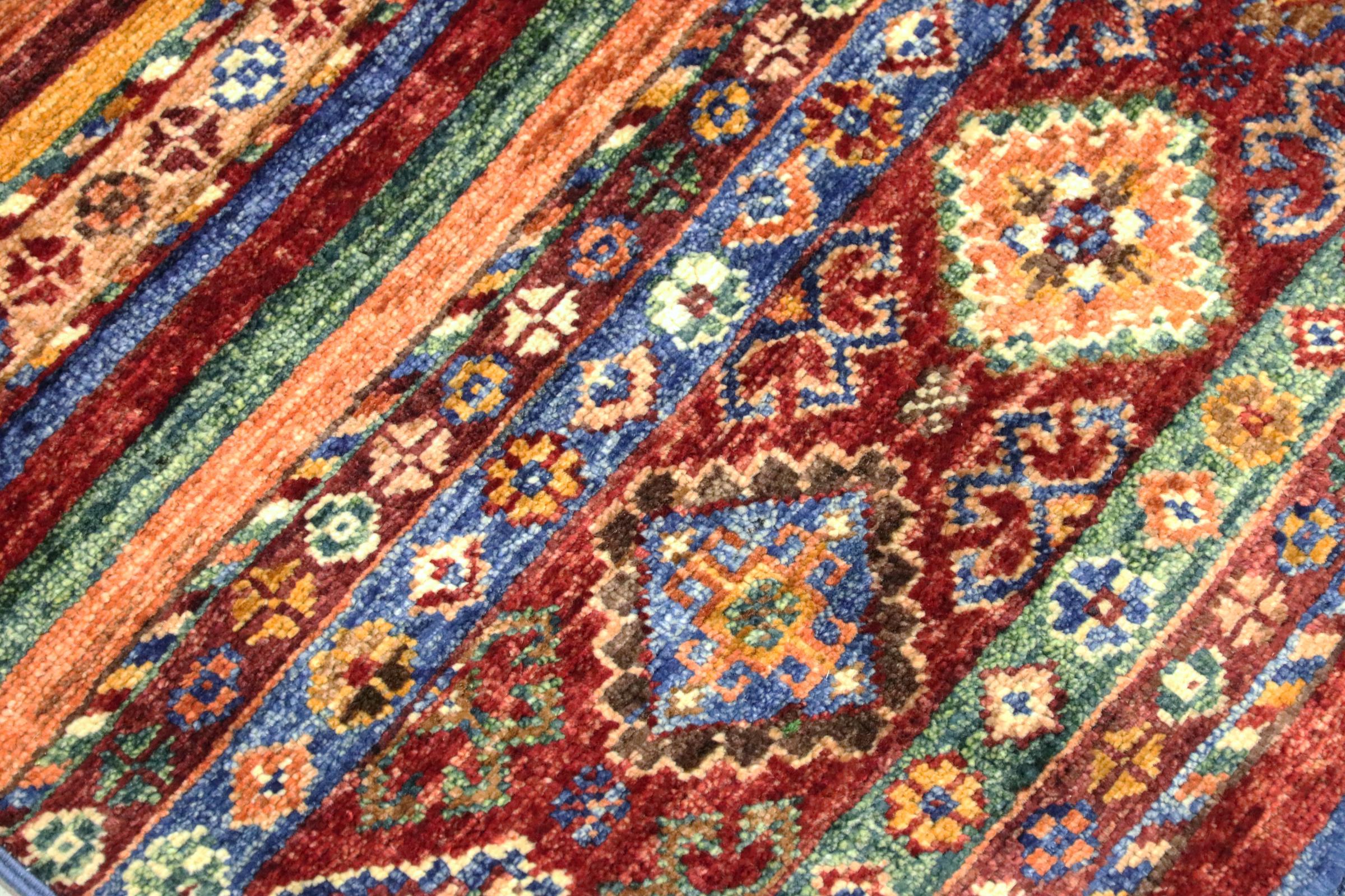Este tapete Arijana Shaal foi atado à mão no Paquistão com a melhor perícia artesanal. Promete uma qualidade muito elevada e oferece assim um prazer duradouro. O padrão em listras é variado e excitante. Foi inspirado pelo conhecido desenho de Moharamati. Se os tapetes monocromáticos forem demasiado aborrecidos para si, ficará certamente encantado com esta Arijana Shaal.