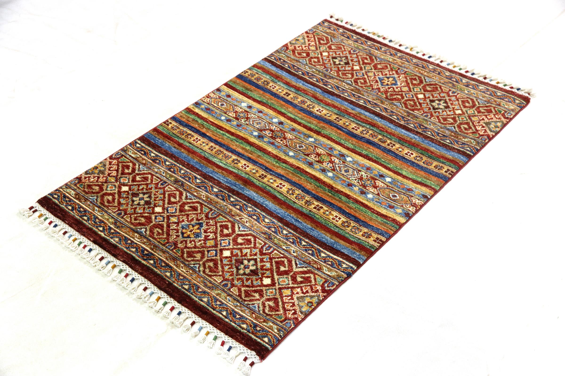 Nº do Tapete: 81204008585619 Tamanho: 126x79 cm Espessura: aproximadamente 5 mm Nós: 160 000 - 200 000 / m² Processamento: Atado à mão Veludo: Lã Natural Urdidura: Algodão Origem: Afeganistão Idade: Novo Peso: aproximadamente 3 kg Em armazém: Único