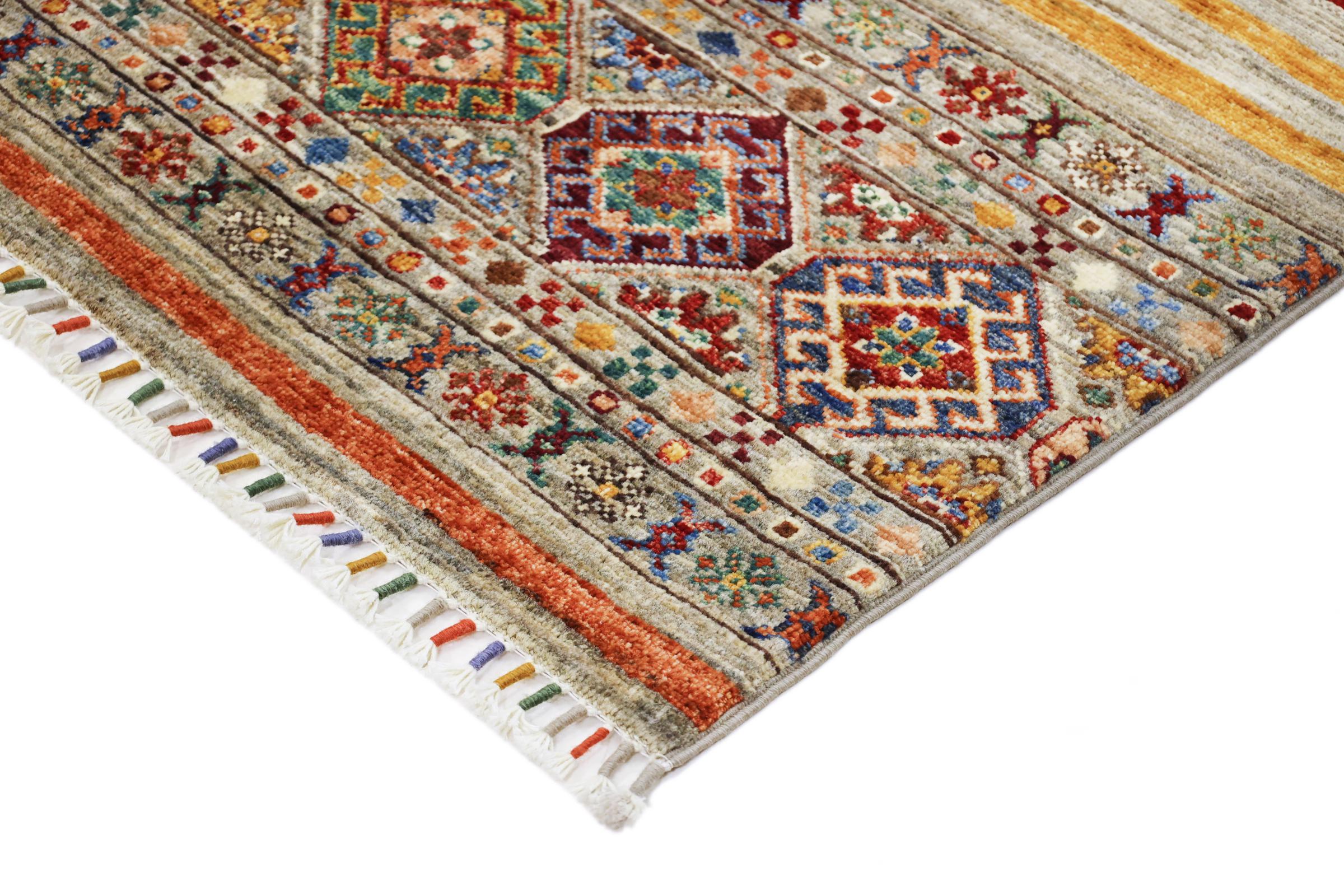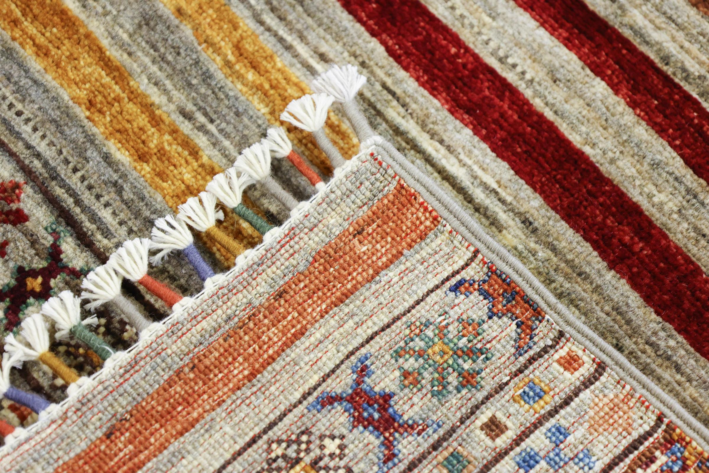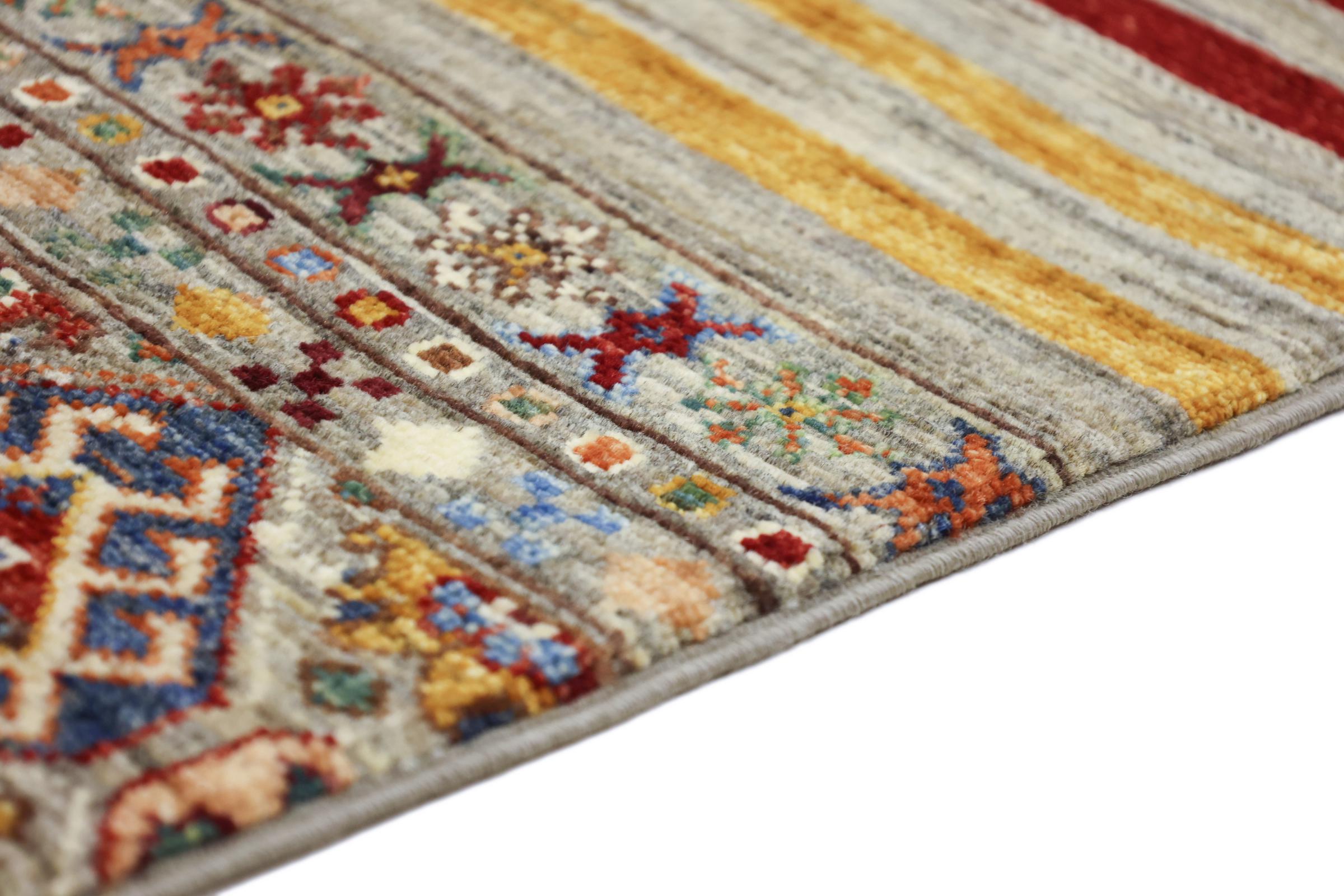 Este tapete Arijana Shaal foi atado à mão no Paquistão com a melhor perícia artesanal. Promete uma qualidade muito elevada e oferece assim um prazer duradouro. O padrão em listras é variado e excitante. Foi inspirado pelo conhecido desenho de Moharamati. Se os tapetes monocromáticos forem demasiado aborrecidos para si, ficará certamente encantado com esta Arijana Shaal.