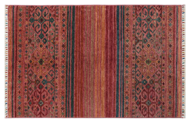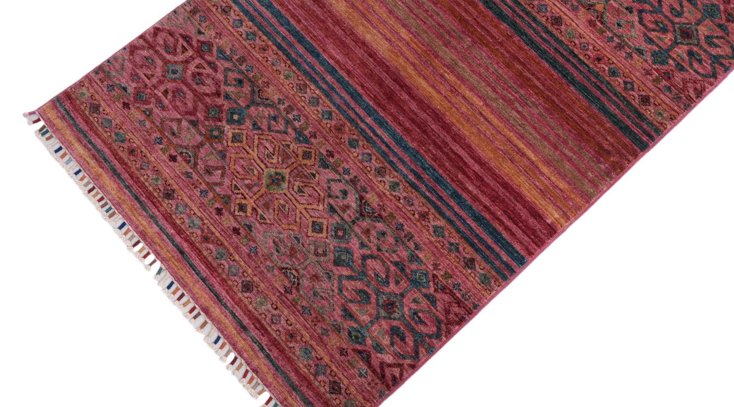 Este tapete Arijana Shaal foi atado à mão no Paquistão com a melhor perícia artesanal. Promete uma qualidade muito elevada e oferece assim um prazer duradouro. O padrão em listras é variado e excitante. Foi inspirado pelo conhecido desenho de Moharamati. Se os tapetes monocromáticos forem demasiado aborrecidos para si, ficará certamente encantado com esta Arijana Shaal.
