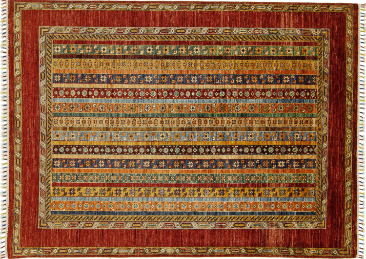 Este tapete Arijana Shaal foi atado à mão no Paquistão com a melhor perícia artesanal. Promete uma qualidade muito elevada e oferece assim um prazer duradouro. O padrão em listras é variado e excitante. Foi inspirado pelo conhecido desenho de Moharamati. Se os tapetes monocromáticos forem demasiado aborrecidos para si, ficará certamente encantado com esta Arijana Shaal.