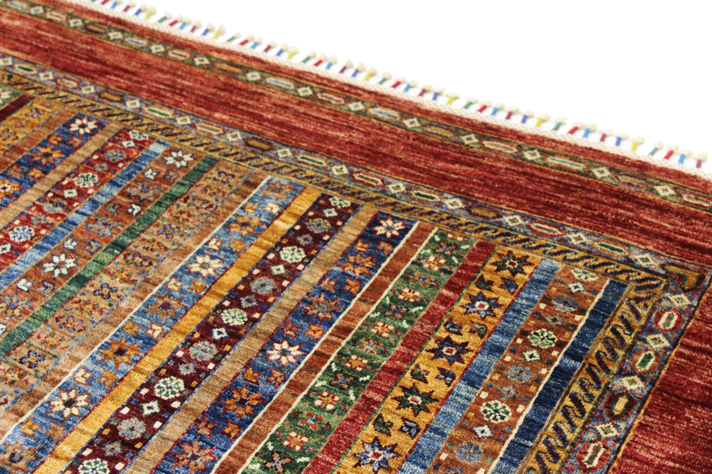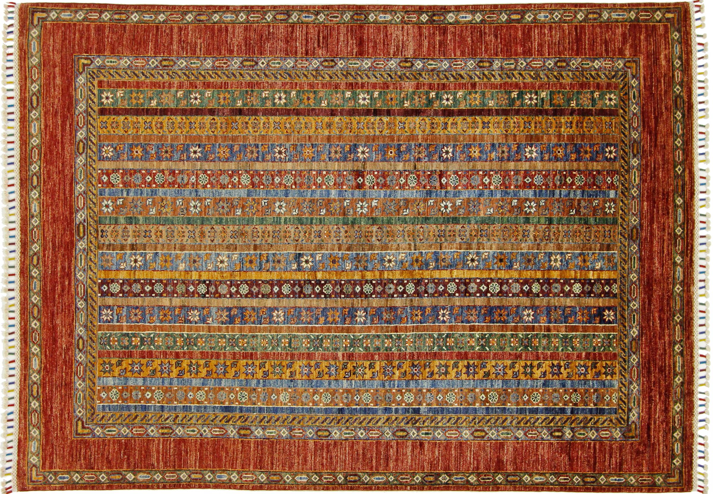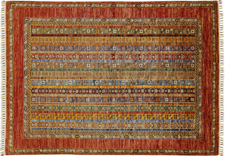Este tapete Arijana Shaal foi atado à mão no Paquistão com a melhor perícia artesanal. Promete uma qualidade muito elevada e oferece assim um prazer duradouro. O padrão em listras é variado e excitante. Foi inspirado pelo conhecido desenho de Moharamati. Se os tapetes monocromáticos forem demasiado aborrecidos para si, ficará certamente encantado com esta Arijana Shaal.