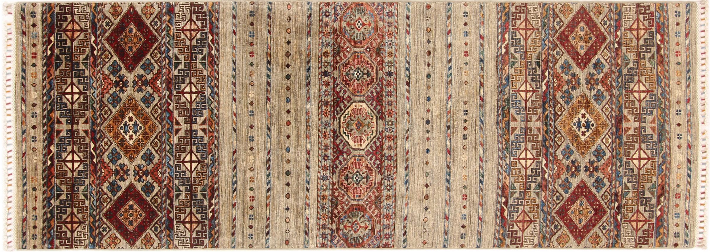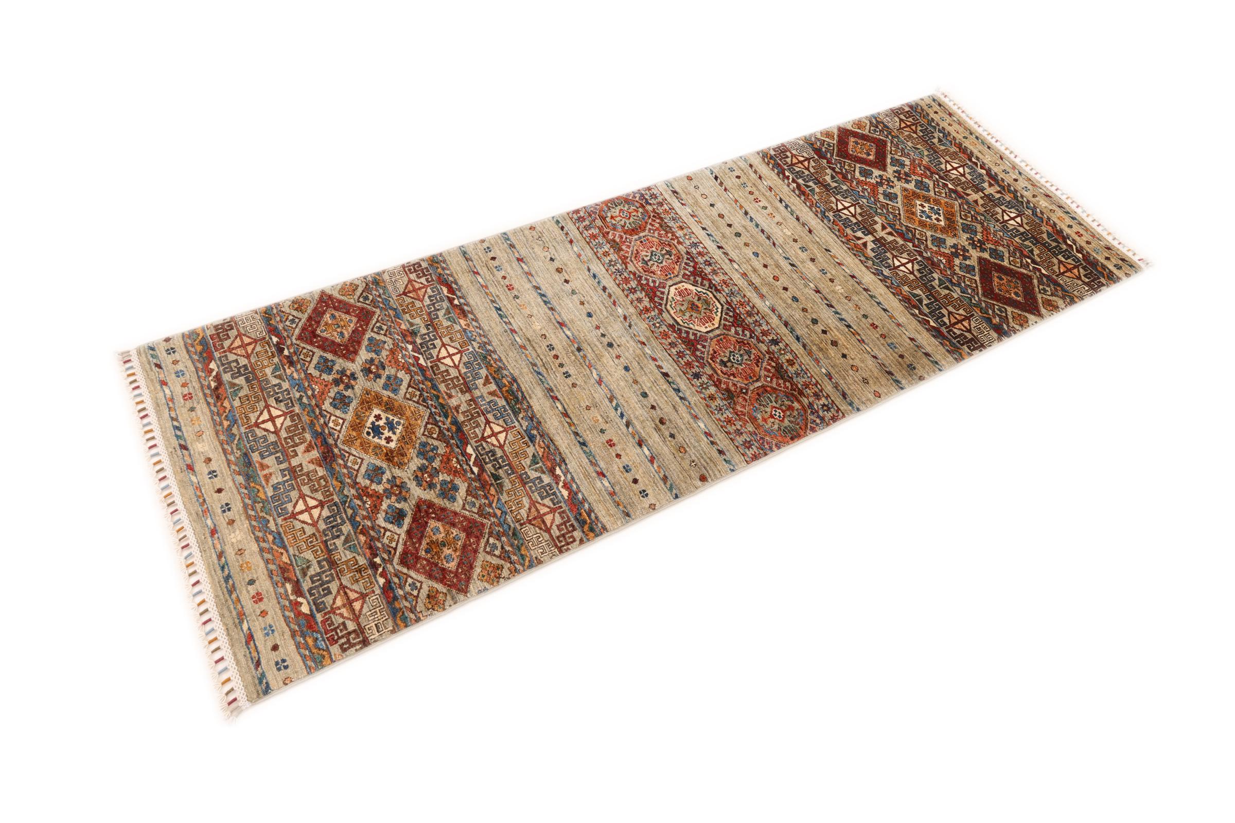 Nº do Tapete: 213060009861973 Tamanho: 235x83 cm Espessura: aproximadamente 5 mm Nós: 128 000 - 160 000 / m² Processamento: Atado à mão Veludo: Lã tecida à mão Urdidura: Algodão Origem: Afeganistão Idade: Novo Peso: aproximadamente 7 kg Em armazém: Único