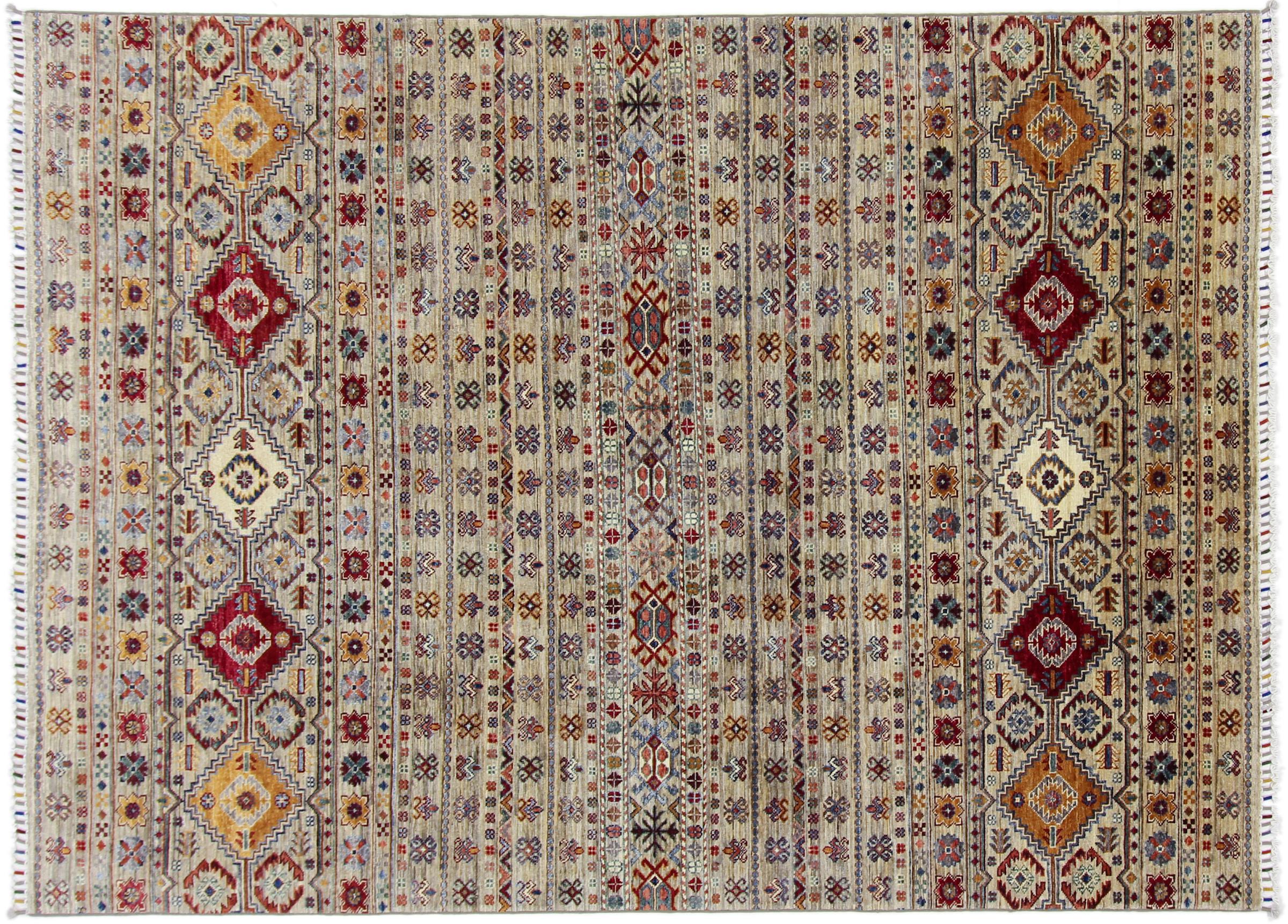Este tapete Arijana Shaal foi atado à mão no Paquistão com a melhor perícia artesanal. Promete uma qualidade muito elevada e oferece assim um prazer duradouro. O padrão em listras é variado e excitante. Foi inspirado pelo conhecido desenho de Moharamati. Se os tapetes monocromáticos forem demasiado aborrecidos para si, ficará certamente encantado com esta Arijana Shaal.