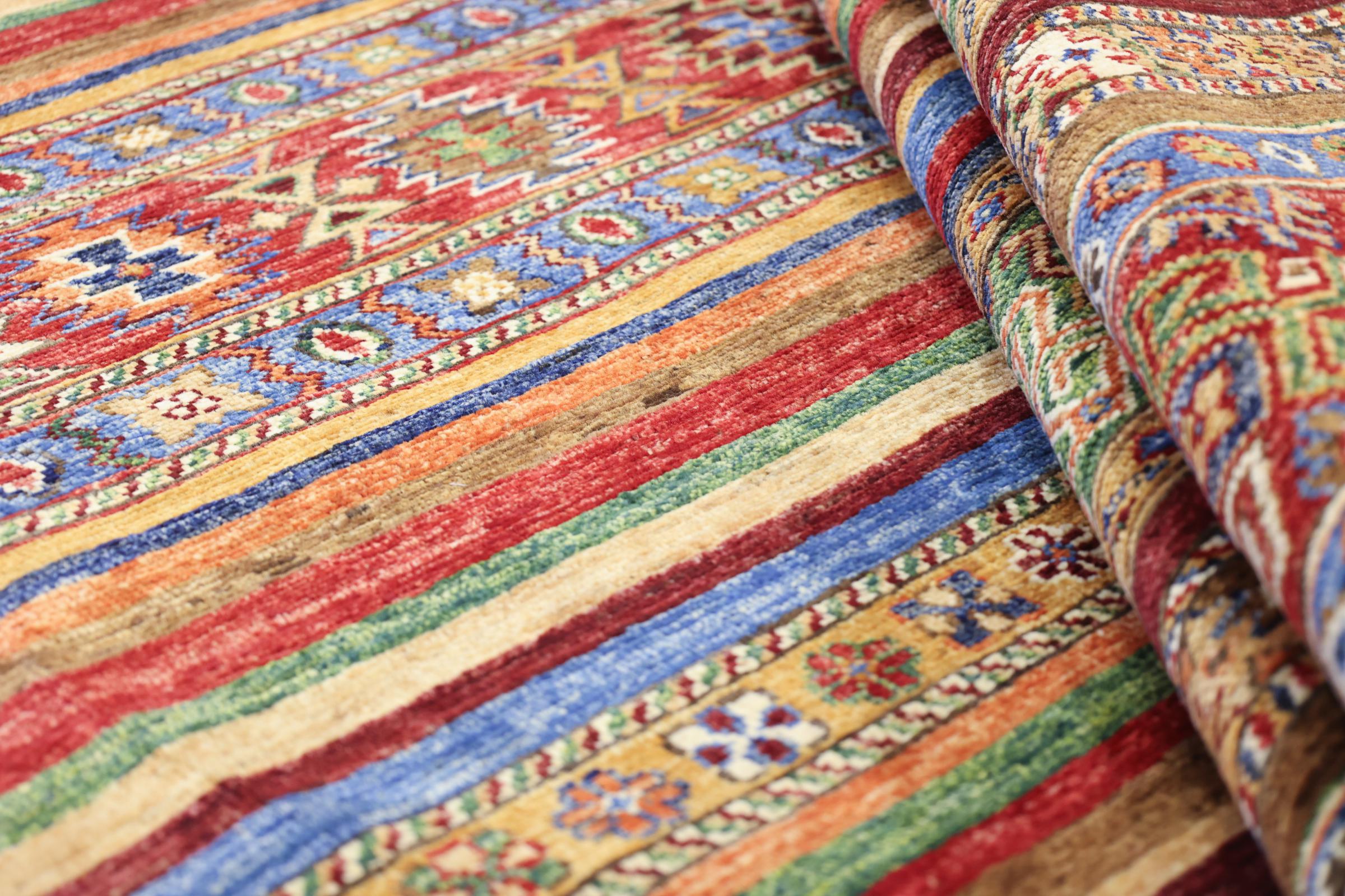 Este tapete Arijana Shaal foi atado à mão no Paquistão com a melhor perícia artesanal. Promete uma qualidade muito elevada e oferece assim um prazer duradouro. O padrão em listras é variado e excitante. Foi inspirado pelo conhecido desenho de Moharamati. Se os tapetes monocromáticos forem demasiado aborrecidos para si, ficará certamente encantado com esta Arijana Shaal.