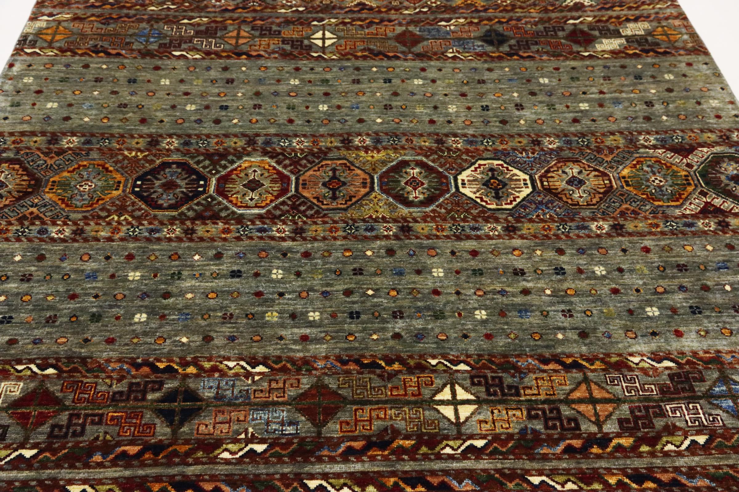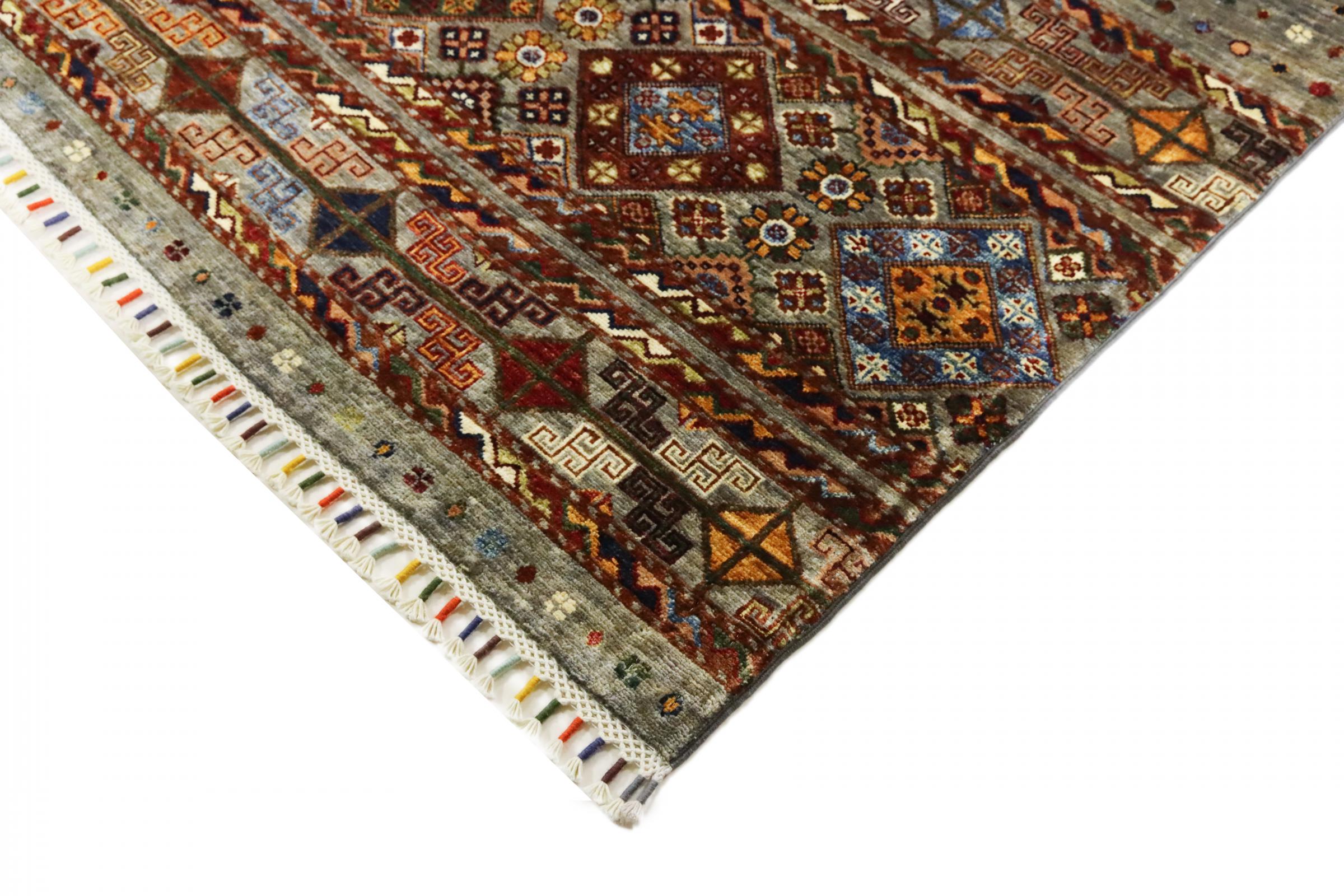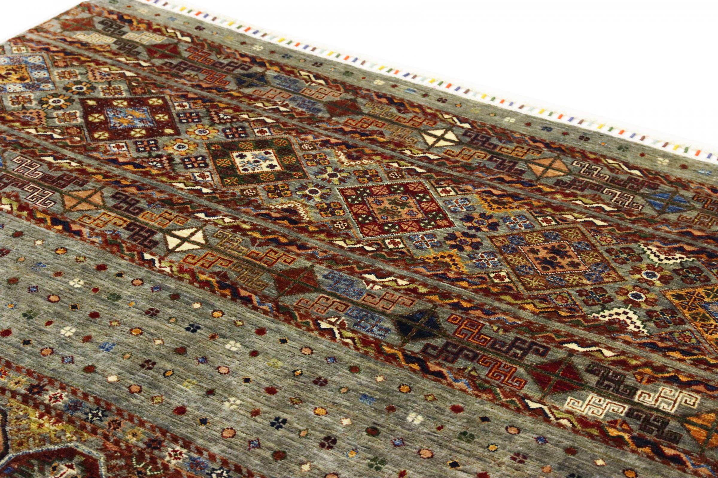 Este tapete Arijana Shaal foi atado à mão no Paquistão com a melhor perícia artesanal. Promete uma qualidade muito elevada e oferece assim um prazer duradouro. O padrão em listras é variado e excitante. Foi inspirado pelo conhecido desenho de Moharamati. Se os tapetes monocromáticos forem demasiado aborrecidos para si, ficará certamente encantado com esta Arijana Shaal.