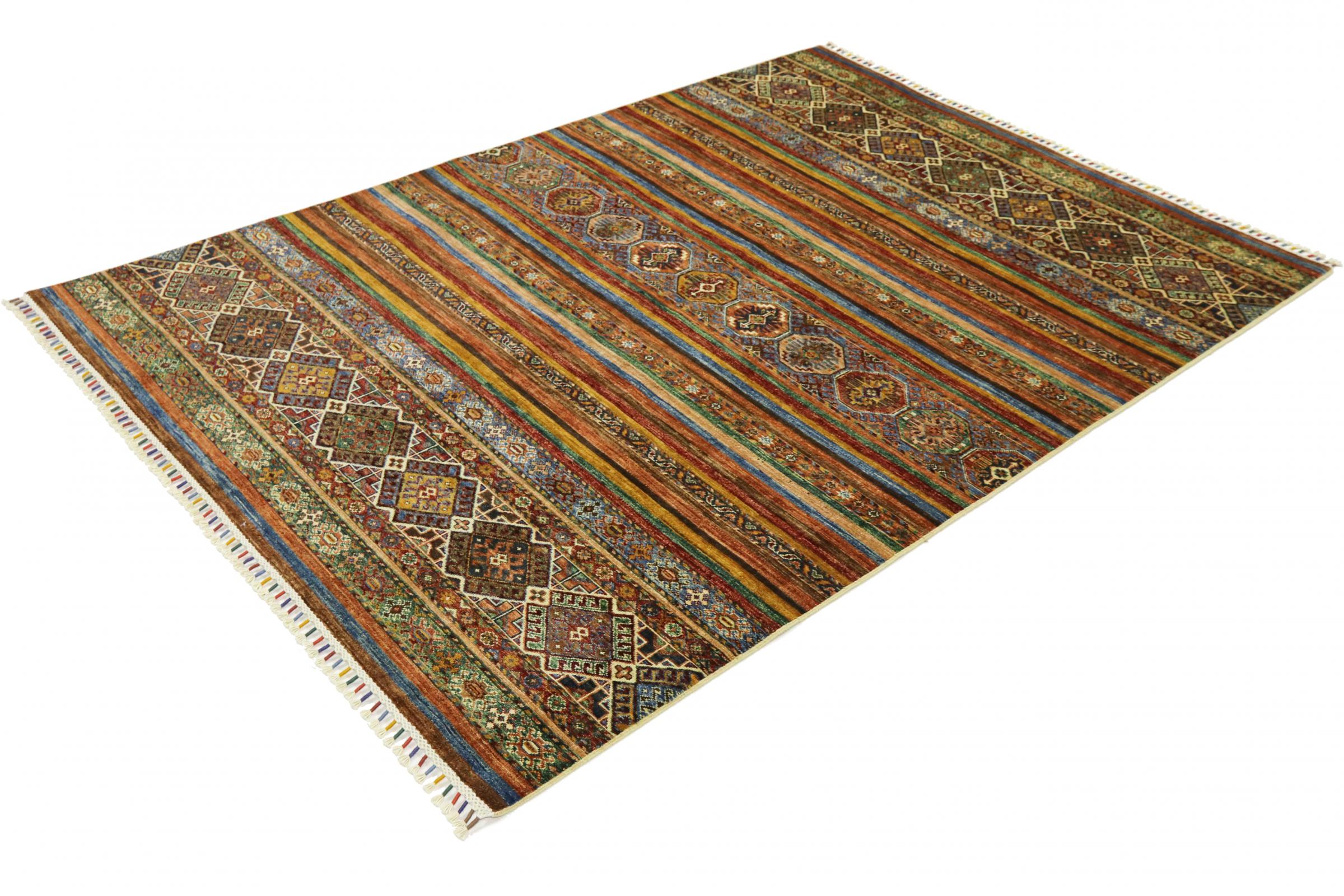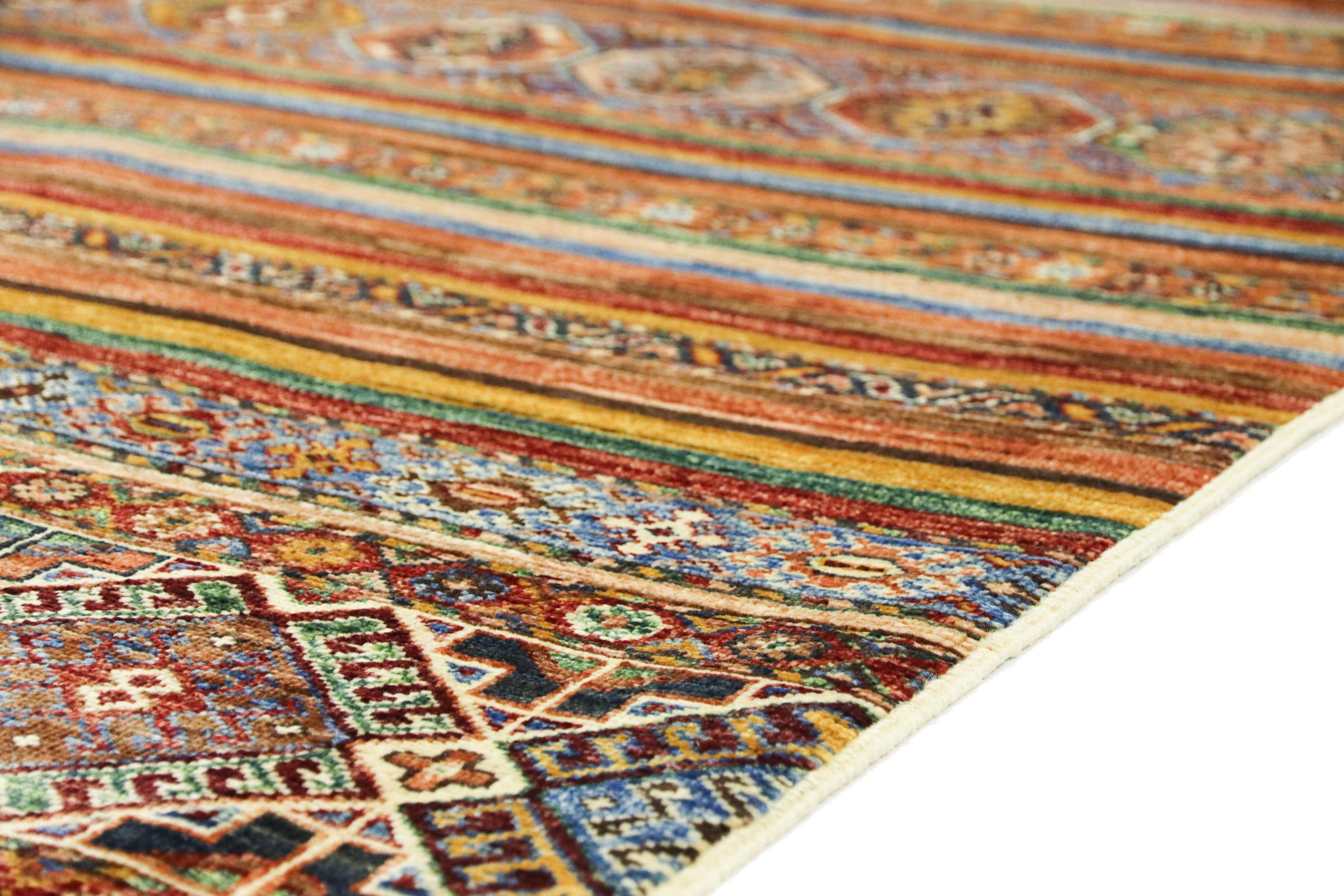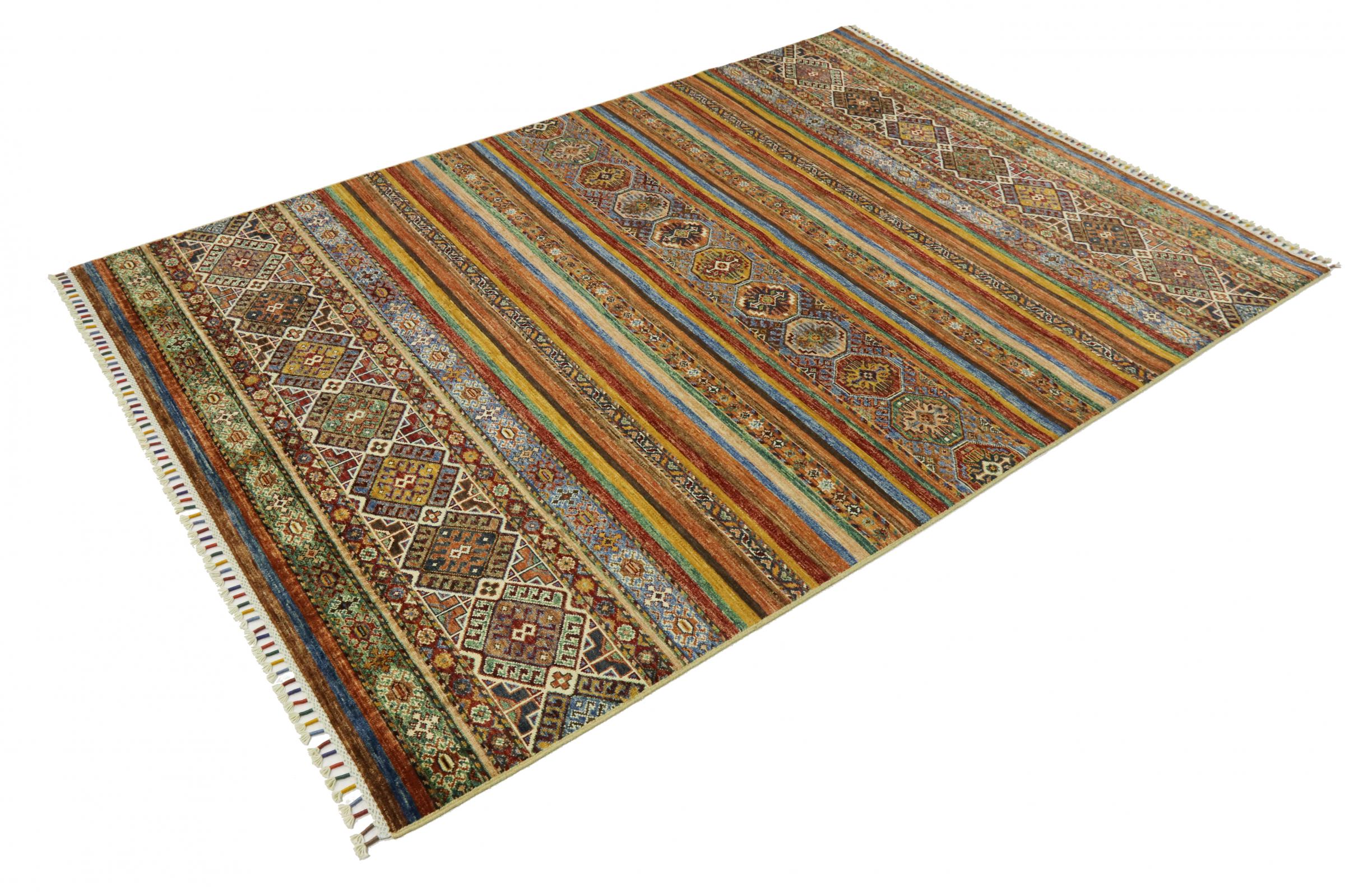 Este tapete Arijana Shaal foi atado à mão no Paquistão com a melhor perícia artesanal. Promete uma qualidade muito elevada e oferece assim um prazer duradouro. O padrão em listras é variado e excitante. Foi inspirado pelo conhecido desenho de Moharamati. Se os tapetes monocromáticos forem demasiado aborrecidos para si, ficará certamente encantado com esta Arijana Shaal.