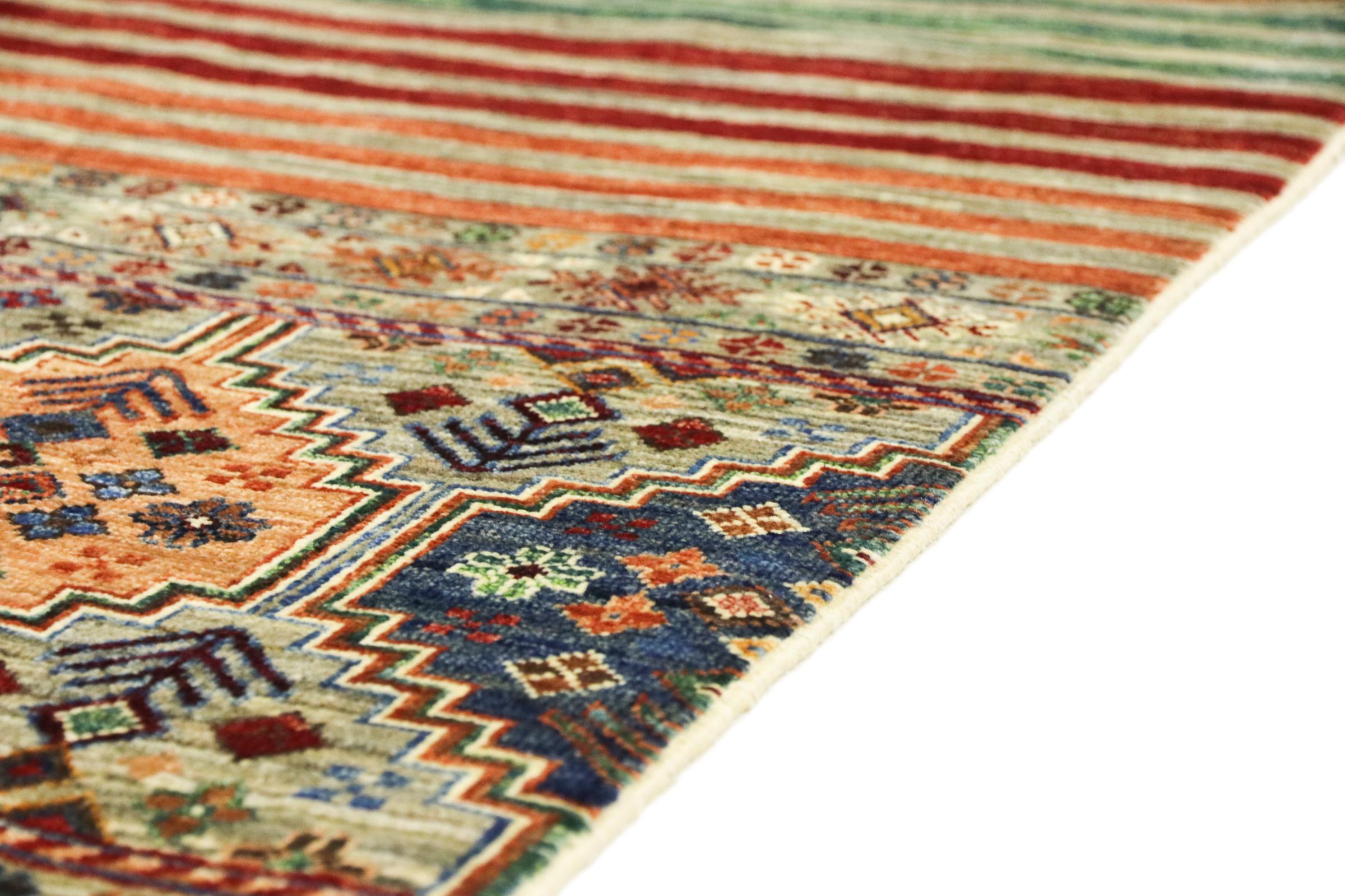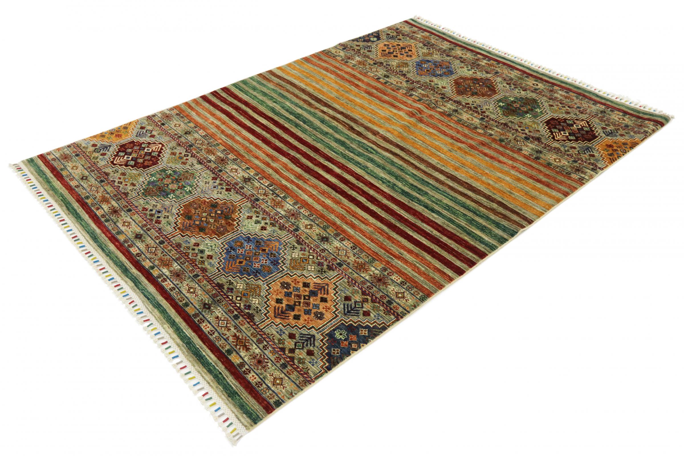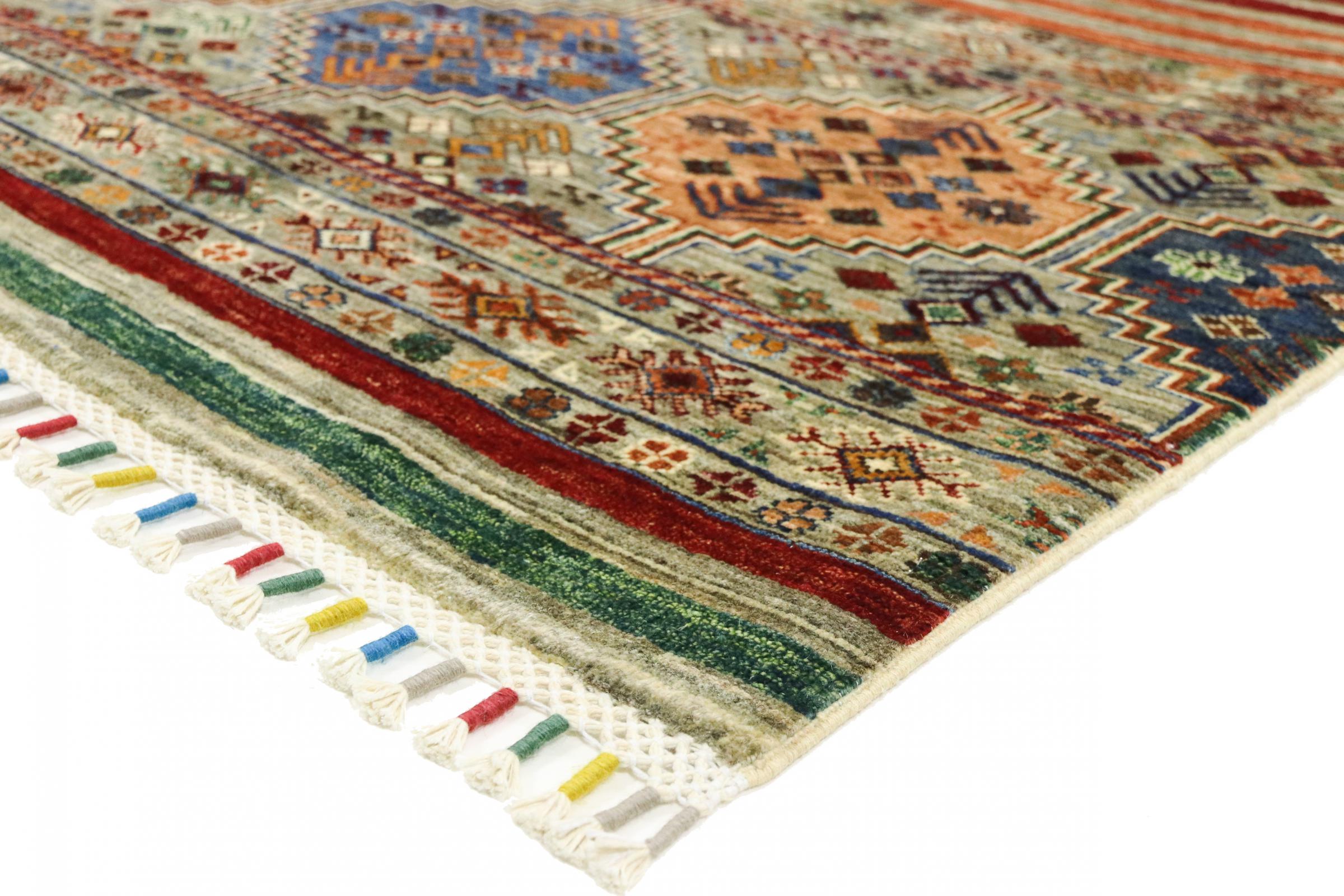 Este tapete Arijana Shaal foi atado à mão no Paquistão com a melhor perícia artesanal. Promete uma qualidade muito elevada e oferece assim um prazer duradouro. O padrão em listras é variado e excitante. Foi inspirado pelo conhecido desenho de Moharamati. Se os tapetes monocromáticos forem demasiado aborrecidos para si, ficará certamente encantado com esta Arijana Shaal.
