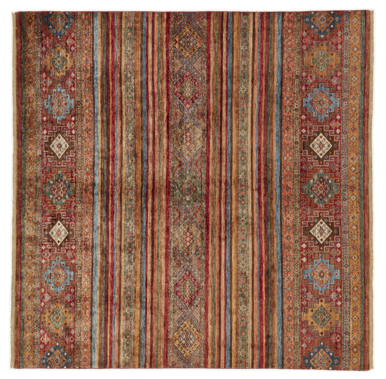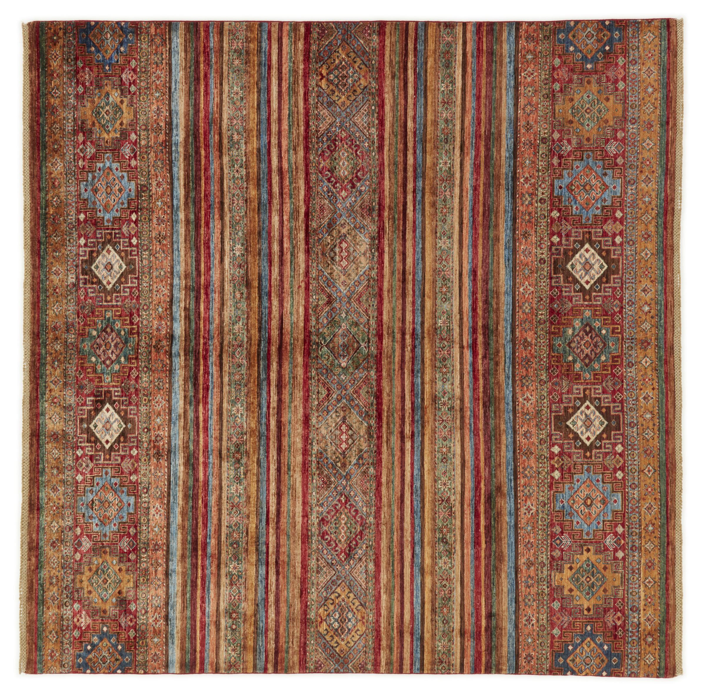 Nº do Tapete: 310329007092390 Tamanho: 253x256 cm Espessura: aproximadamente 5 mm Nós: 144 000 - 180 000 / m² Processamento: Atado à mão Veludo: Lã tecida à mão Urdidura: Algodão Origem: Afeganistão Idade: Novo Peso: aproximadamente 23 kg Em armazém: Único - Apenas 1 em stock