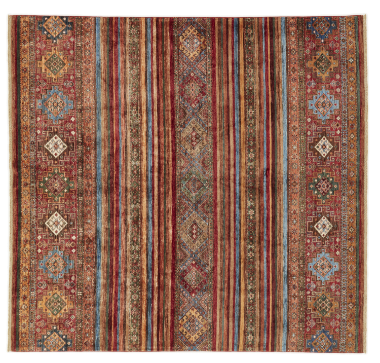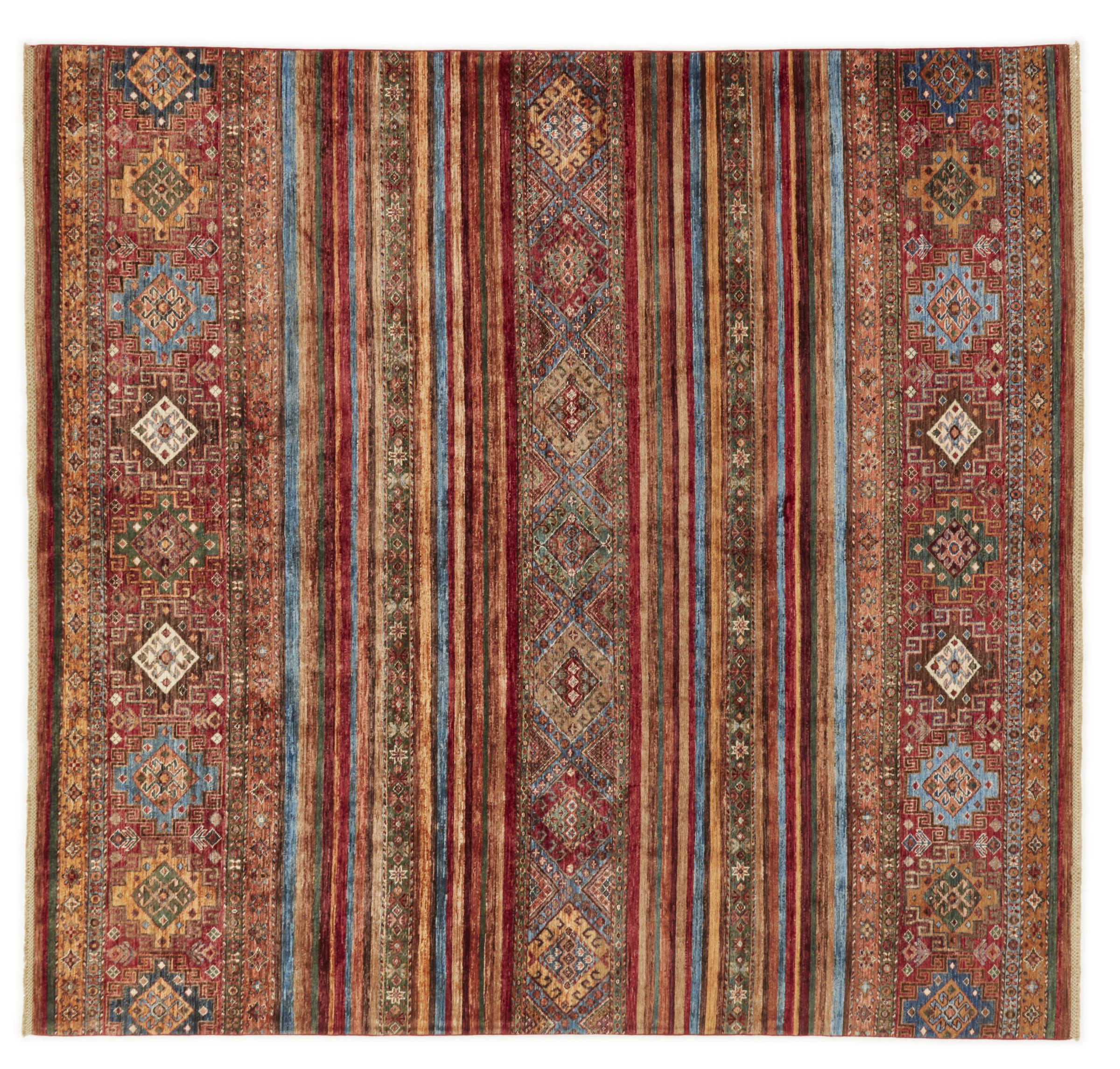Nº do Tapete: 310328009322316 Tamanho: 259x248 cm Espessura: aproximadamente 5 mm Nós: 144 000 - 180 000 / m² Processamento: Atado à mão Veludo: Lã tecida à mão Urdidura: Algodão Origem: Afeganistão Idade: Novo Peso: aproximadamente 22 kg Em armazém: Único - Apenas 1 em stock
