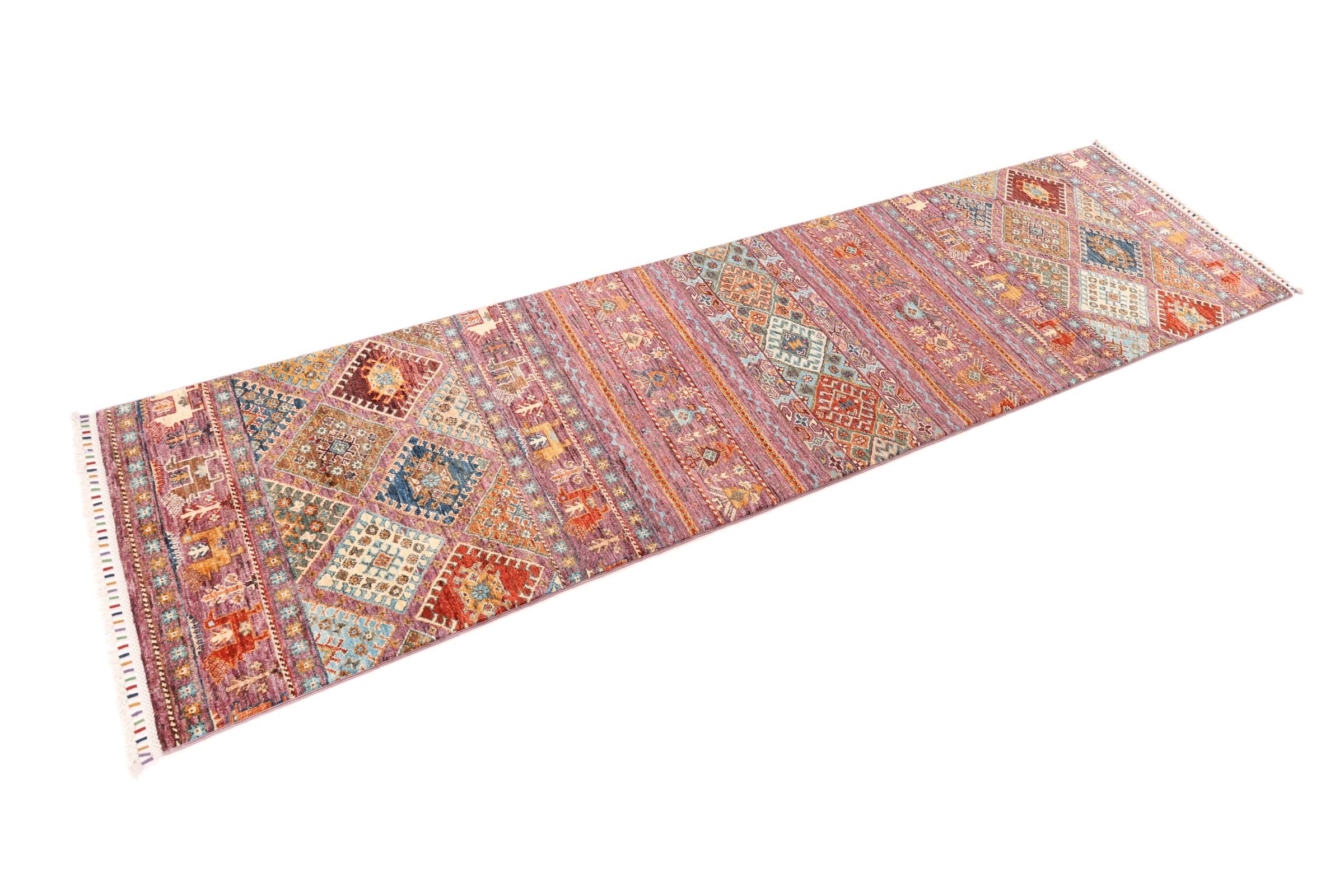 Nº do Tapete: 213044001385609 Tamanho: 294x78 cm Espessura: aproximadamente 5 mm Nós: 128 000 - 160 000 / m² Processamento: Atado à mão Veludo: Lã tecida à mão Urdidura: Algodão Origem: Afeganistão Idade: Novo Peso: aproximadamente 8 kg Em armazém: Único