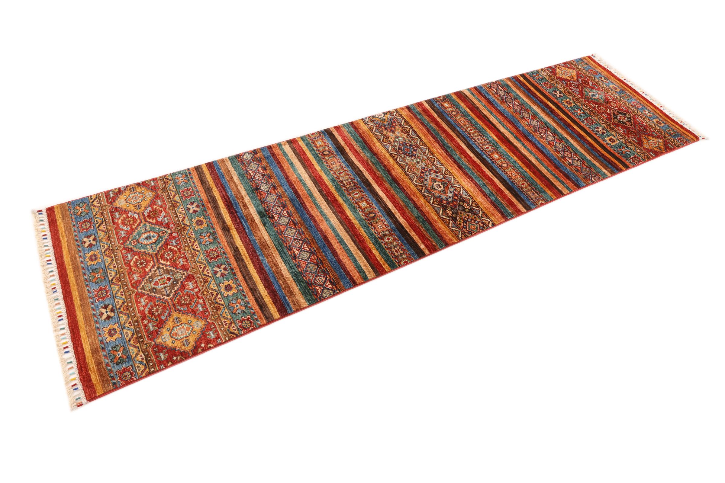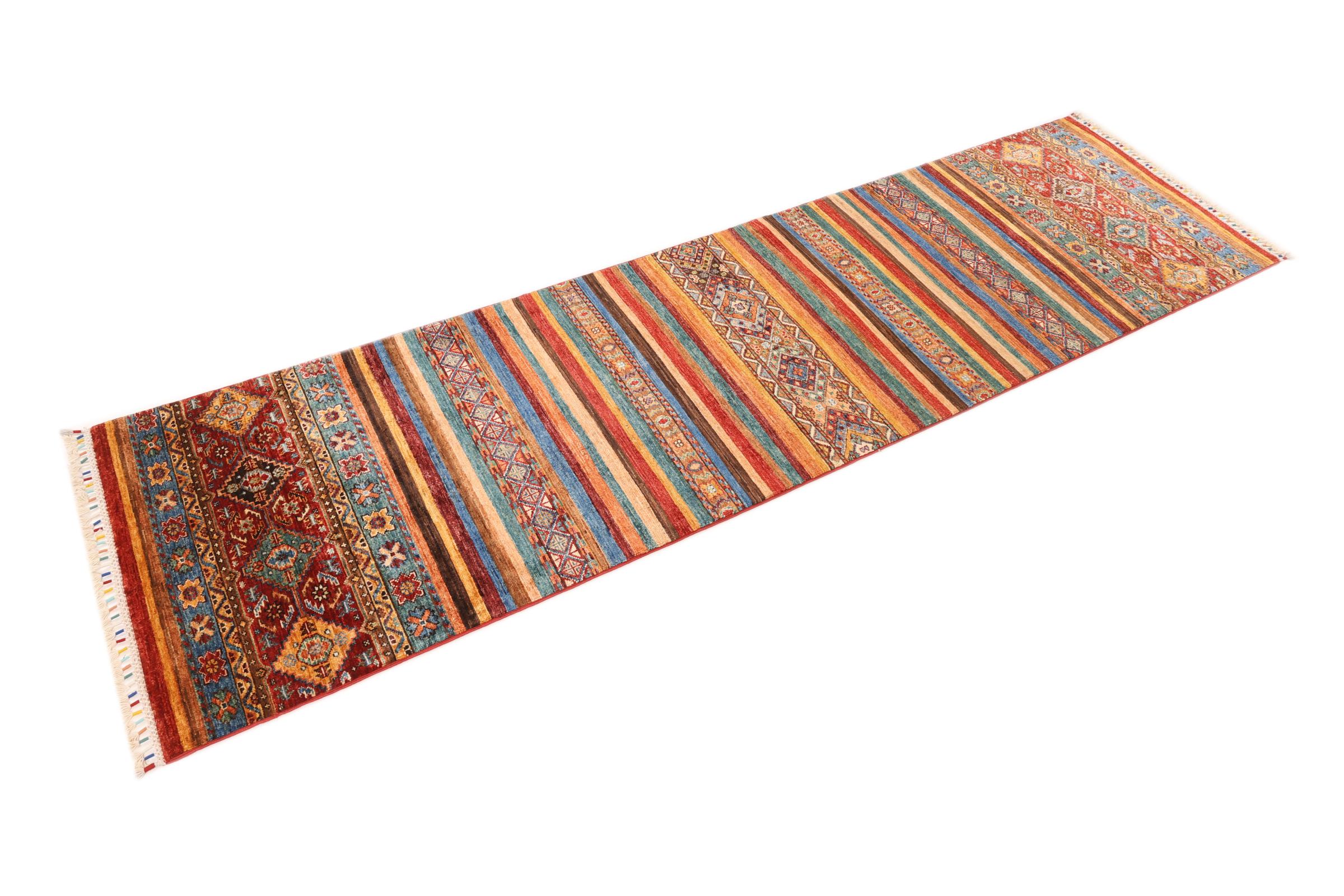 Nº do Tapete: 213054002126181 Tamanho: 304x83 cm Espessura: aproximadamente 5 mm Nós: 128 000 - 160 000 / m² Processamento: Atado à mão Veludo: Lã tecida à mão Urdidura: Algodão Origem: Afeganistão Idade: Novo Peso: aproximadamente 9 kg Em armazém: Único
