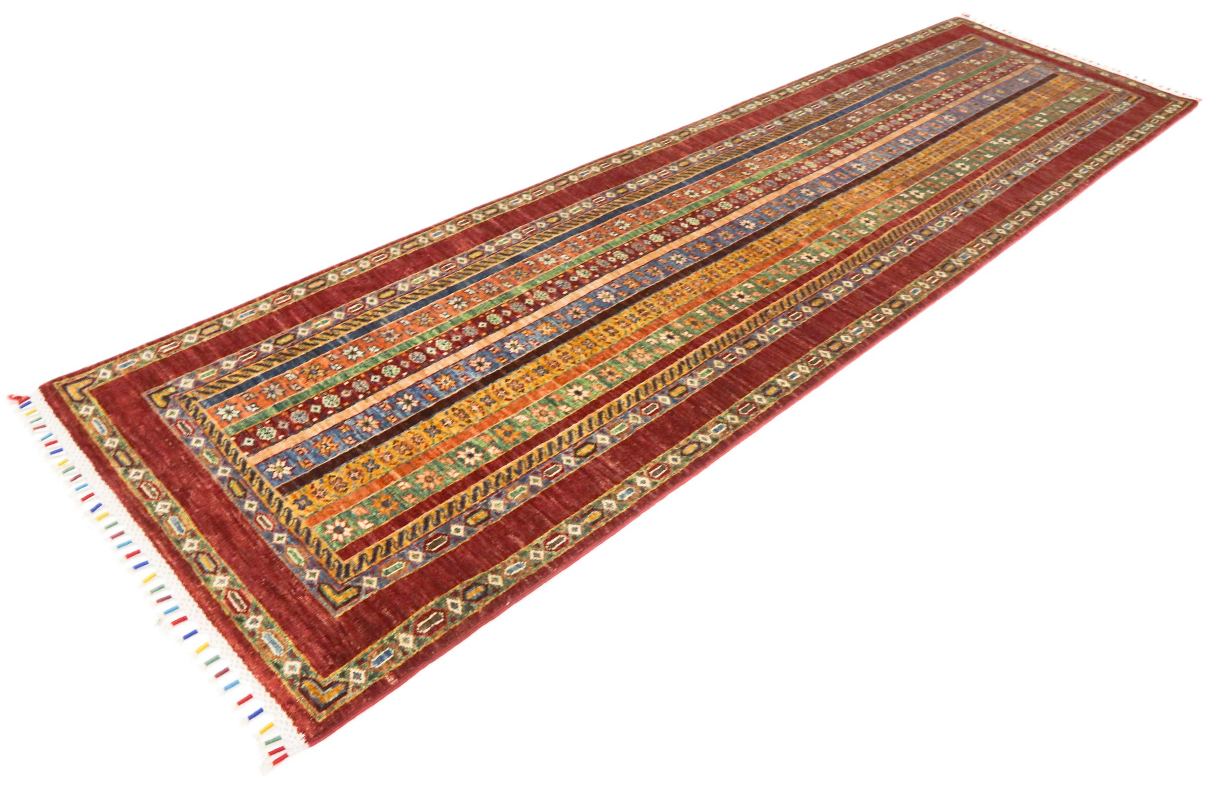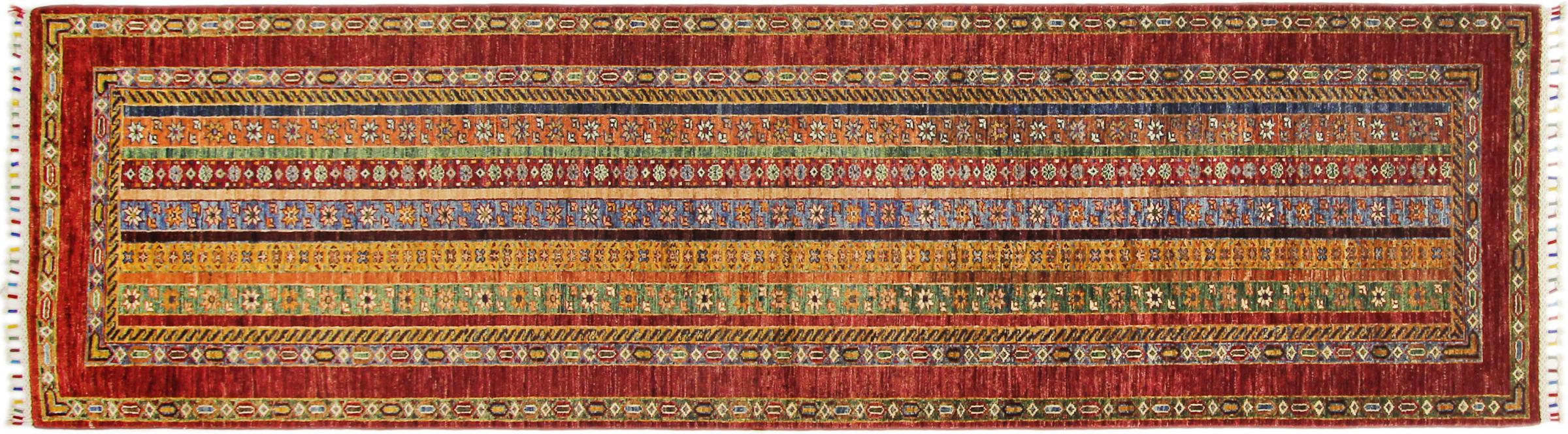Nº do Tapete: 173227001403575 Tamanho: 310x86 cm Espessura: aproximadamente 5 mm Nós: 128 000 - 160 000 / m² Processamento: Atado à mão Veludo: Lã tecida à mão Urdidura: Algodão Origem: Afeganistão Idade: Novo Peso: aproximadamente 9 kg Em armazém: Único