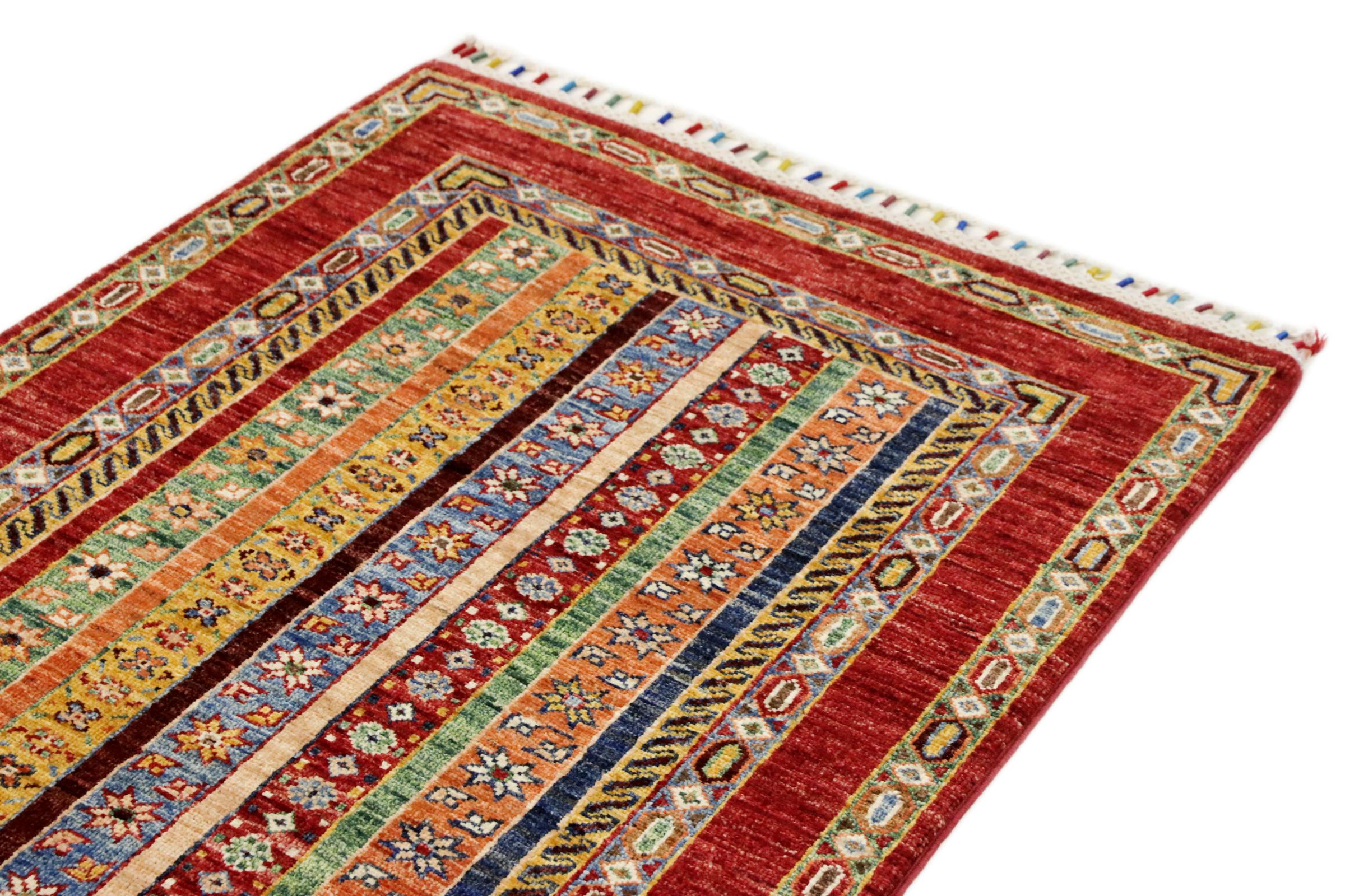 Este tapete Arijana Shaal foi atado à mão no Paquistão com a melhor perícia artesanal. Promete uma qualidade muito elevada e oferece assim um prazer duradouro. O padrão em listras é variado e excitante. Foi inspirado pelo conhecido desenho de Moharamati. Se os tapetes monocromáticos forem demasiado aborrecidos para si, ficará certamente encantado com esta Arijana Shaal.
