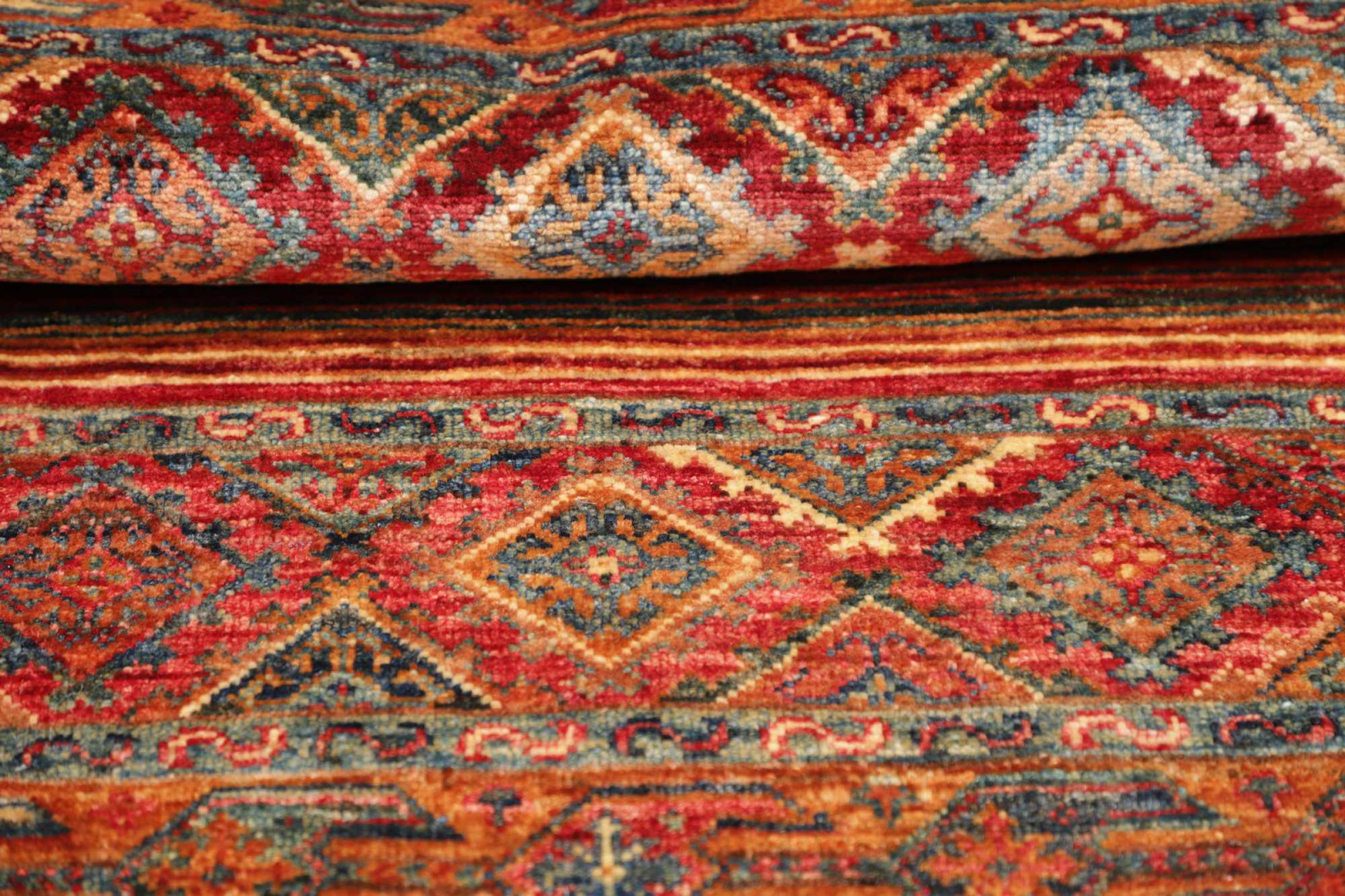 Este tapete Arijana Shaal foi atado à mão no Paquistão com a melhor perícia artesanal. Promete uma qualidade muito elevada e oferece assim um prazer duradouro. O padrão em listras é variado e excitante. Foi inspirado pelo conhecido desenho de Moharamati. Se os tapetes monocromáticos forem demasiado aborrecidos para si, ficará certamente encantado com esta Arijana Shaal.