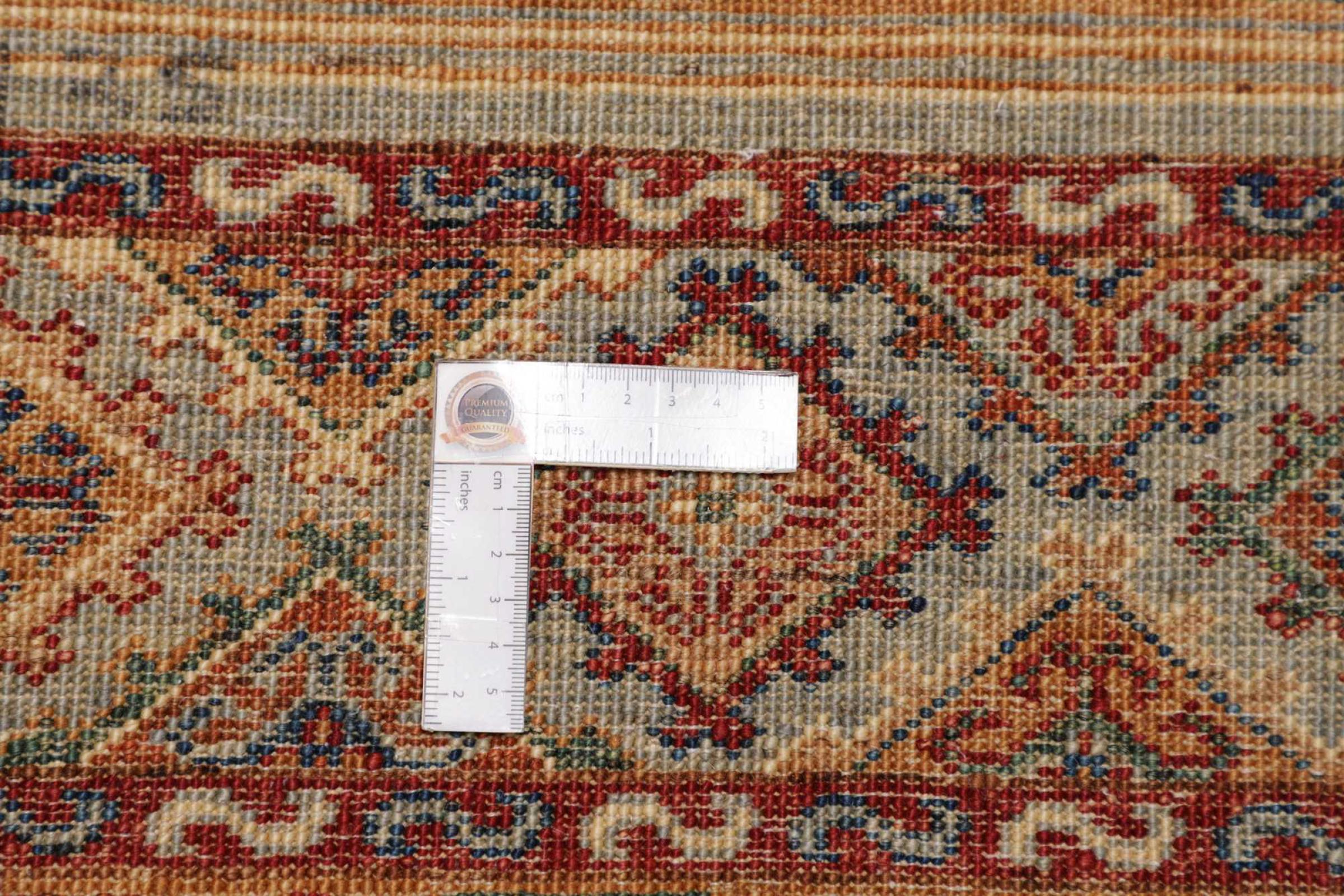 Este tapete é feito de lã de ovelha fiada à mão, da mais alta qualidade. Especialmente no Irão (antiga Pérsia), Afeganistão e Paquistão, a lã ainda é fiada à mão antes do início do nó do tapete. A lã tem provado ser um material natural e extremamente resistente ao longo dos séculos. Entre outras coisas, tem propriedades repelentes de impurezas e isolantes térmicos. Ao mesmo tempo, a lã é incomparavelmente macia e tem um brilho natural.