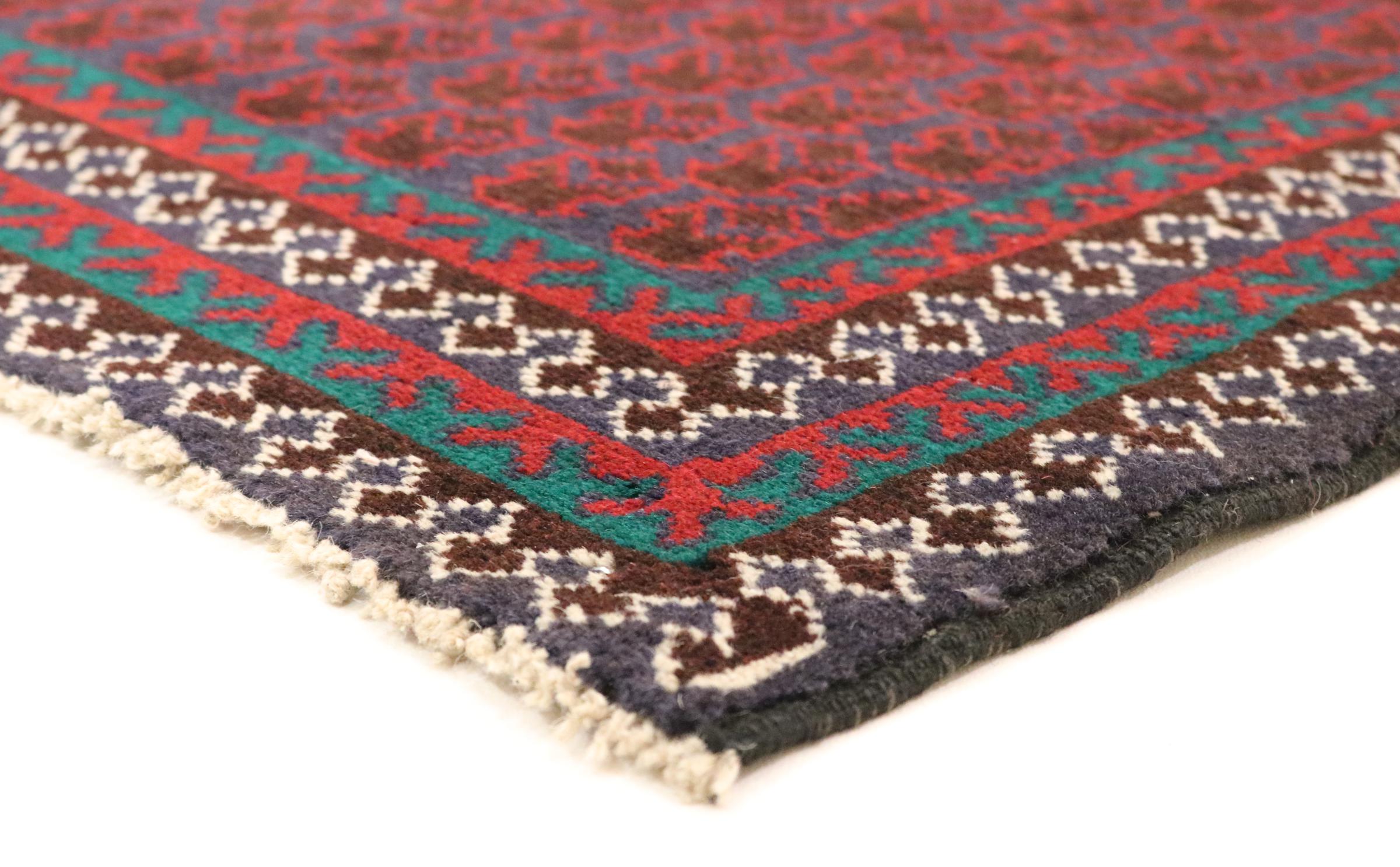 Este tapete Balúchi é um exemplo maravilhoso de arte nómada genuína. Fabricado na região fronteiriça entre o Irão e o Afeganistão, este tapete persa sabe como impressionar graças à sua trama densa e assimétrica. Os padrões vivos fazem dele um verdadeiro banquete para os olhos. Os tons escuros são típicos, espalhando um calor agradável. O seu belo fio natural transmite qualidade e torna-o extremamente durável. Típicos deste tapete são os padrões rectos que fazem dele um tapete nómada distinto.
