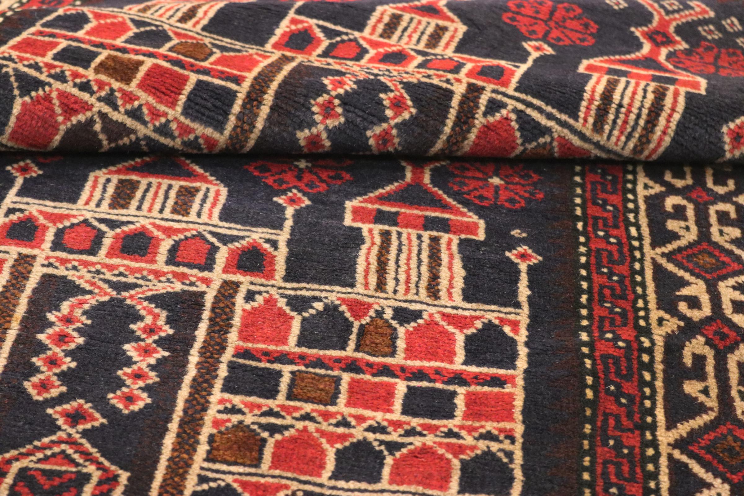 Este tapete Balúchi é um exemplo maravilhoso de arte nómada genuína. Fabricado na região fronteiriça entre o Irão e o Afeganistão, este tapete persa sabe como impressionar graças à sua trama densa e assimétrica. Os padrões vivos fazem dele um verdadeiro banquete para os olhos. Os tons escuros são típicos, espalhando um calor agradável. O seu belo fio natural transmite qualidade e torna-o extremamente durável. Típicos deste tapete são os padrões rectos que fazem dele um tapete nómada distinto.