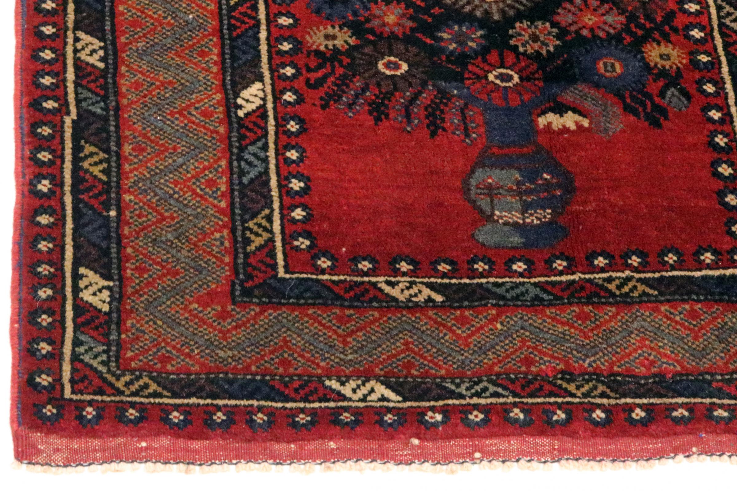 Este tapete pertence a tapetes de aldeia e nómadas do Irão, antiga Pérsia. Este tipo de tapete é atado à mão em cidades mais pequenas e aldeias da velha tradição. Mesmo os nómadas ainda atam tapetes persas ao ar livre. Os tapetes são atados sem padrão e completamente a partir da cabeça. Caracterizam-se por ornamentos clássicos, dispostos em padrões rectos e geométricos. Graças à sua origem cultural-tradicional, estes tapetes têm um carácter único que encarna a antiga Pérsia.