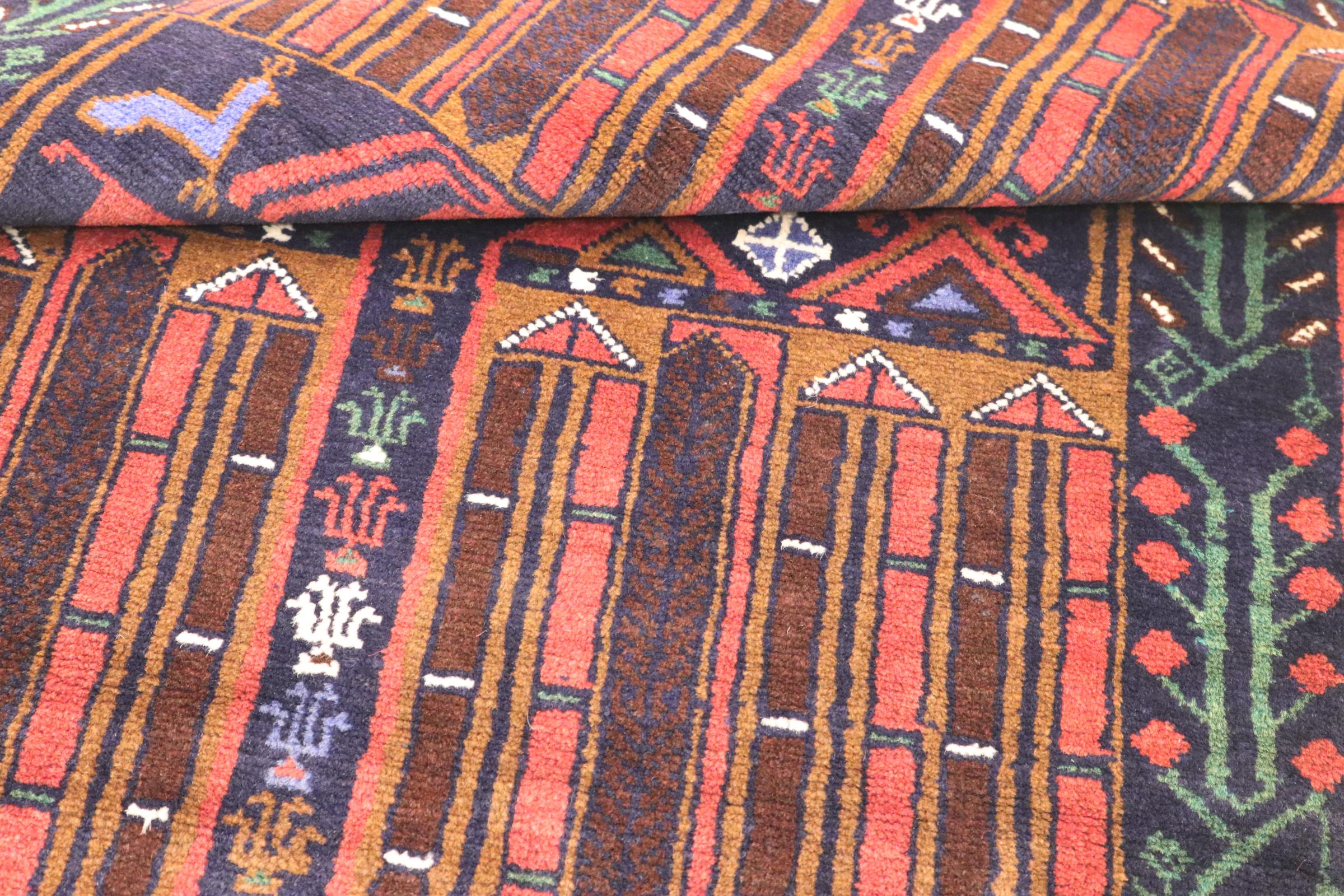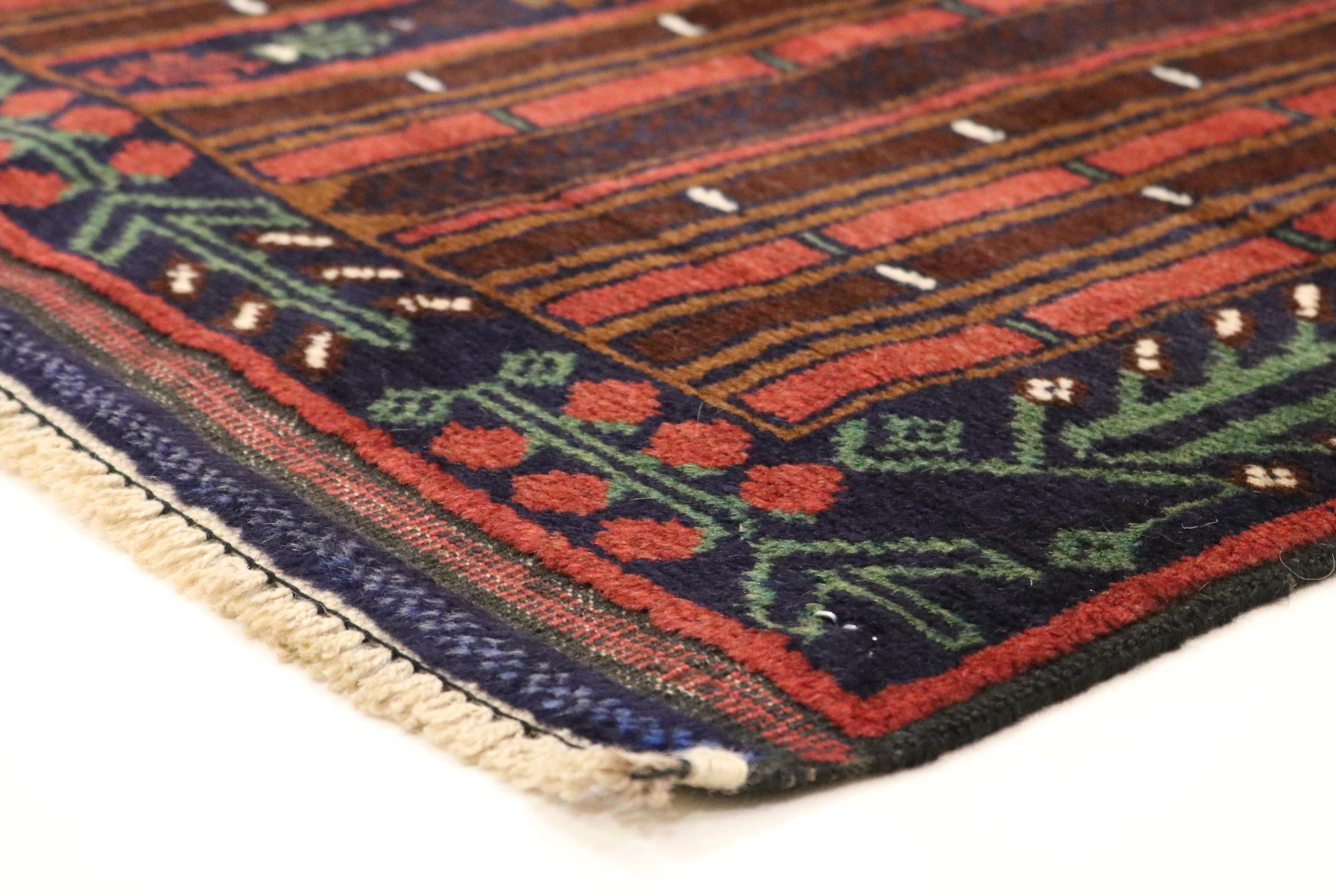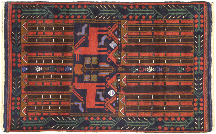 Este tapete Balúchi é um exemplo maravilhoso de arte nómada genuína. Fabricado na região fronteiriça entre o Irão e o Afeganistão, este tapete persa sabe como impressionar graças à sua trama densa e assimétrica. Os padrões vivos fazem dele um verdadeiro banquete para os olhos. Os tons escuros são típicos, espalhando um calor agradável. O seu belo fio natural transmite qualidade e torna-o extremamente durável. Típicos deste tapete são os padrões rectos que fazem dele um tapete nómada distinto.