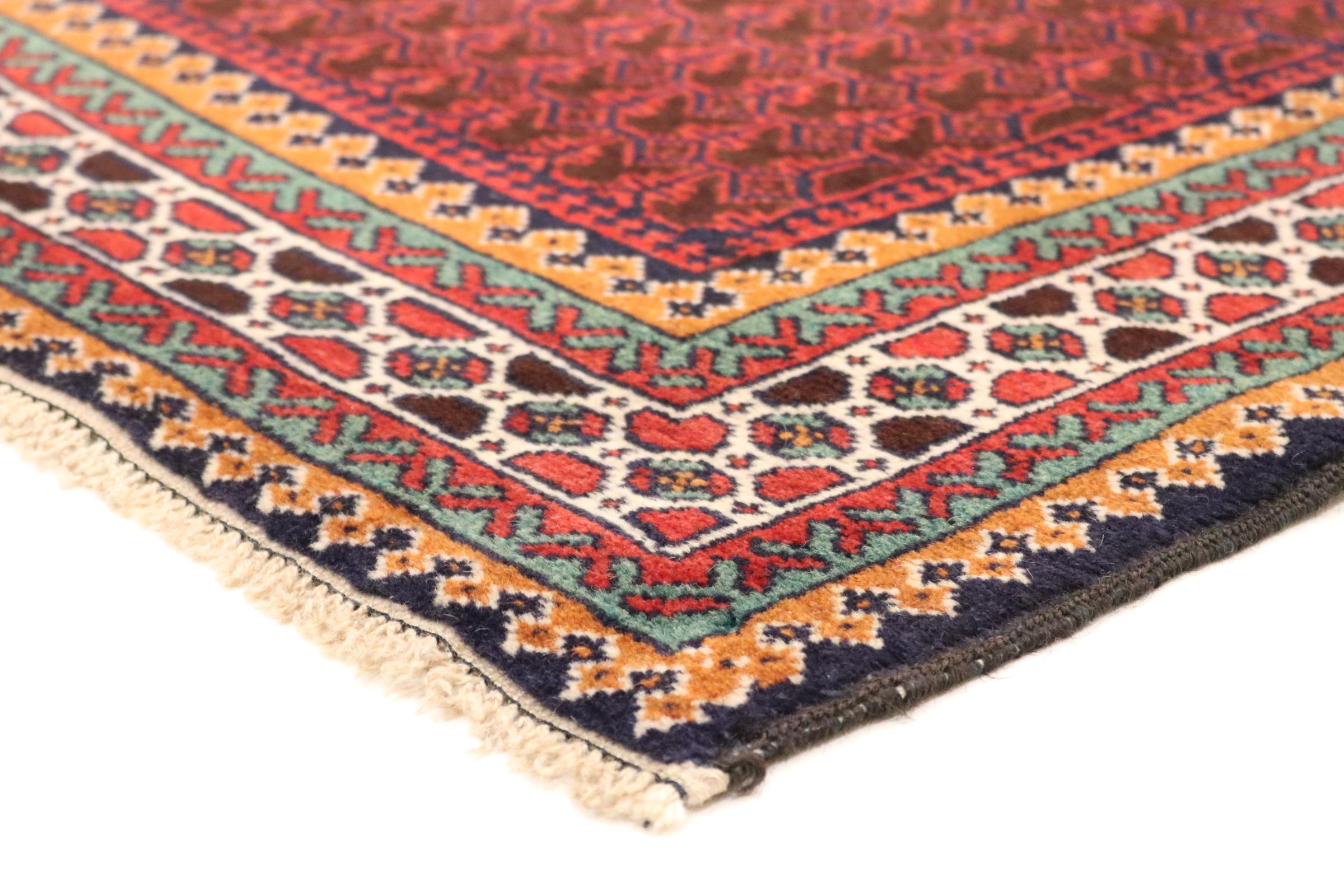 Este tapete Balúchi é um exemplo maravilhoso de arte nómada genuína. Fabricado na região fronteiriça entre o Irão e o Afeganistão, este tapete persa sabe como impressionar graças à sua trama densa e assimétrica. Os padrões vivos fazem dele um verdadeiro banquete para os olhos. Os tons escuros são típicos, espalhando um calor agradável. O seu belo fio natural transmite qualidade e torna-o extremamente durável. Típicos deste tapete são os padrões rectos que fazem dele um tapete nómada distinto.