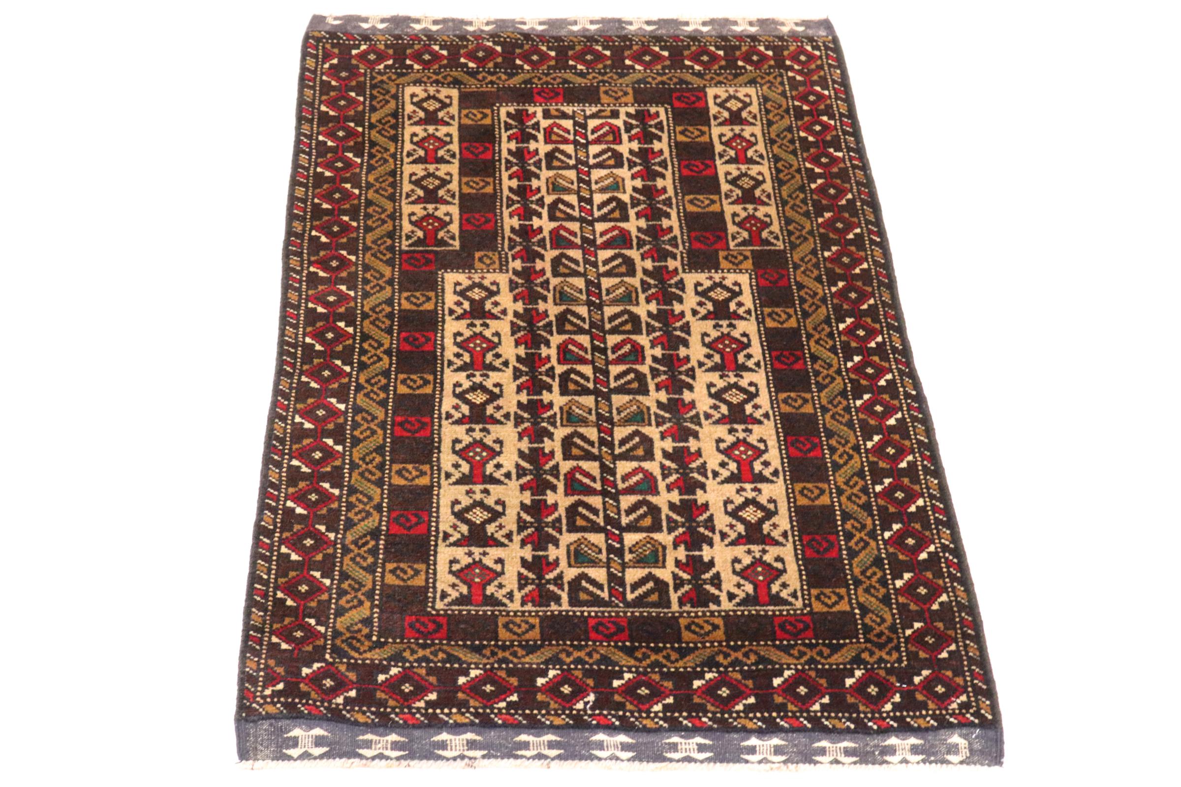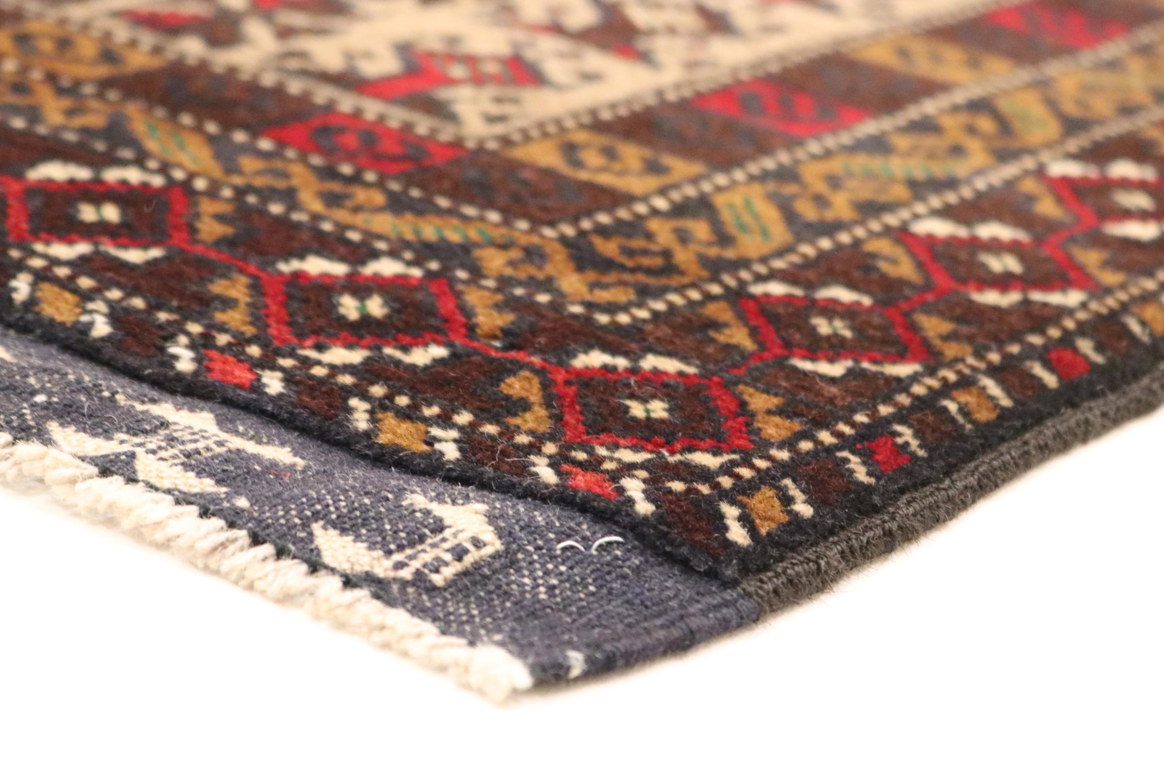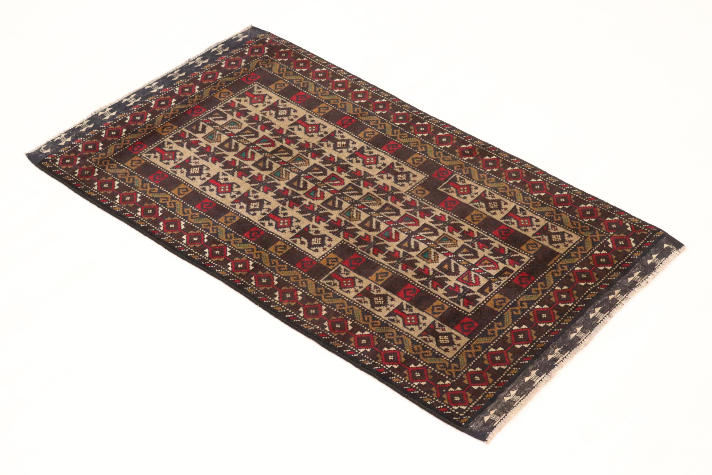 Este tapete Balúchi é um exemplo maravilhoso de arte nómada genuína. Fabricado na região fronteiriça entre o Irão e o Afeganistão, este tapete persa sabe como impressionar graças à sua trama densa e assimétrica. Os padrões vivos fazem dele um verdadeiro banquete para os olhos. Os tons escuros são típicos, espalhando um calor agradável. O seu belo fio natural transmite qualidade e torna-o extremamente durável. Típicos deste tapete são os padrões rectos que fazem dele um tapete nómada distinto.