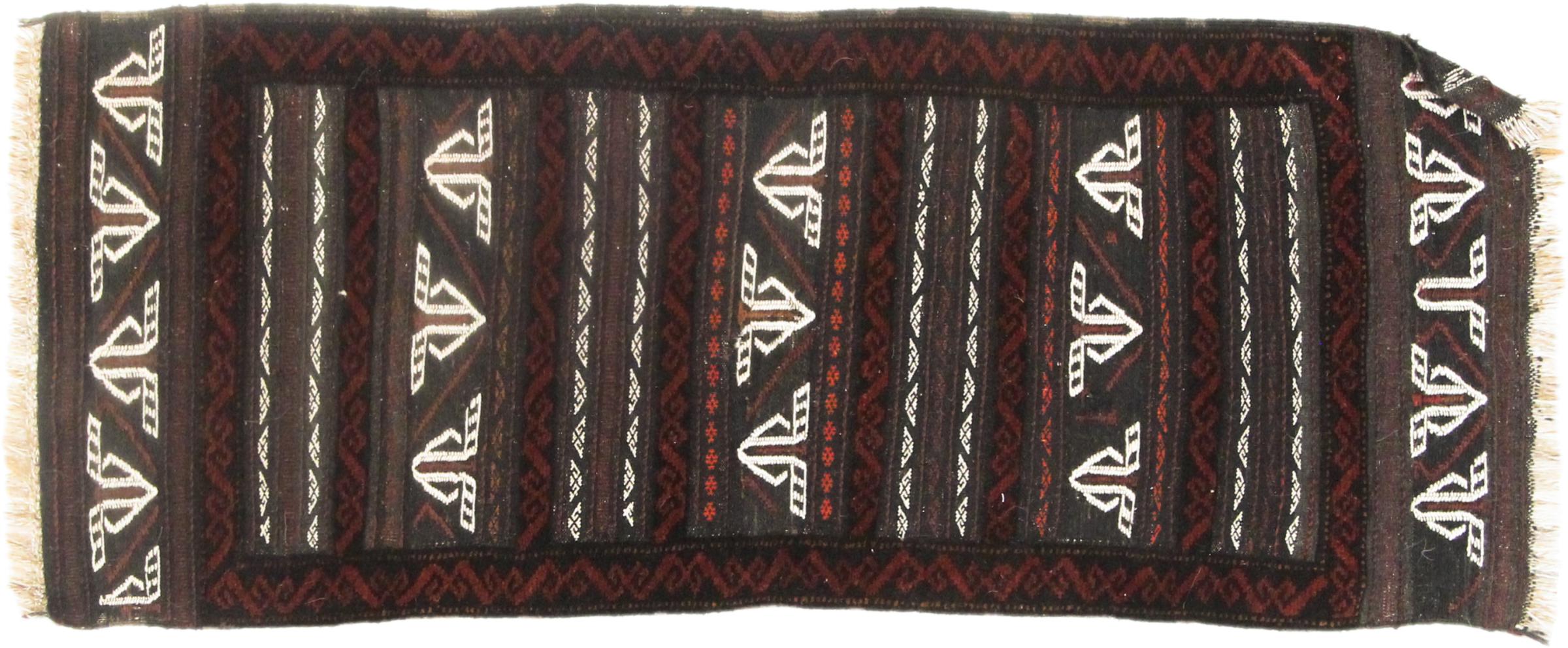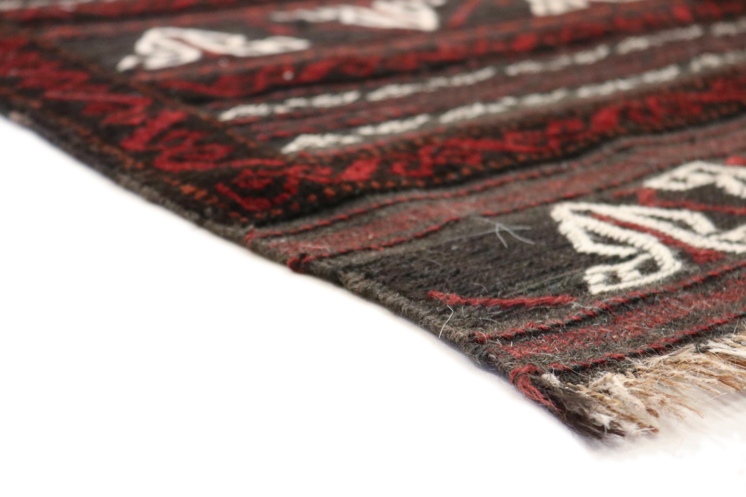 Este tapete Balúchi é um exemplo maravilhoso de arte nómada genuína. Fabricado na região fronteiriça entre o Irão e o Afeganistão, este tapete persa sabe como impressionar graças à sua trama densa e assimétrica. Os padrões vivos fazem dele um verdadeiro banquete para os olhos. Os tons escuros são típicos, espalhando um calor agradável. O seu belo fio natural transmite qualidade e torna-o extremamente durável. Típicos deste tapete são os padrões rectos que fazem dele um tapete nómada distinto.