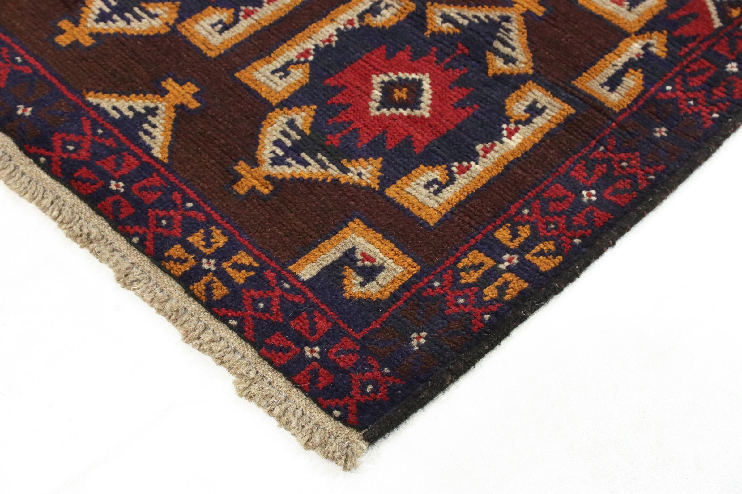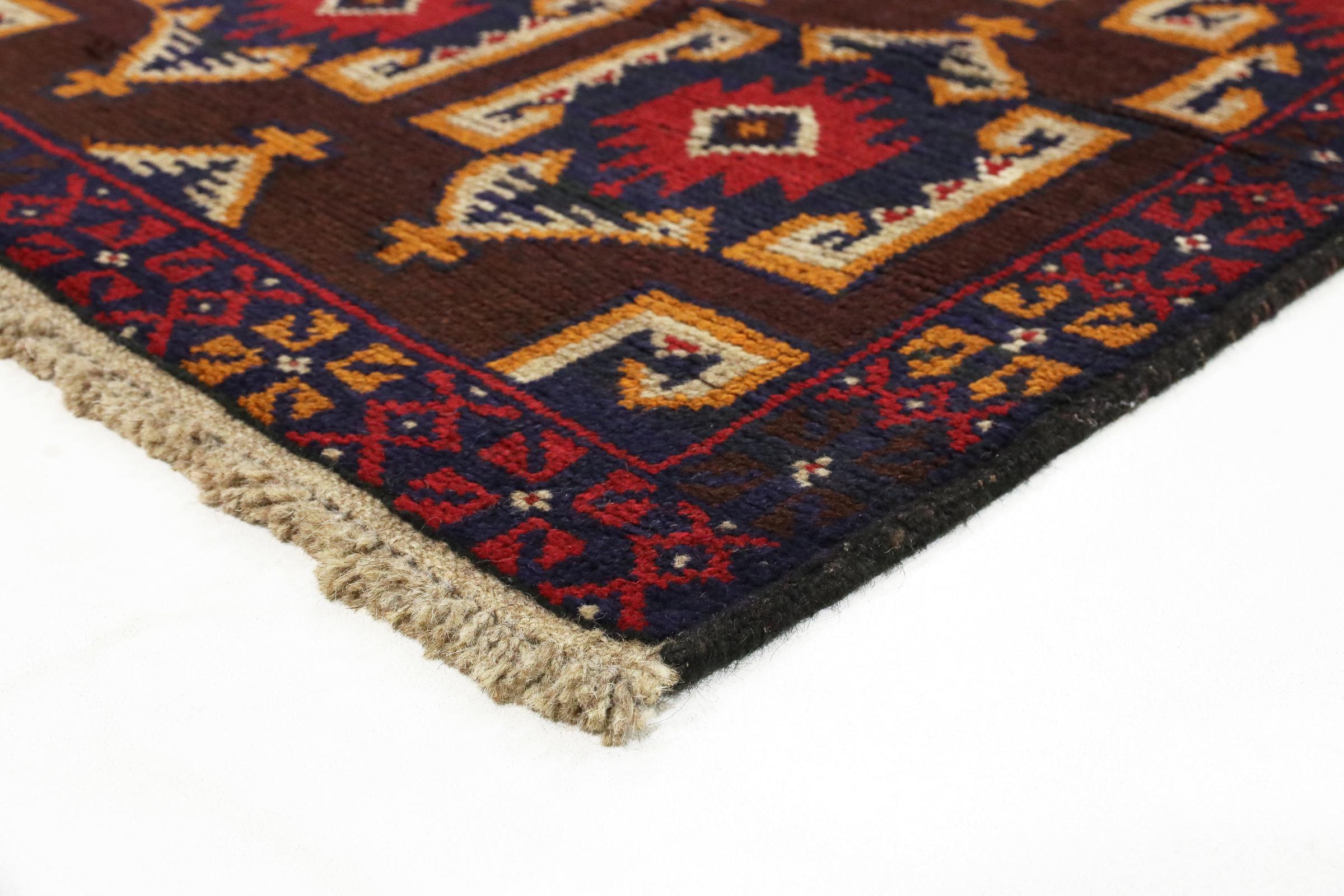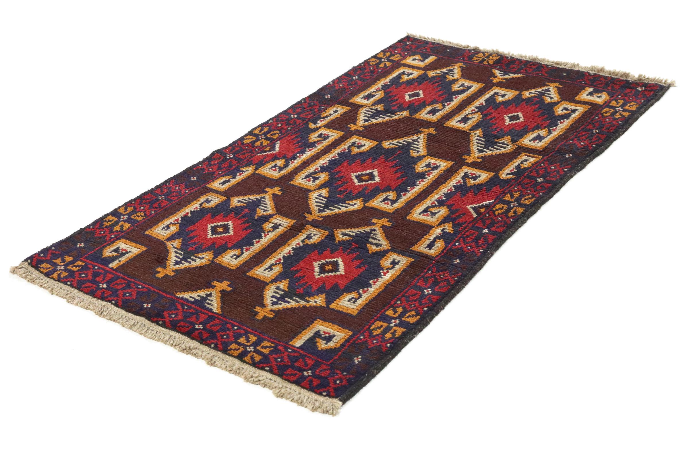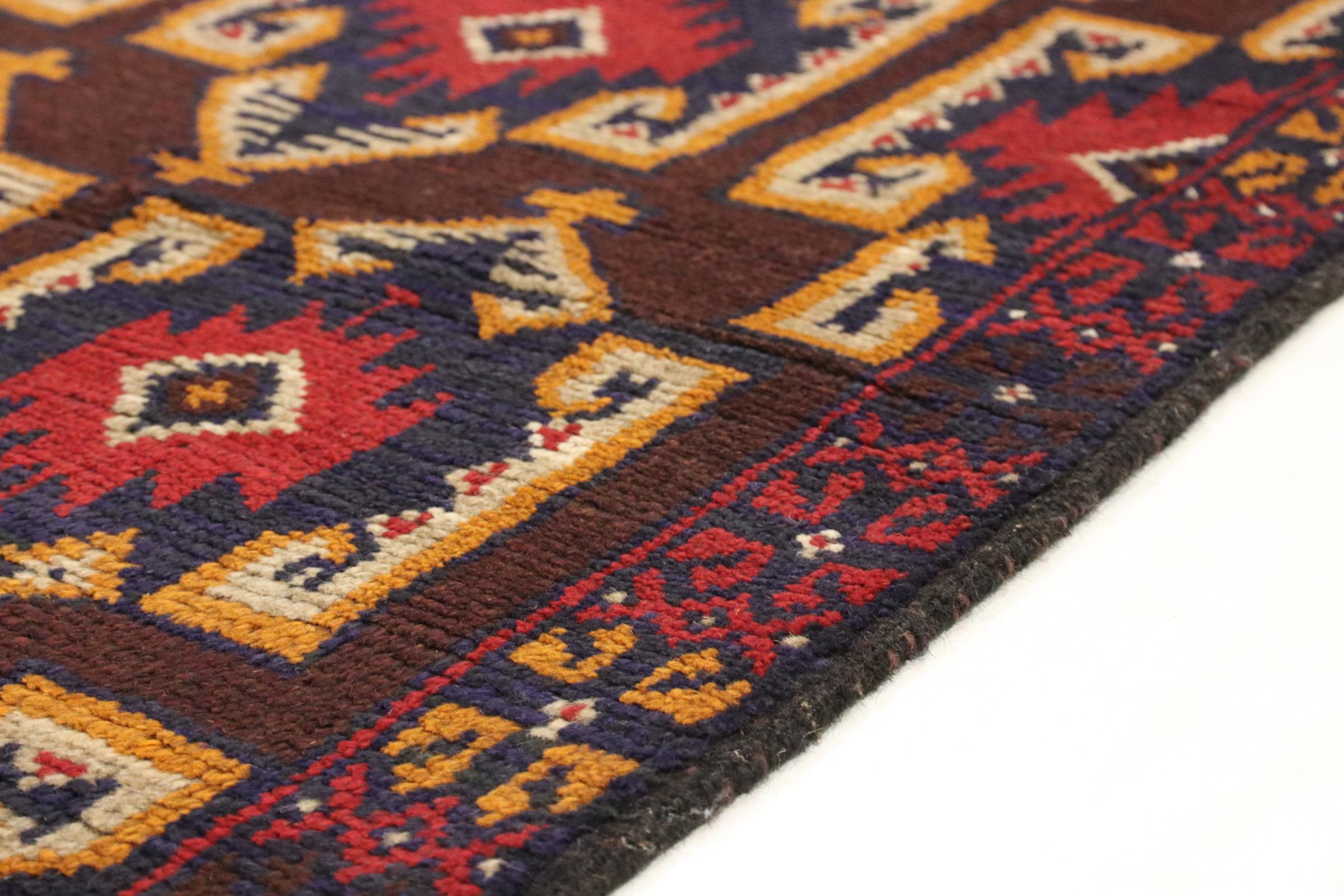 Este tapete Balúchi é um exemplo maravilhoso de arte nómada genuína. Fabricado na região fronteiriça entre o Irão e o Afeganistão, este tapete persa sabe como impressionar graças à sua trama densa e assimétrica. Os padrões vivos fazem dele um verdadeiro banquete para os olhos. Os tons escuros são típicos, espalhando um calor agradável. O seu belo fio natural transmite qualidade e torna-o extremamente durável. Típicos deste tapete são os padrões rectos que fazem dele um tapete nómada distinto.
