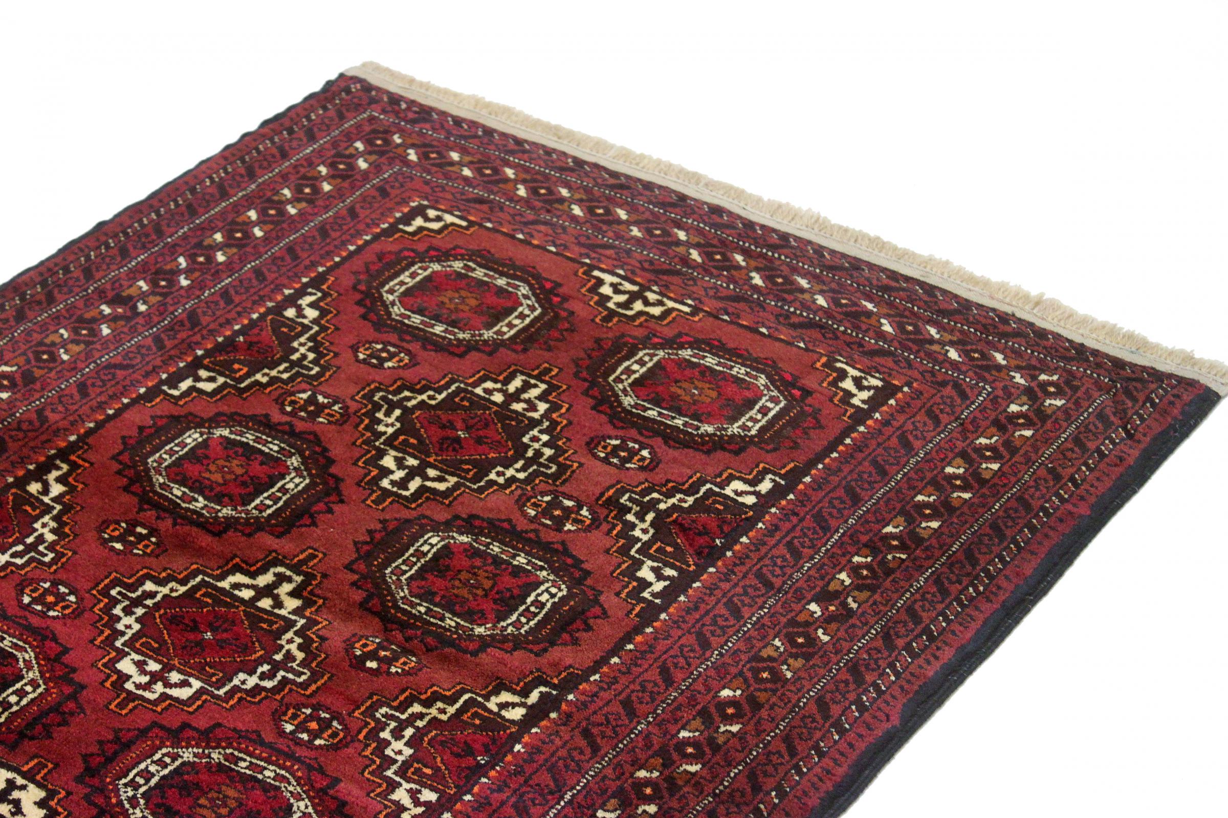 Este tapete Balúchi é um exemplo maravilhoso de arte nómada genuína. Fabricado na região fronteiriça entre o Irão e o Afeganistão, este tapete persa sabe como impressionar graças à sua trama densa e assimétrica. Os padrões vivos fazem dele um verdadeiro banquete para os olhos. Os tons escuros são típicos, espalhando um calor agradável. O seu belo fio natural transmite qualidade e torna-o extremamente durável. Típicos deste tapete são os padrões rectos que fazem dele um tapete nómada distinto.