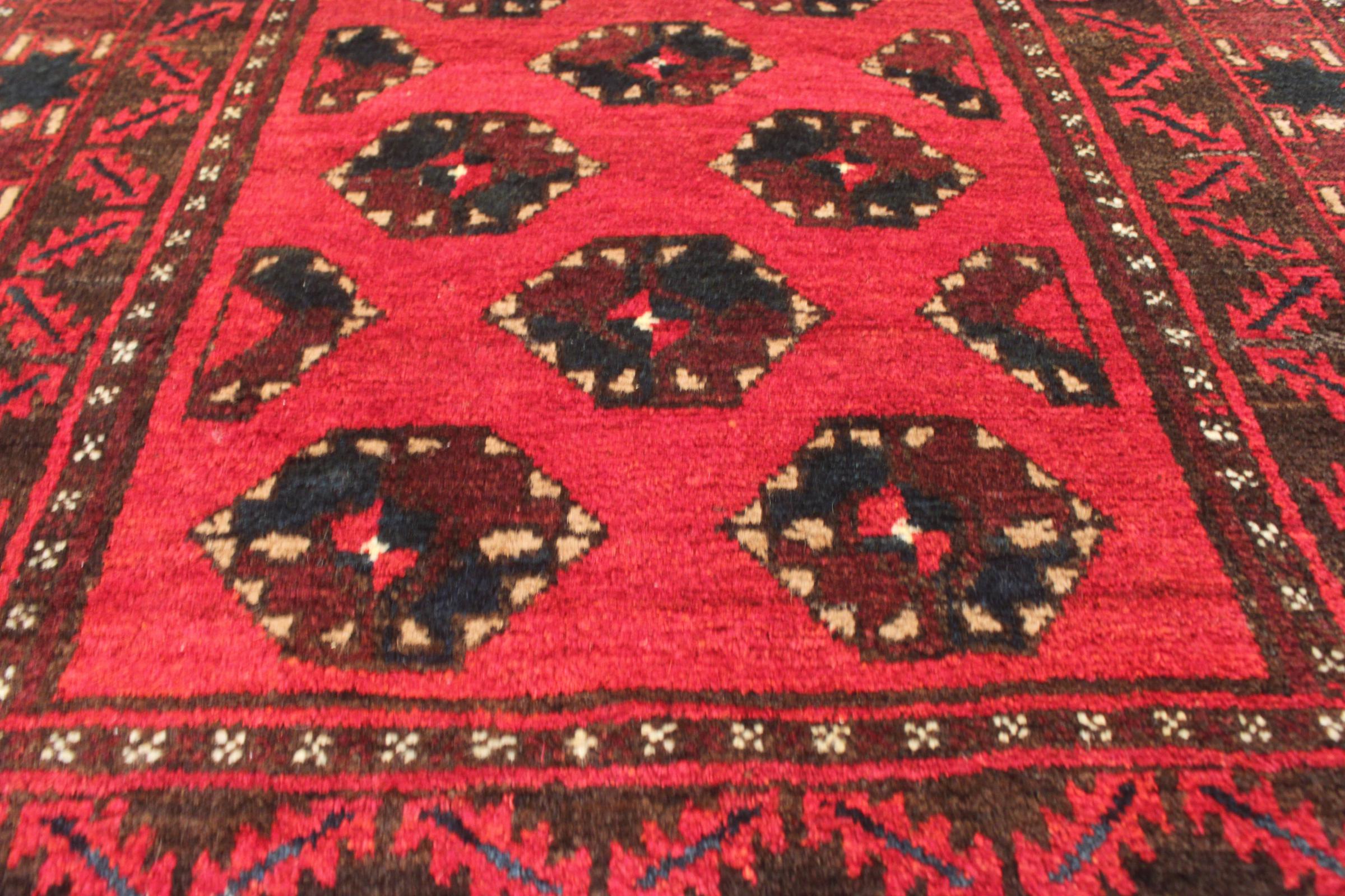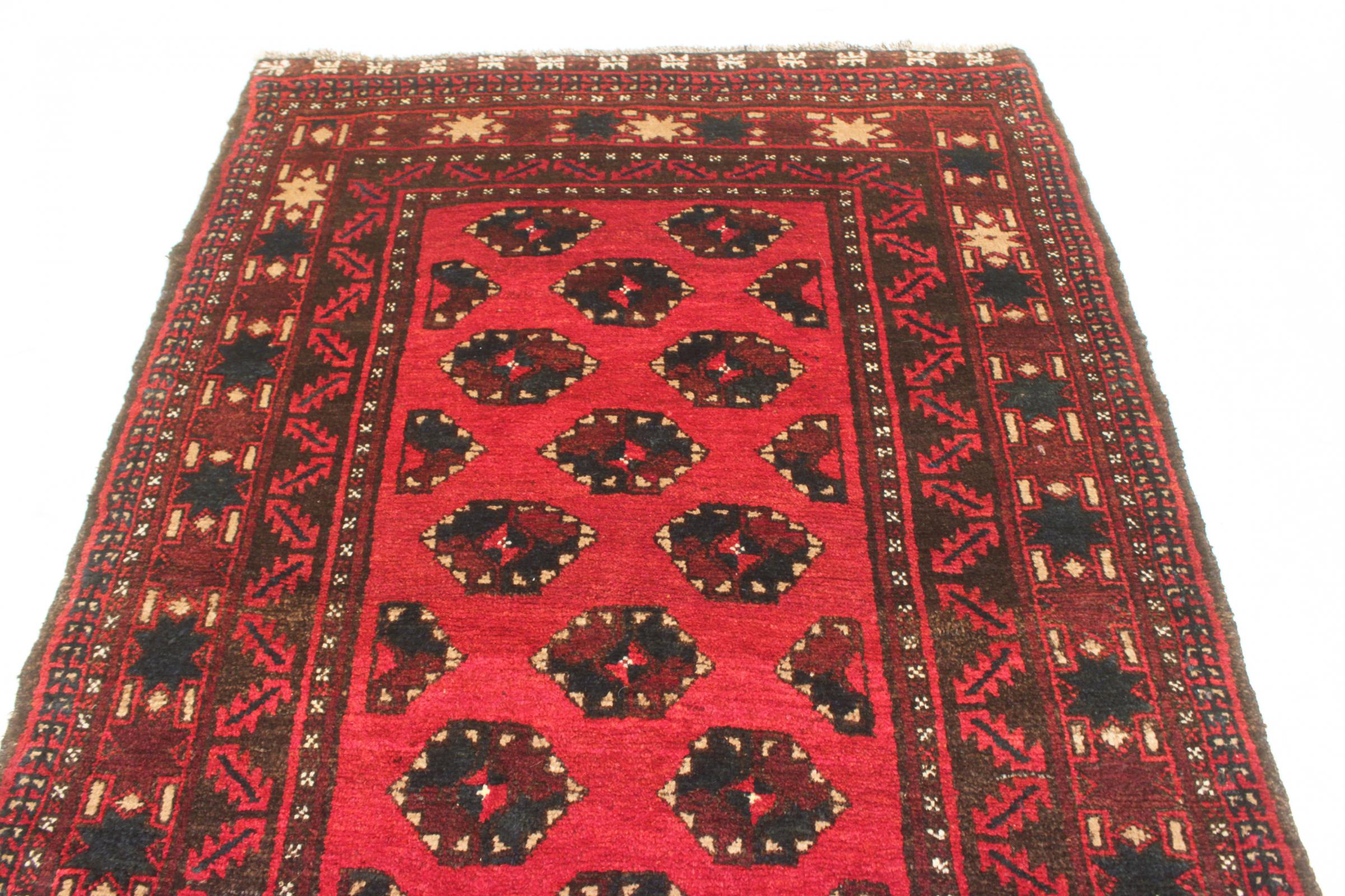 Este tapete Balúchi é um exemplo maravilhoso de arte nómada genuína. Fabricado na região fronteiriça entre o Irão e o Afeganistão, este tapete persa sabe como impressionar graças à sua trama densa e assimétrica. Os padrões vivos fazem dele um verdadeiro banquete para os olhos. Os tons escuros são típicos, espalhando um calor agradável. O seu belo fio natural transmite qualidade e torna-o extremamente durável. Típicos deste tapete são os padrões rectos que fazem dele um tapete nómada distinto.