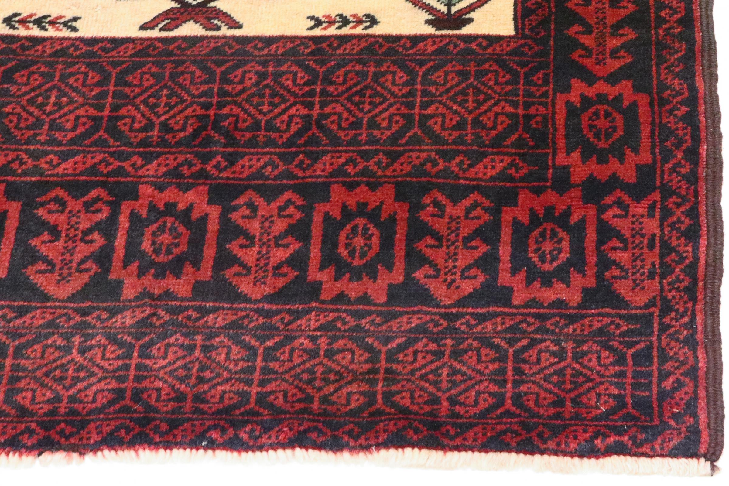 Este tapete Balúchi é um exemplo maravilhoso de arte nómada genuína. Fabricado na região fronteiriça entre o Irão e o Afeganistão, este tapete persa sabe como impressionar graças à sua trama densa e assimétrica. Os padrões vivos fazem dele um verdadeiro banquete para os olhos. Os tons escuros são típicos, espalhando um calor agradável. O seu belo fio natural transmite qualidade e torna-o extremamente durável. Típicos deste tapete são os padrões rectos que fazem dele um tapete nómada distinto.