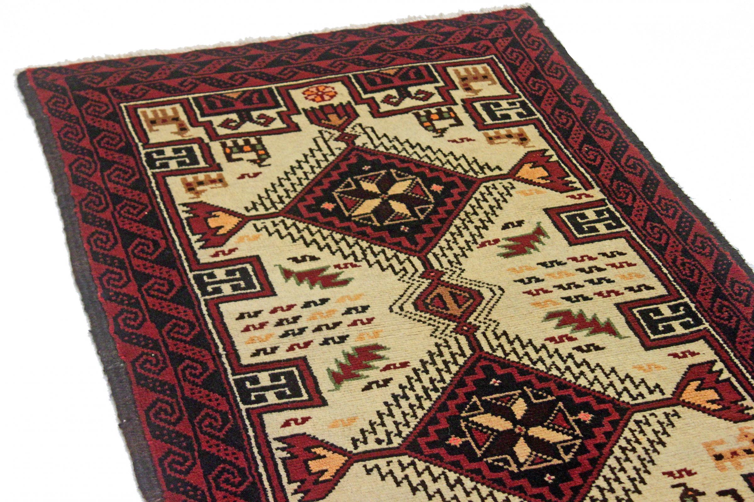 Este tapete Balúchi é um exemplo maravilhoso de arte nómada genuína. Fabricado na região fronteiriça entre o Irão e o Afeganistão, este tapete persa sabe como impressionar graças à sua trama densa e assimétrica. Os padrões vivos fazem dele um verdadeiro banquete para os olhos. Os tons escuros são típicos, espalhando um calor agradável. O seu belo fio natural transmite qualidade e torna-o extremamente durável. Típicos deste tapete são os padrões rectos que fazem dele um tapete nómada distinto.