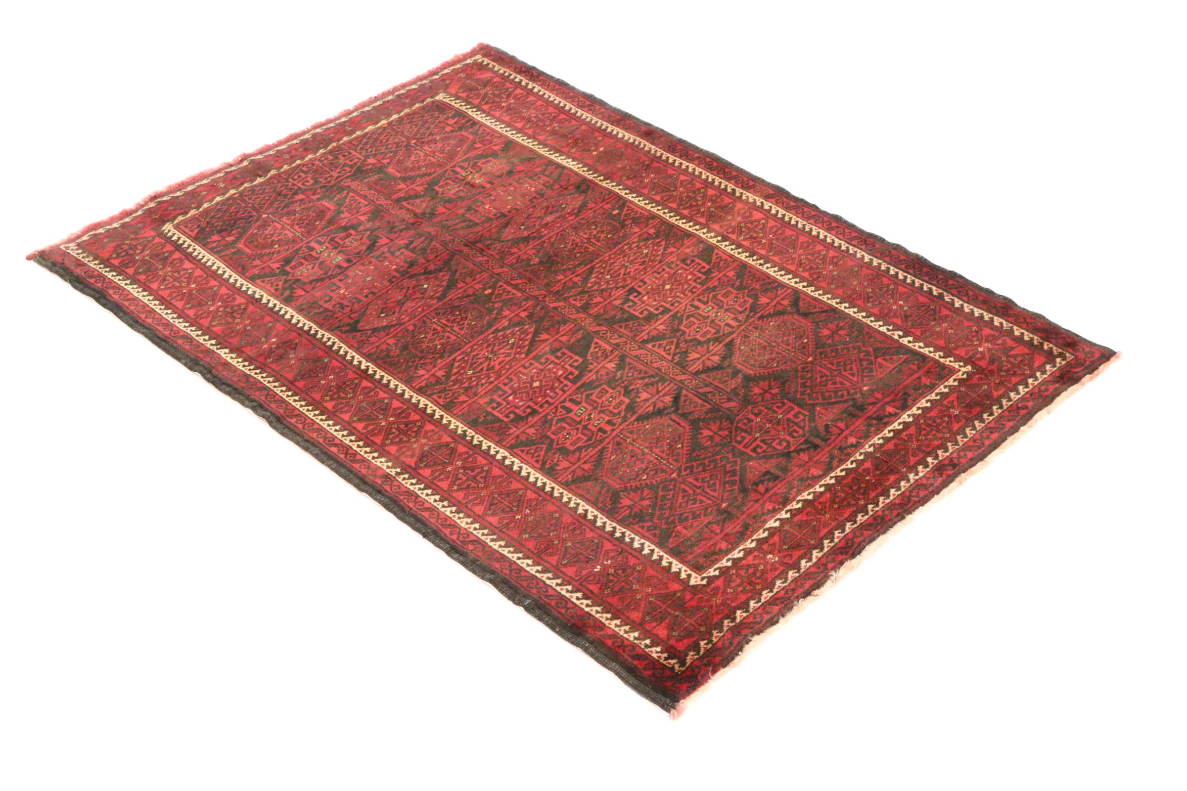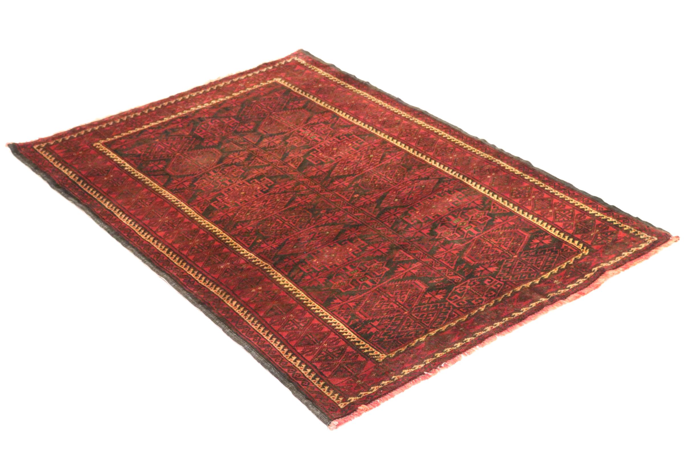 Este tapete Balúchi é um exemplo maravilhoso de arte nómada genuína. Fabricado na região fronteiriça entre o Irão e o Afeganistão, este tapete persa sabe como impressionar graças à sua trama densa e assimétrica. Os padrões vivos fazem dele um verdadeiro banquete para os olhos. Os tons escuros são típicos, espalhando um calor agradável. O seu belo fio natural transmite qualidade e torna-o extremamente durável. Típicos deste tapete são os padrões rectos que fazem dele um tapete nómada distinto.