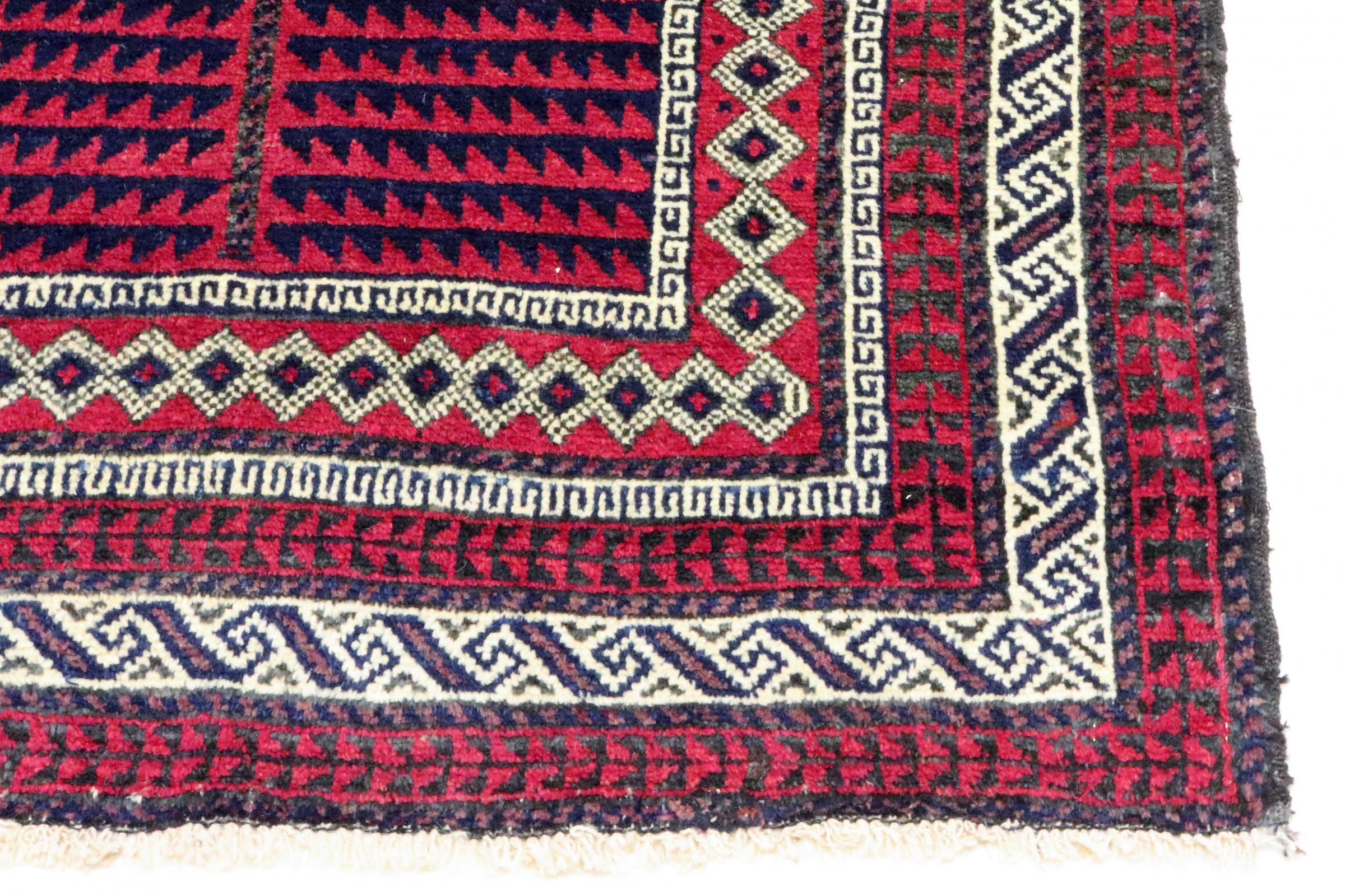 Este tapete Balúchi é um exemplo maravilhoso de arte nómada genuína. Fabricado na região fronteiriça entre o Irão e o Afeganistão, este tapete persa sabe como impressionar graças à sua trama densa e assimétrica. Os padrões vivos fazem dele um verdadeiro banquete para os olhos. Os tons escuros são típicos, espalhando um calor agradável. O seu belo fio natural transmite qualidade e torna-o extremamente durável. Típicos deste tapete são os padrões rectos que fazem dele um tapete nómada distinto.