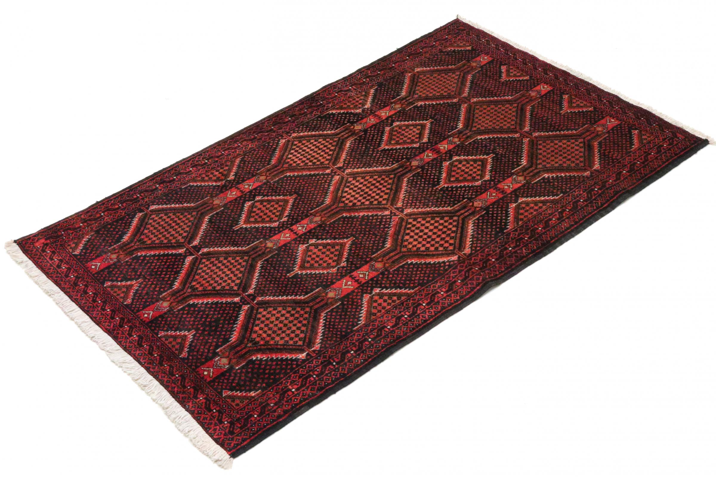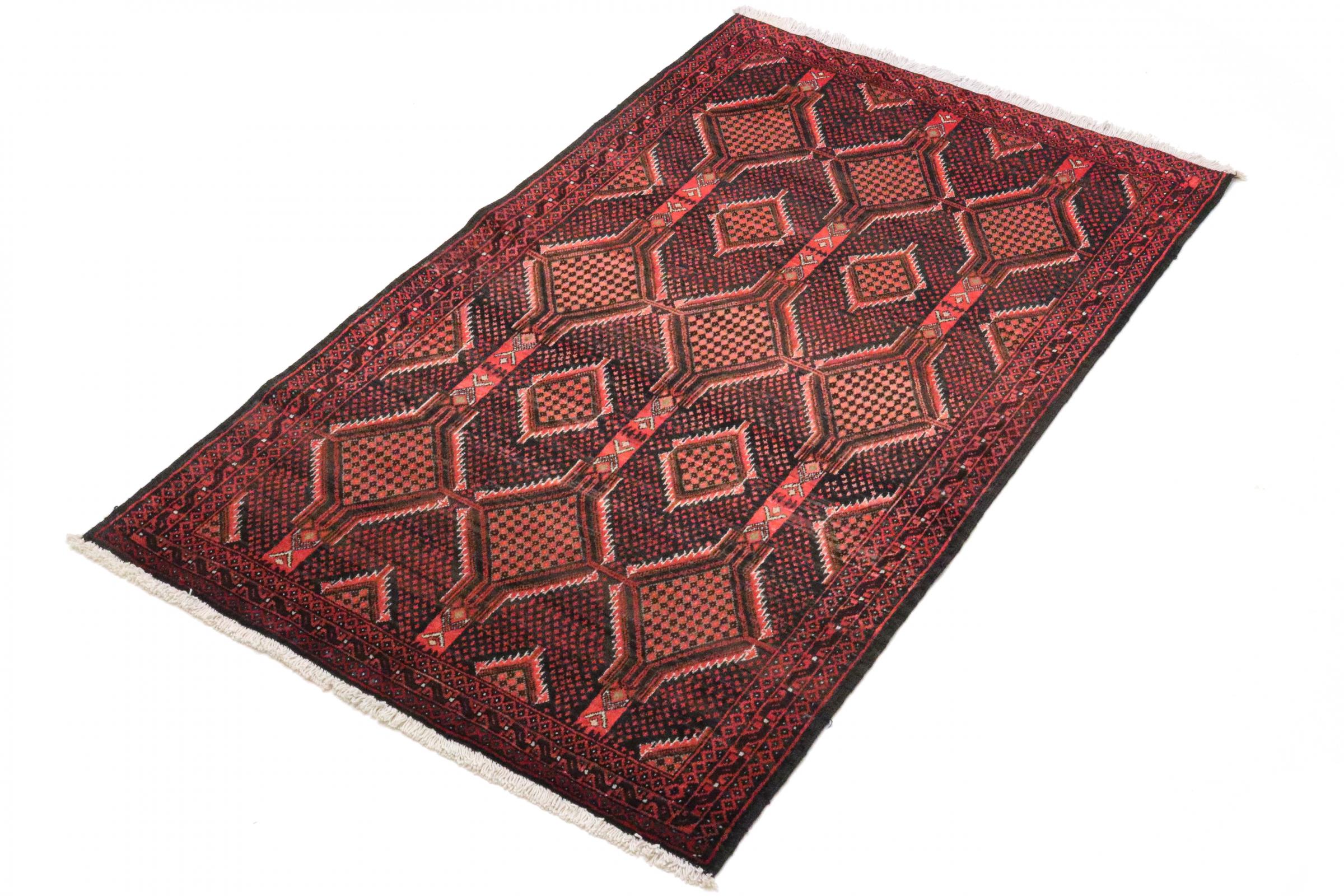 Este tapete Balúchi é um exemplo maravilhoso de arte nómada genuína. Fabricado na região fronteiriça entre o Irão e o Afeganistão, este tapete persa sabe como impressionar graças à sua trama densa e assimétrica. Os padrões vivos fazem dele um verdadeiro banquete para os olhos. Os tons escuros são típicos, espalhando um calor agradável. O seu belo fio natural transmite qualidade e torna-o extremamente durável. Típicos deste tapete são os padrões rectos que fazem dele um tapete nómada distinto.