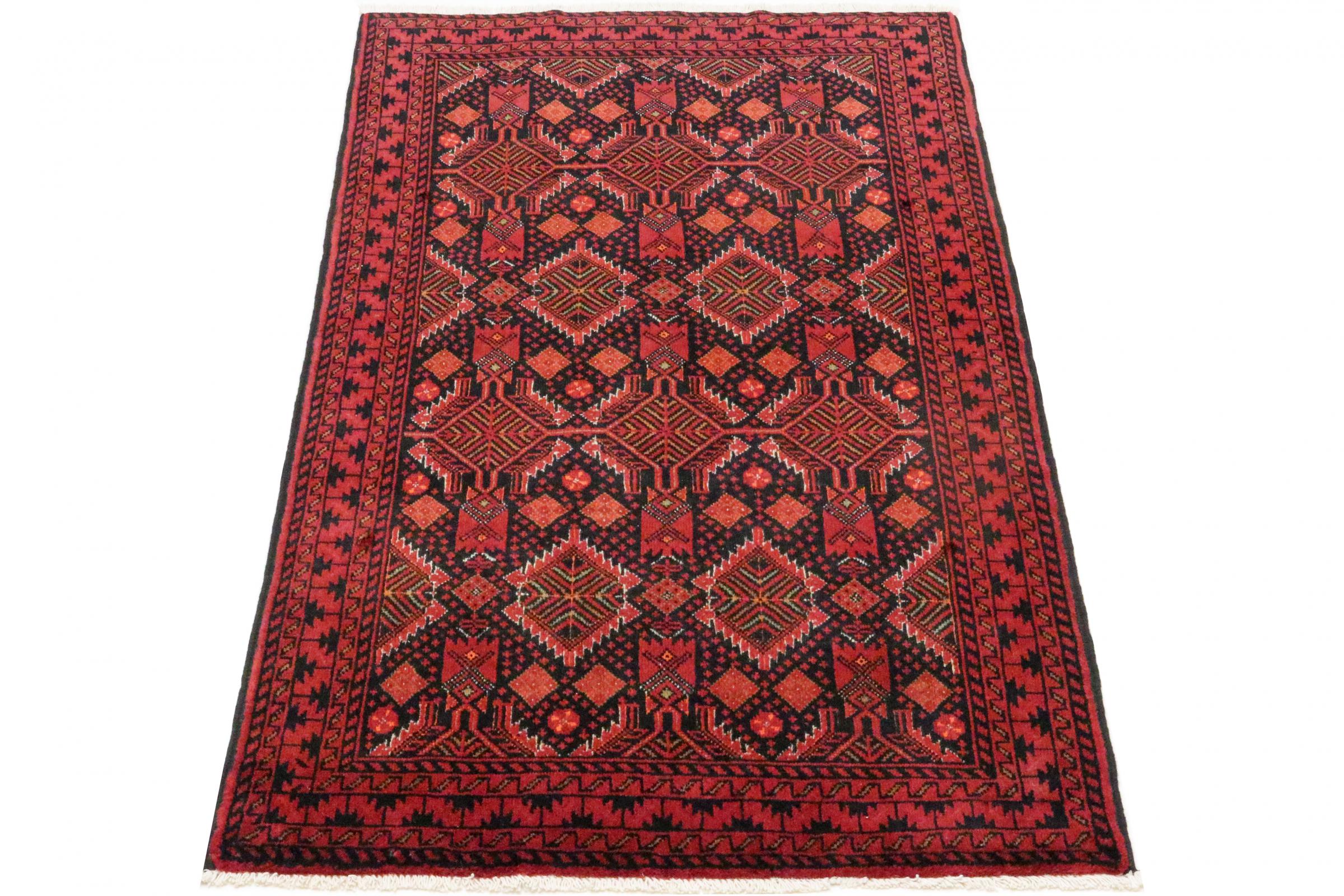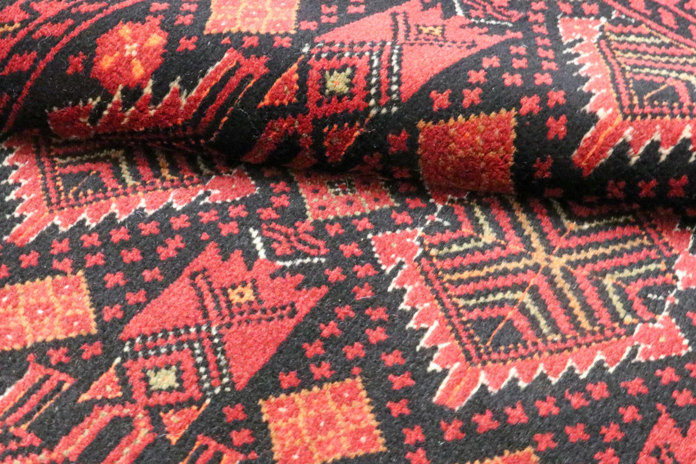 Este tapete Balúchi é um exemplo maravilhoso de arte nómada genuína. Fabricado na região fronteiriça entre o Irão e o Afeganistão, este tapete persa sabe como impressionar graças à sua trama densa e assimétrica. Os padrões vivos fazem dele um verdadeiro banquete para os olhos. Os tons escuros são típicos, espalhando um calor agradável. O seu belo fio natural transmite qualidade e torna-o extremamente durável. Típicos deste tapete são os padrões rectos que fazem dele um tapete nómada distinto.