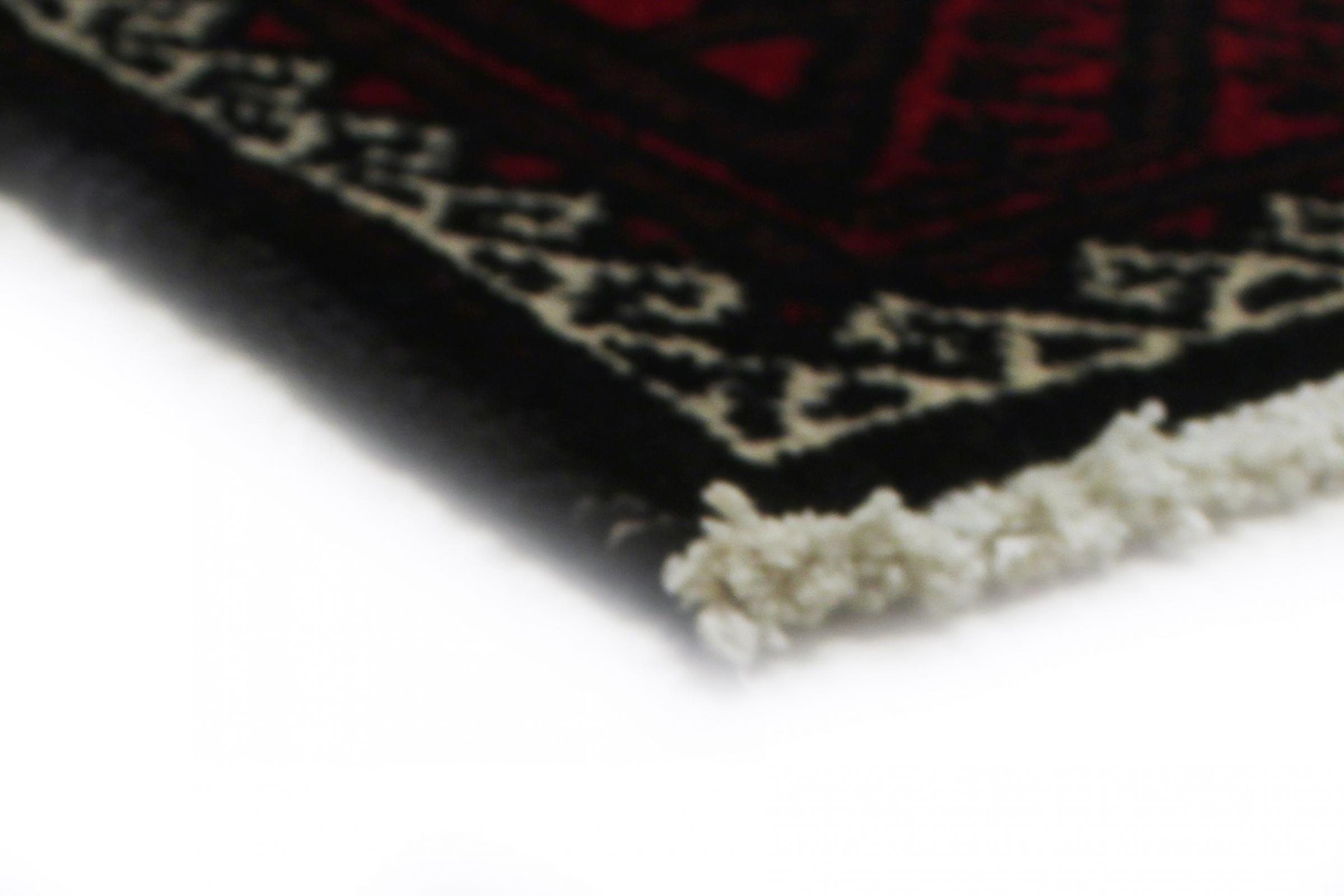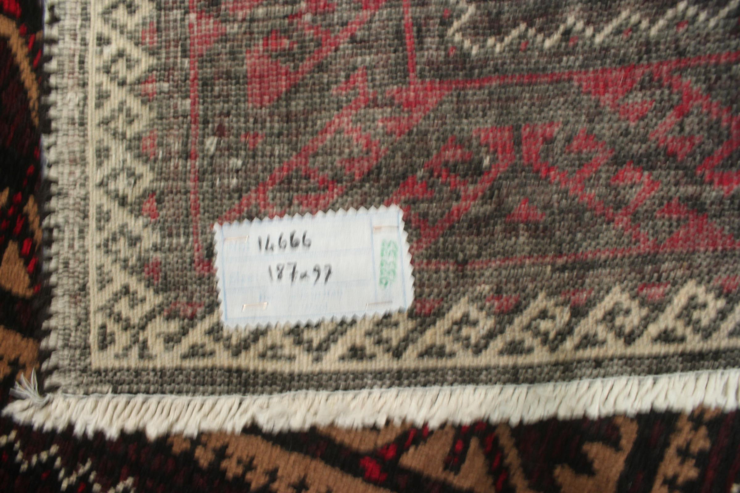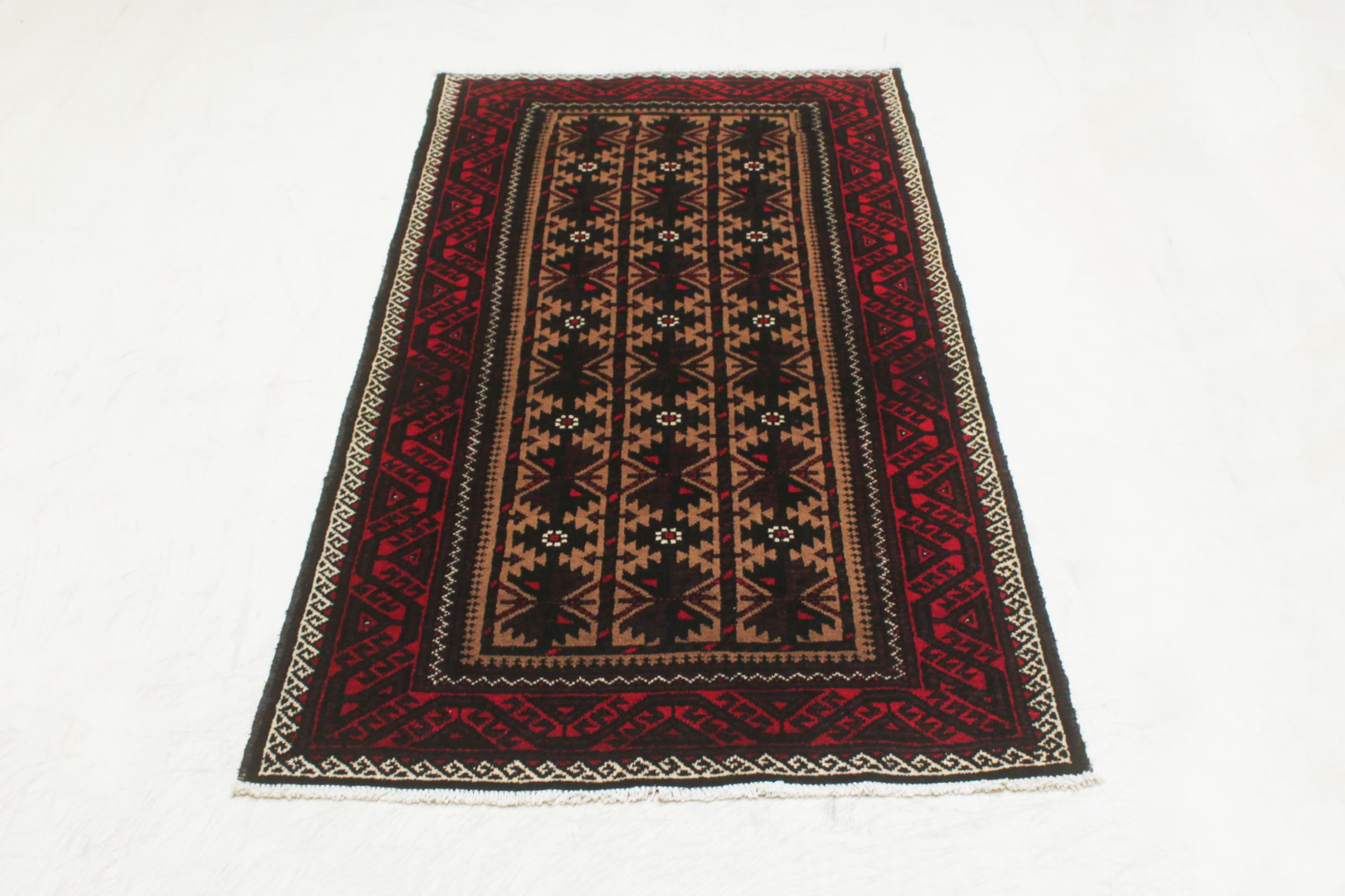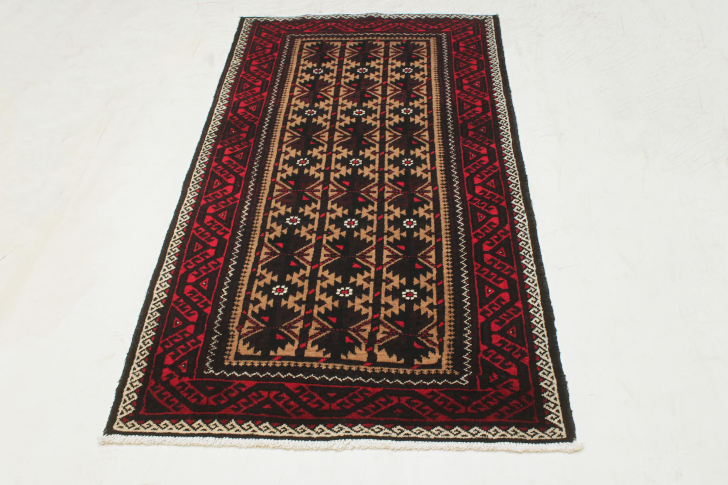 Este tapete Balúchi é um exemplo maravilhoso de arte nómada genuína. Fabricado na região fronteiriça entre o Irão e o Afeganistão, este tapete persa sabe como impressionar graças à sua trama densa e assimétrica. Os padrões vivos fazem dele um verdadeiro banquete para os olhos. Os tons escuros são típicos, espalhando um calor agradável. O seu belo fio natural transmite qualidade e torna-o extremamente durável. Típicos deste tapete são os padrões rectos que fazem dele um tapete nómada distinto.