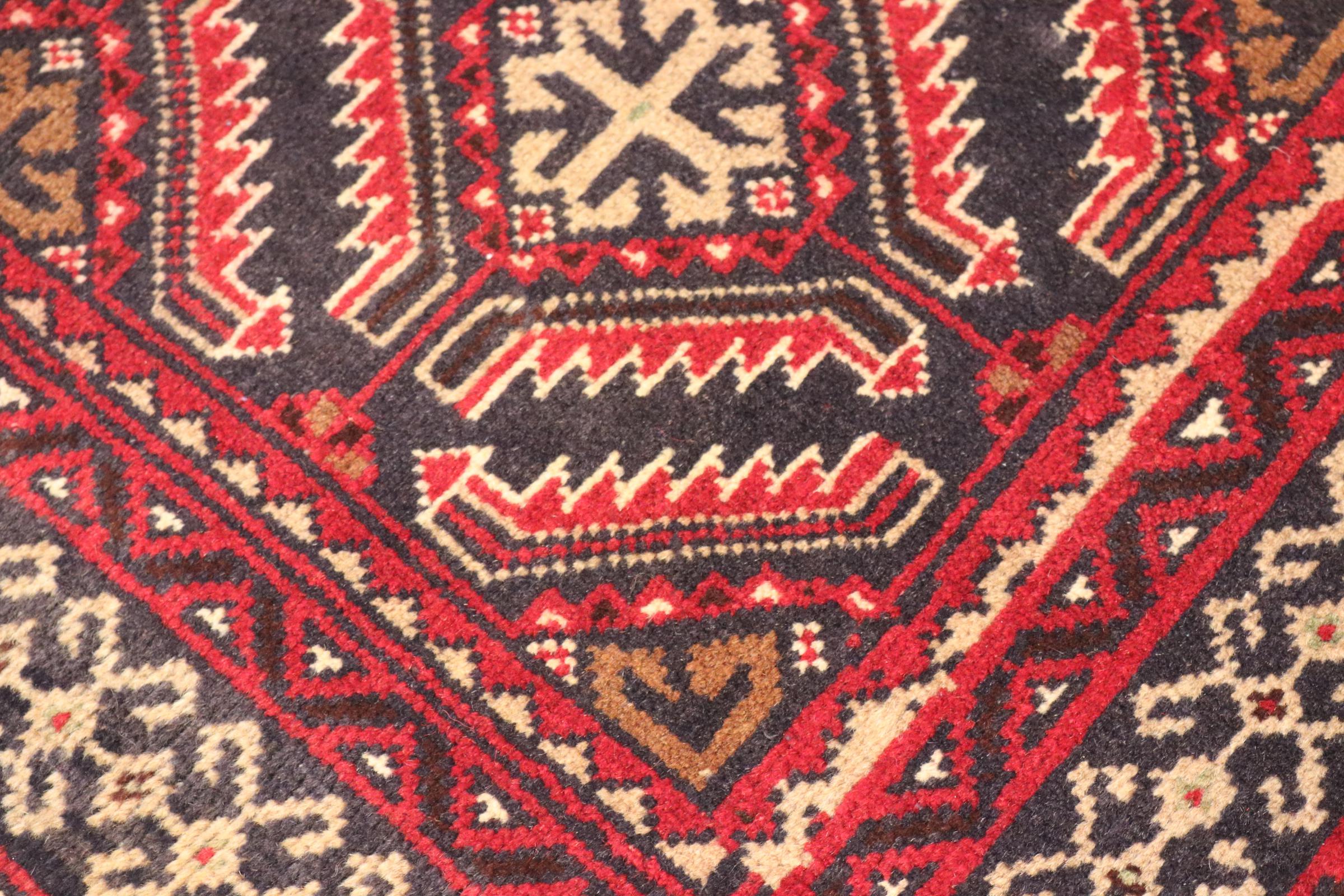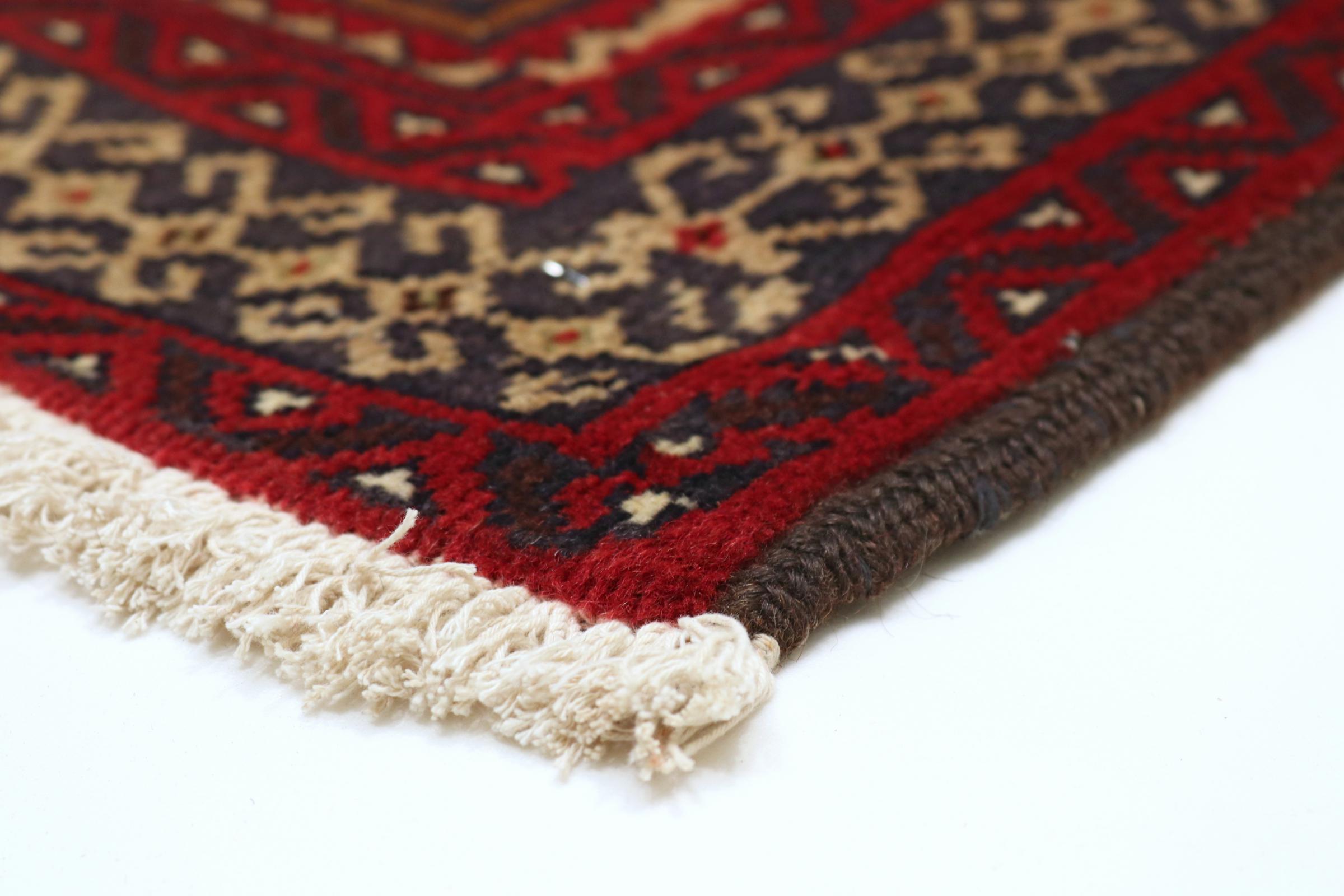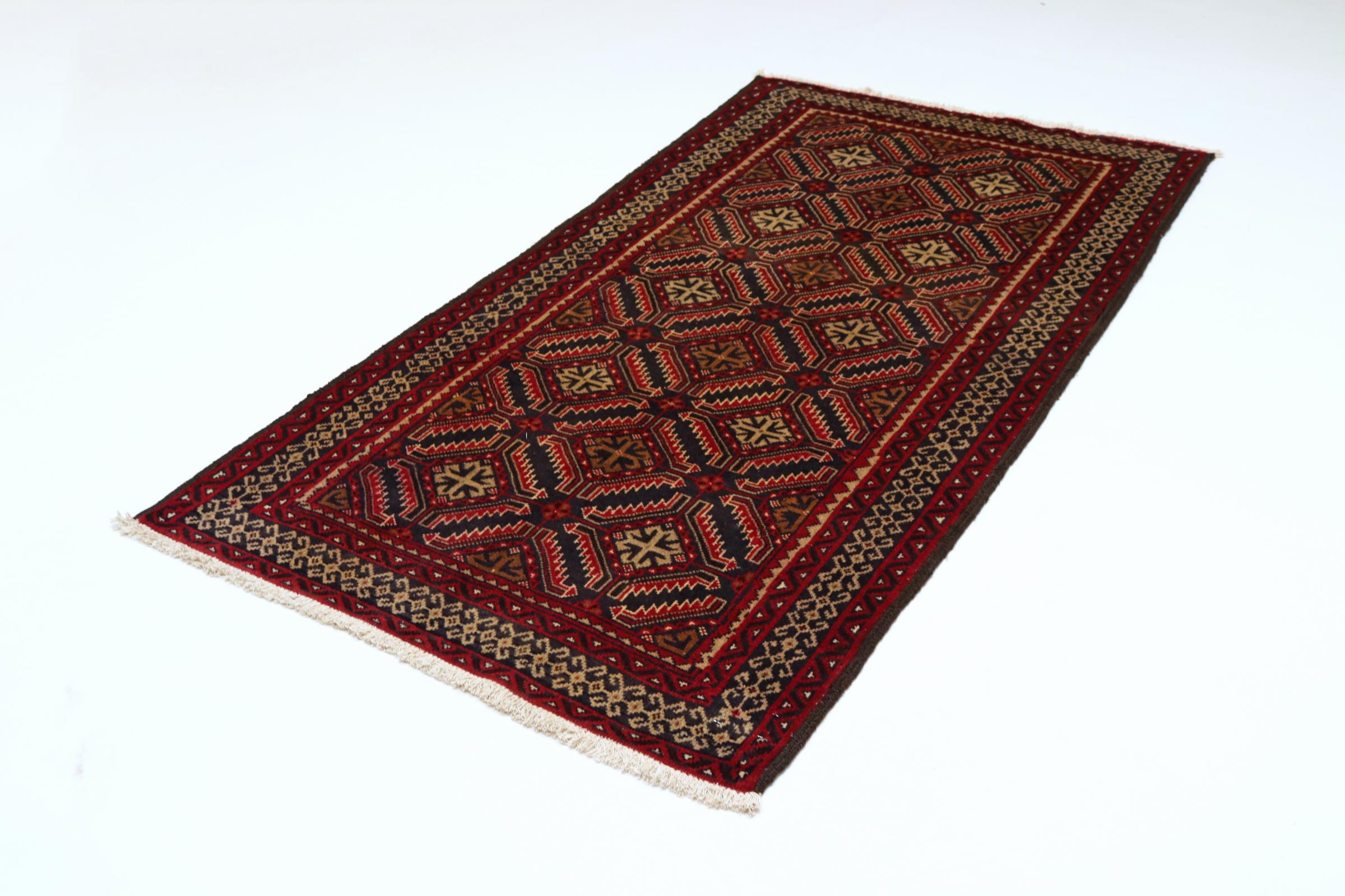 Este tapete Balúchi é um exemplo maravilhoso de arte nómada genuína. Fabricado na região fronteiriça entre o Irão e o Afeganistão, este tapete persa sabe como impressionar graças à sua trama densa e assimétrica. Os padrões vivos fazem dele um verdadeiro banquete para os olhos. Os tons escuros são típicos, espalhando um calor agradável. O seu belo fio natural transmite qualidade e torna-o extremamente durável. Típicos deste tapete são os padrões rectos que fazem dele um tapete nómada distinto.