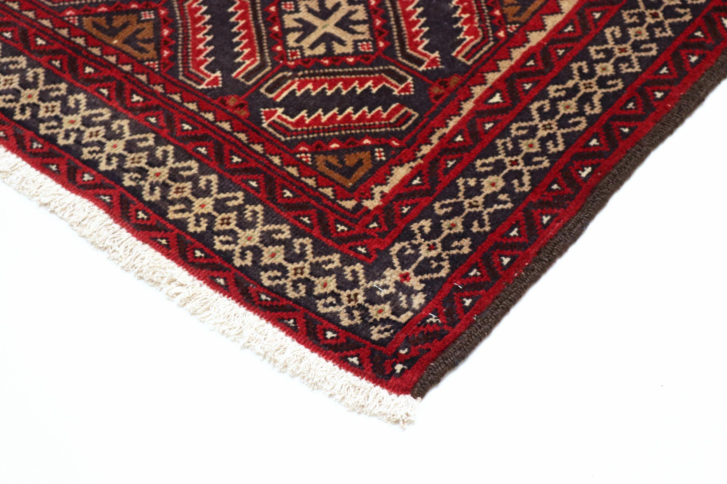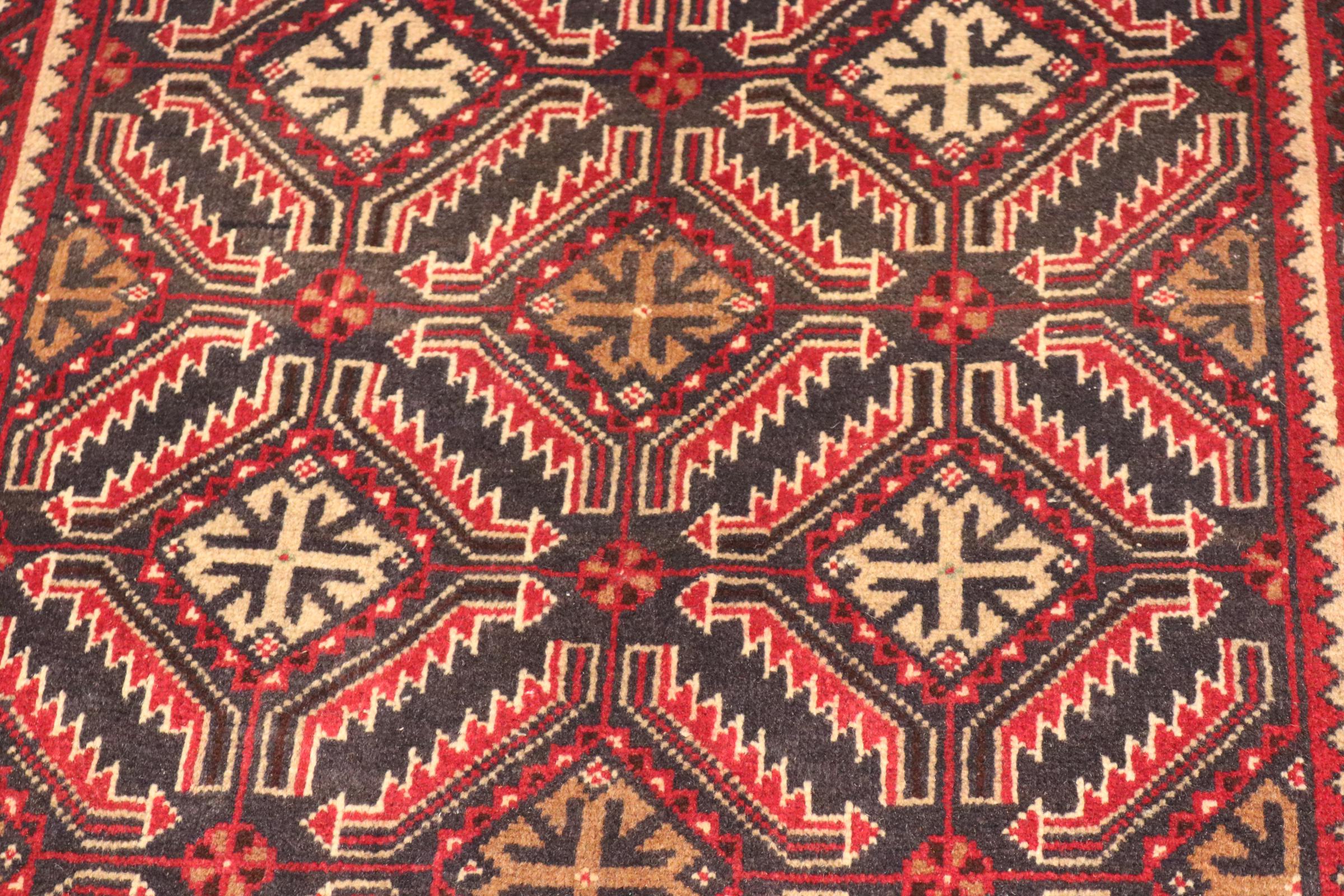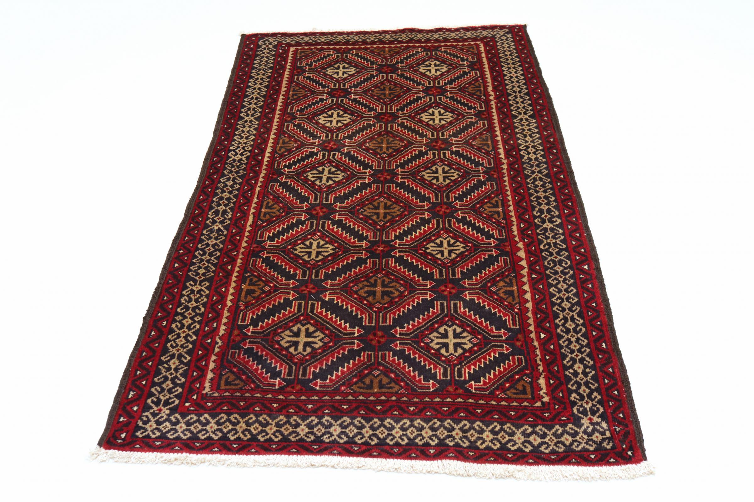 Este tapete Balúchi é um exemplo maravilhoso de arte nómada genuína. Fabricado na região fronteiriça entre o Irão e o Afeganistão, este tapete persa sabe como impressionar graças à sua trama densa e assimétrica. Os padrões vivos fazem dele um verdadeiro banquete para os olhos. Os tons escuros são típicos, espalhando um calor agradável. O seu belo fio natural transmite qualidade e torna-o extremamente durável. Típicos deste tapete são os padrões rectos que fazem dele um tapete nómada distinto.