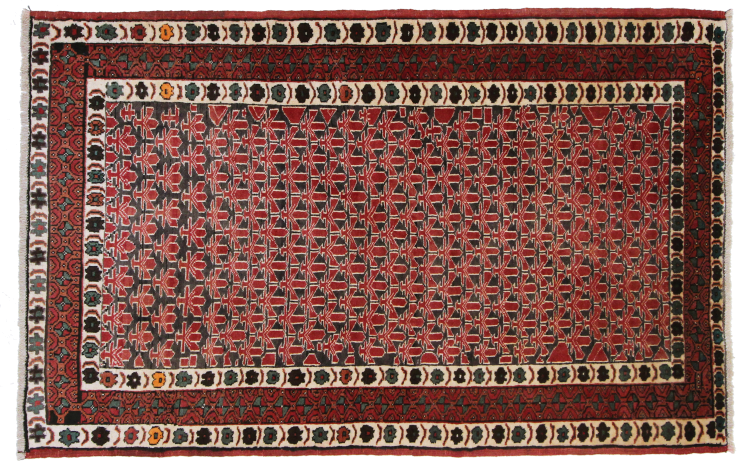 Este tapete pertence a tapetes de aldeia e nómadas do Irão, antiga Pérsia. Este tipo de tapete é atado à mão em cidades mais pequenas e aldeias da velha tradição. Mesmo os nómadas ainda atam tapetes persas ao ar livre. Os tapetes são atados sem padrão e completamente a partir da cabeça. Caracterizam-se por ornamentos clássicos, dispostos em padrões rectos e geométricos. Graças à sua origem cultural-tradicional, estes tapetes têm um carácter único que encarna a antiga Pérsia.
