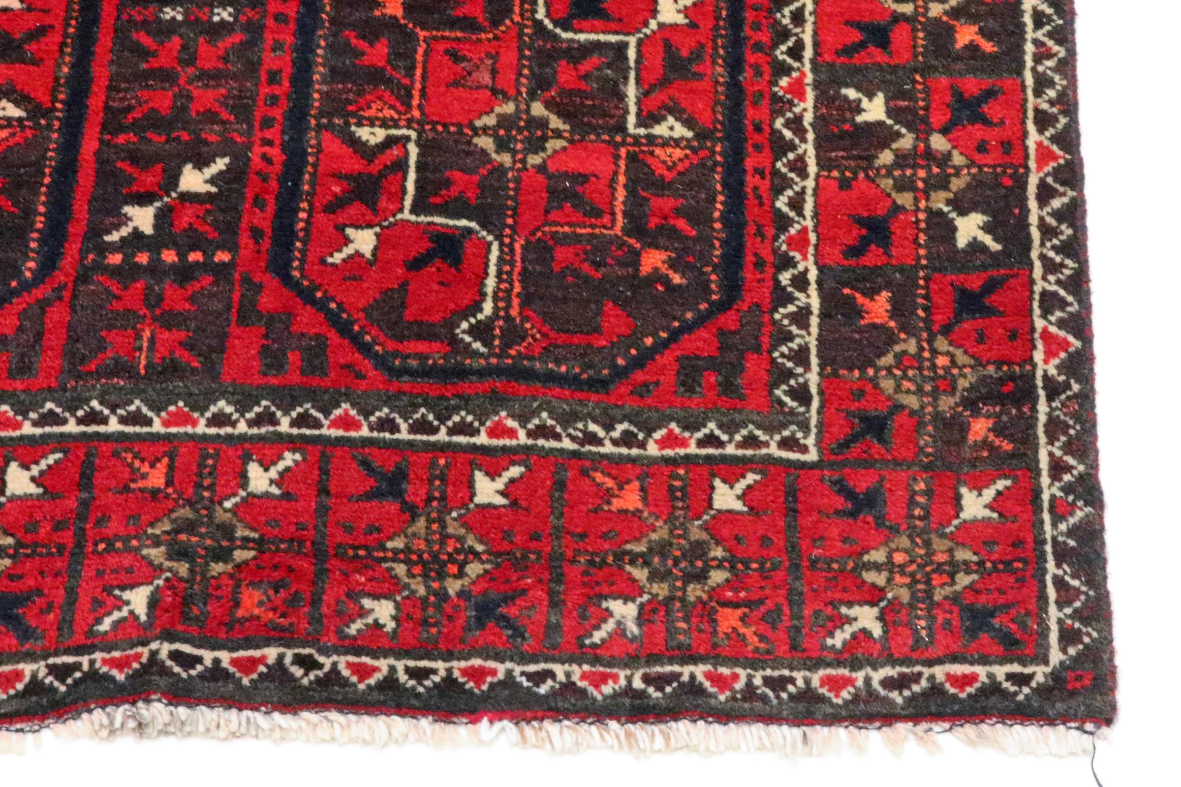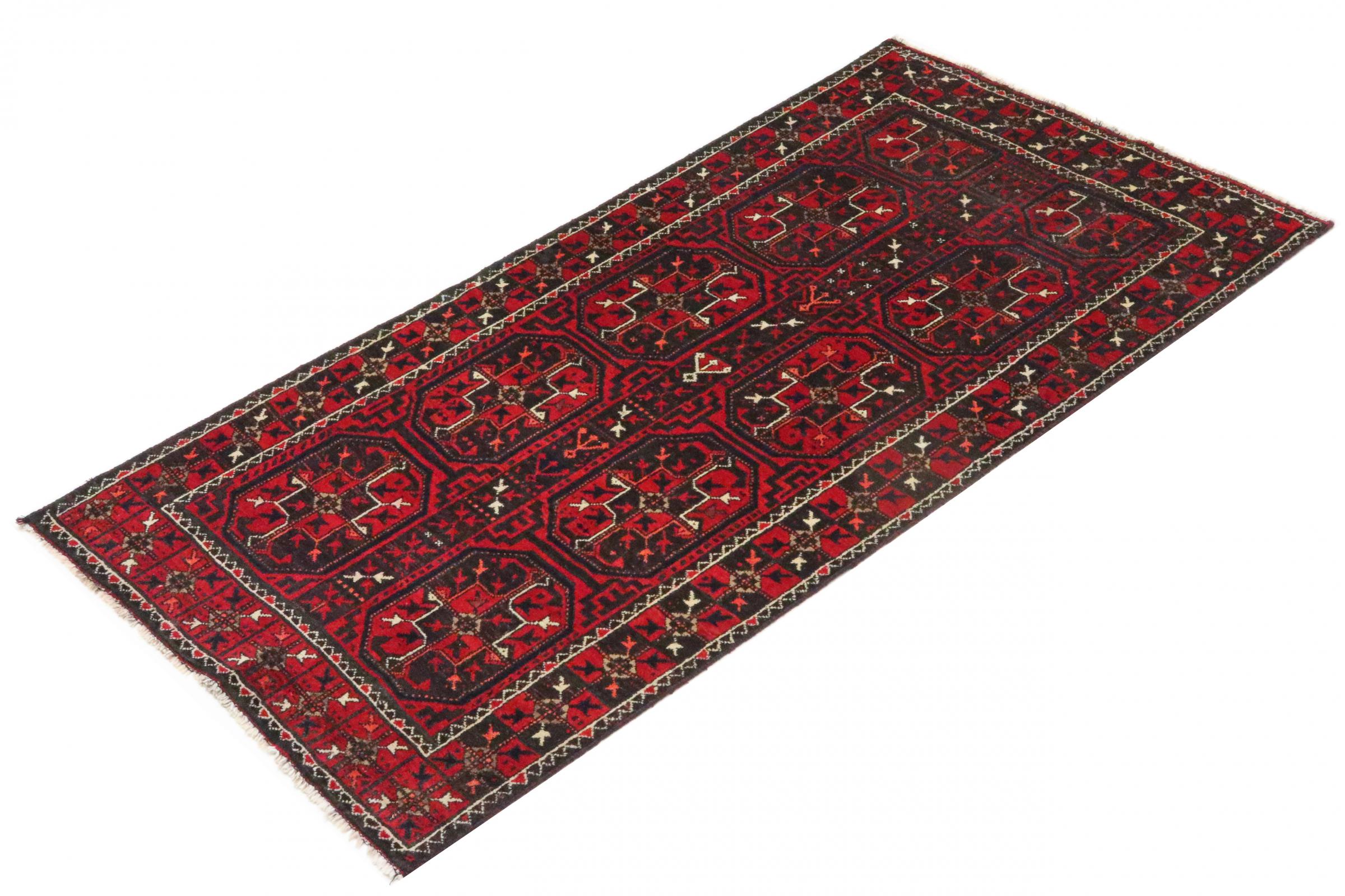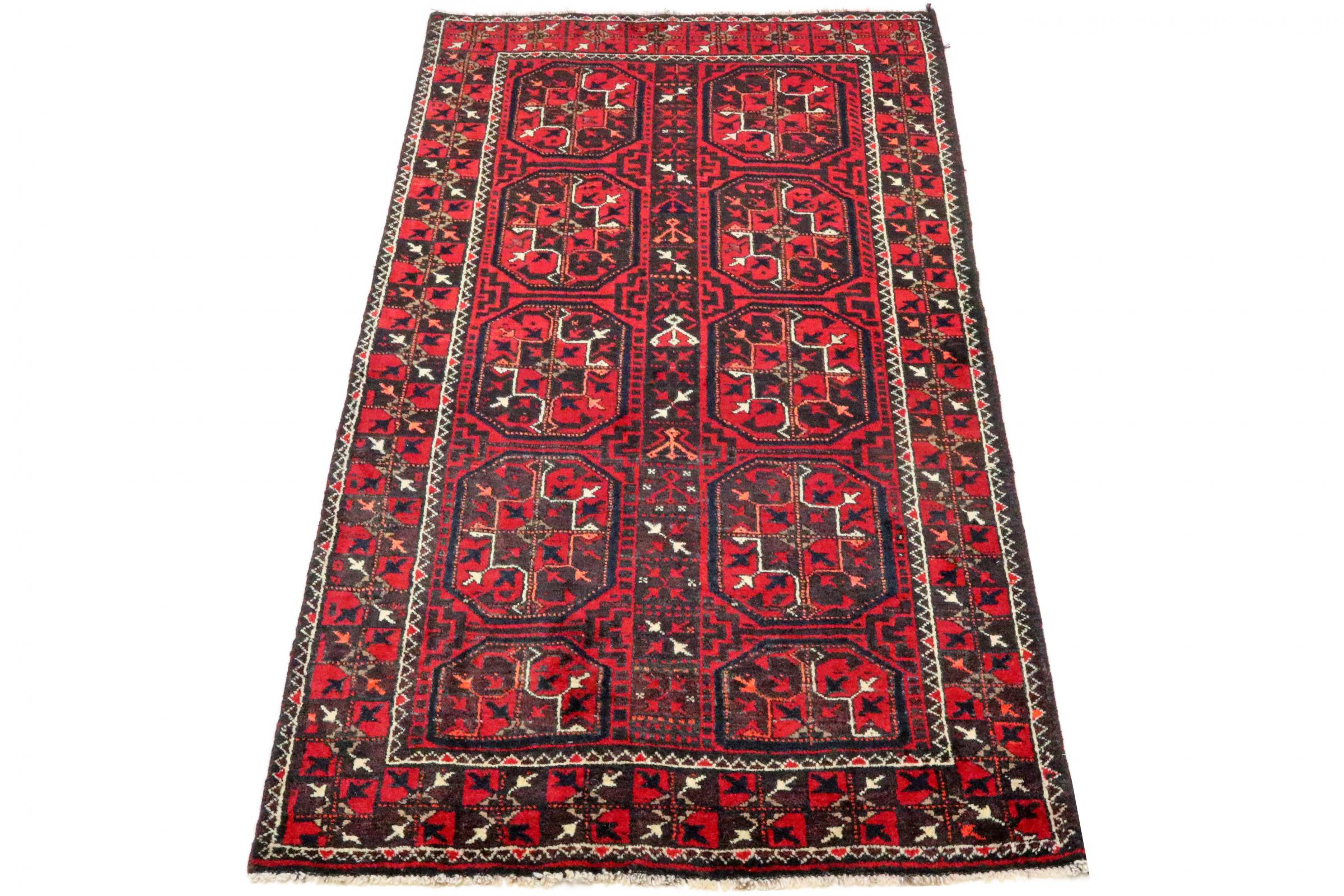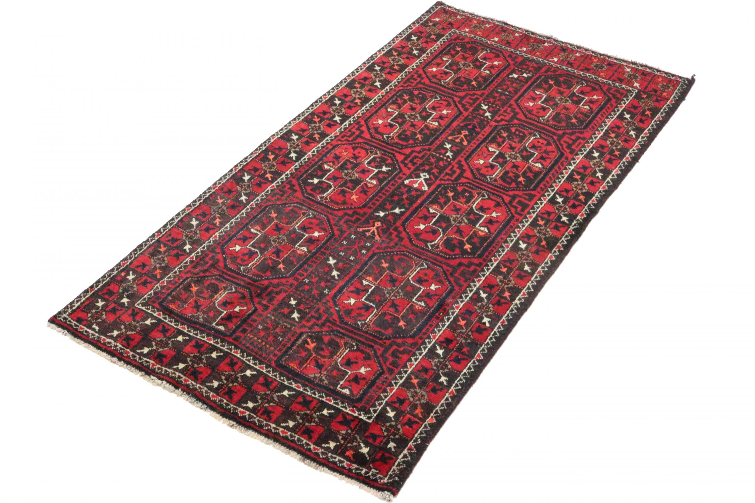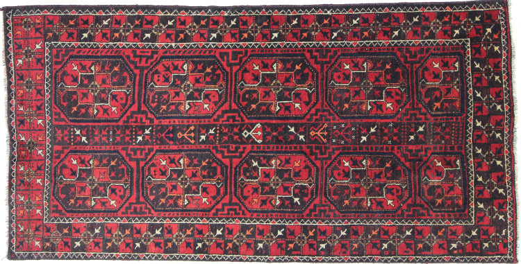 Este tapete Balúchi é um exemplo maravilhoso de arte nómada genuína. Fabricado na região fronteiriça entre o Irão e o Afeganistão, este tapete persa sabe como impressionar graças à sua trama densa e assimétrica. Os padrões vivos fazem dele um verdadeiro banquete para os olhos. Os tons escuros são típicos, espalhando um calor agradável. O seu belo fio natural transmite qualidade e torna-o extremamente durável. Típicos deste tapete são os padrões rectos que fazem dele um tapete nómada distinto.