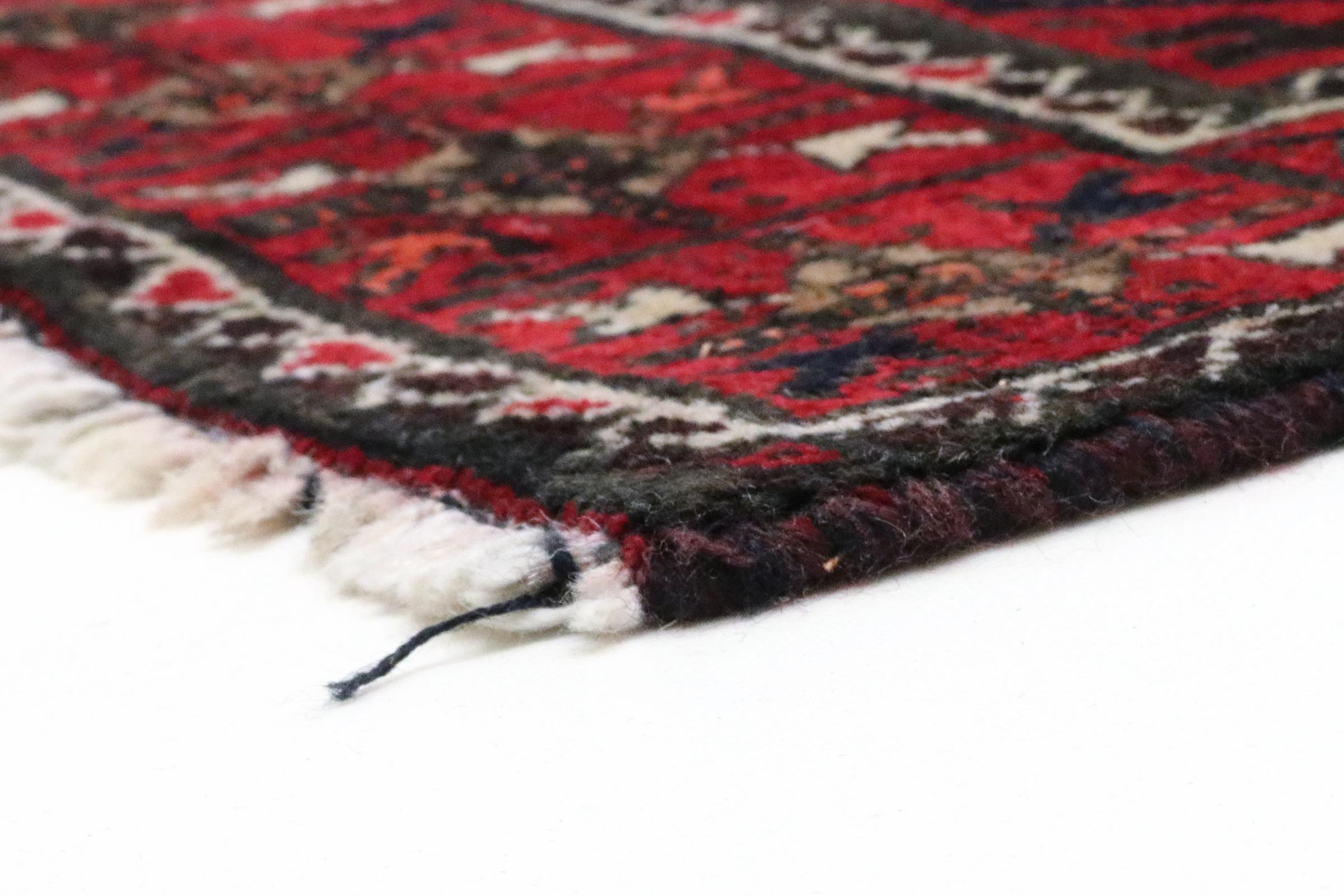 Este tapete pertence a tapetes de aldeia e nómadas do Irão, antiga Pérsia. Este tipo de tapete é atado à mão em cidades mais pequenas e aldeias da velha tradição. Mesmo os nómadas ainda atam tapetes persas ao ar livre. Os tapetes são atados sem padrão e completamente a partir da cabeça. Caracterizam-se por ornamentos clássicos, dispostos em padrões rectos e geométricos. Graças à sua origem cultural-tradicional, estes tapetes têm um carácter único que encarna a antiga Pérsia.