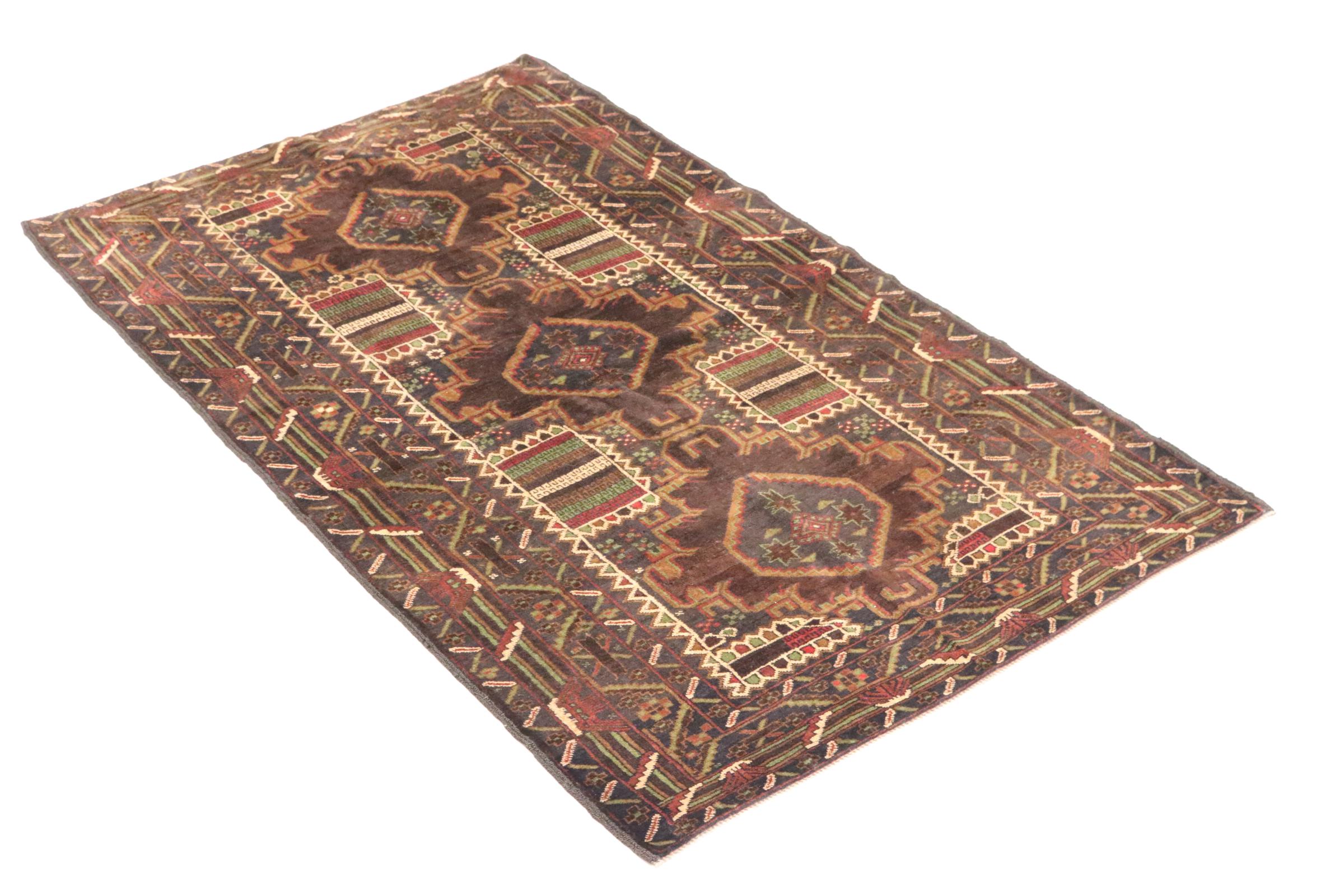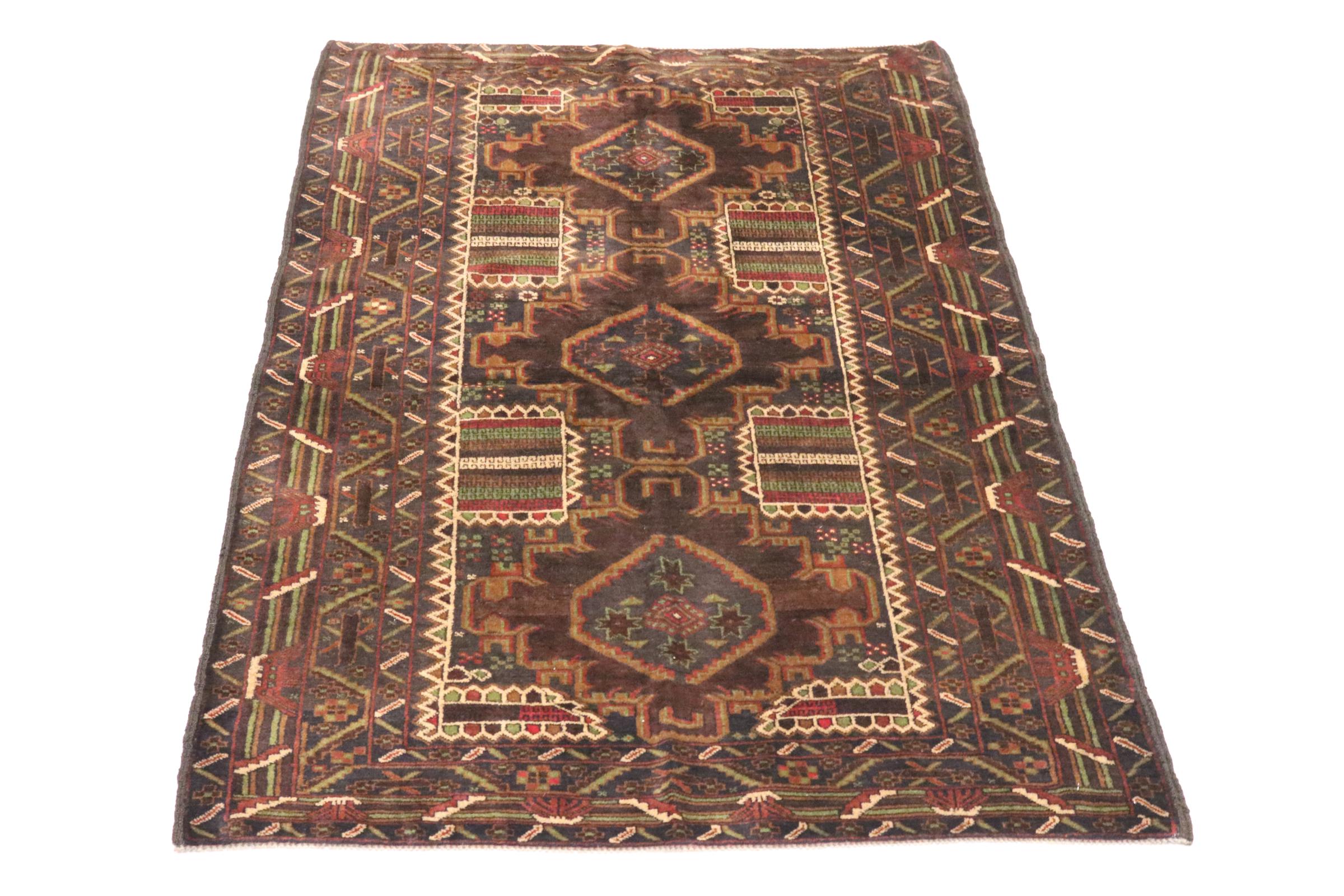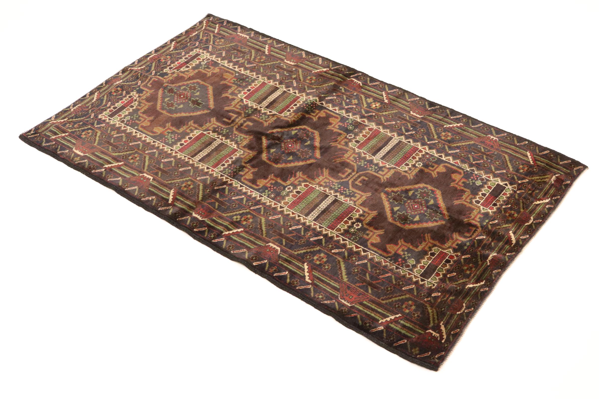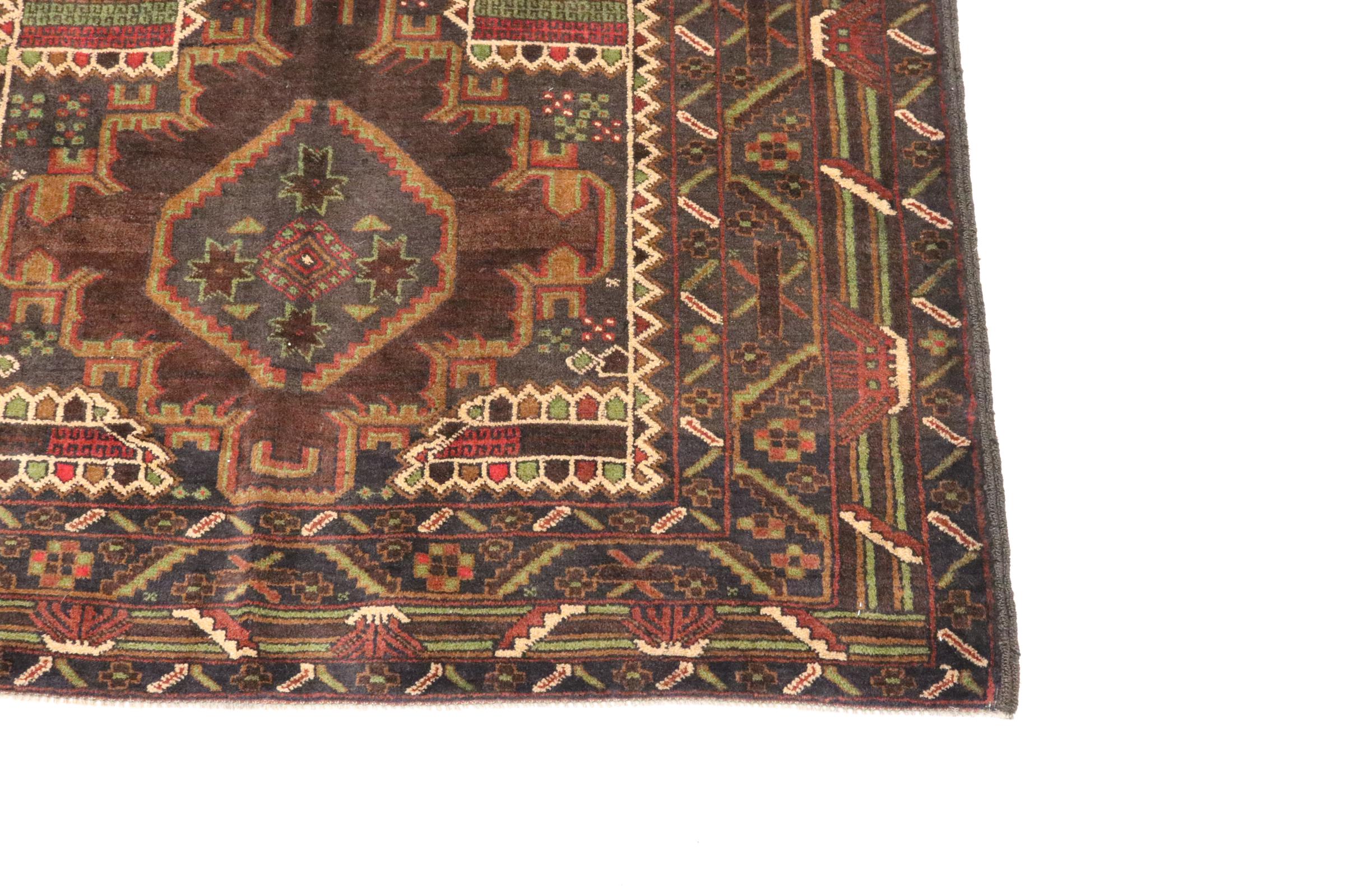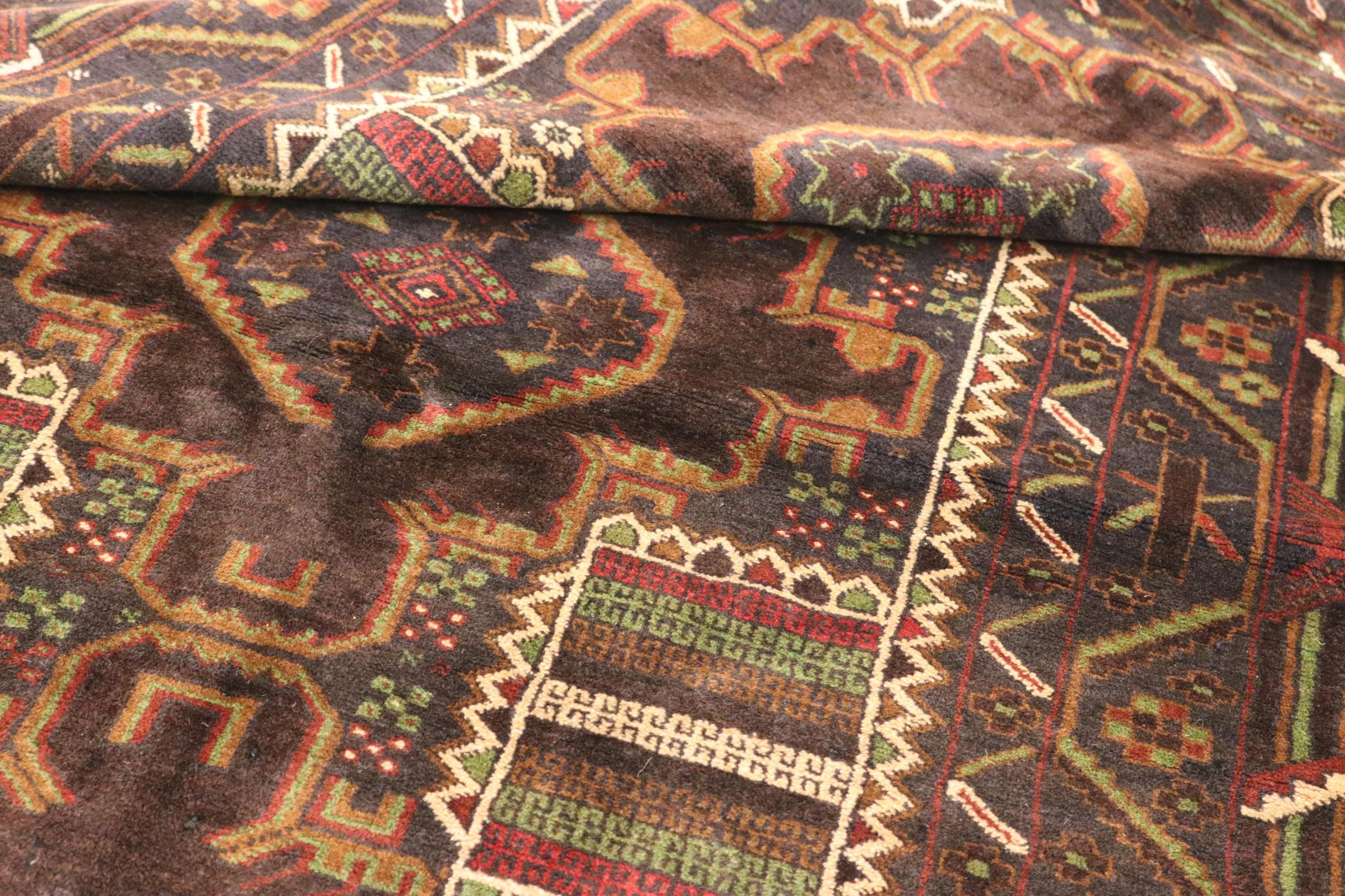 Este tapete Balúchi é um exemplo maravilhoso de arte nómada genuína. Fabricado na região fronteiriça entre o Irão e o Afeganistão, este tapete persa sabe como impressionar graças à sua trama densa e assimétrica. Os padrões vivos fazem dele um verdadeiro banquete para os olhos. Os tons escuros são típicos, espalhando um calor agradável. O seu belo fio natural transmite qualidade e torna-o extremamente durável. Típicos deste tapete são os padrões rectos que fazem dele um tapete nómada distinto.