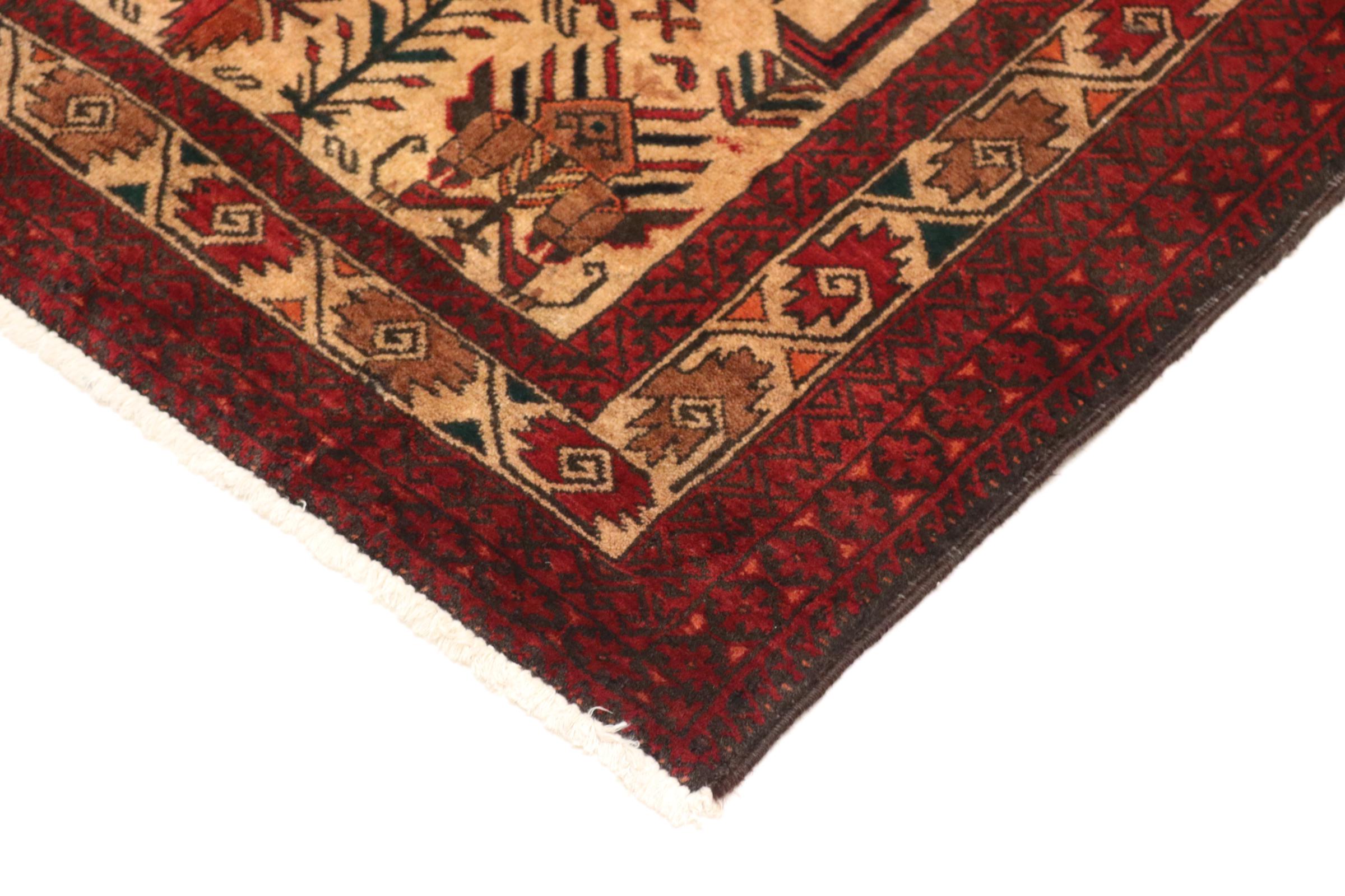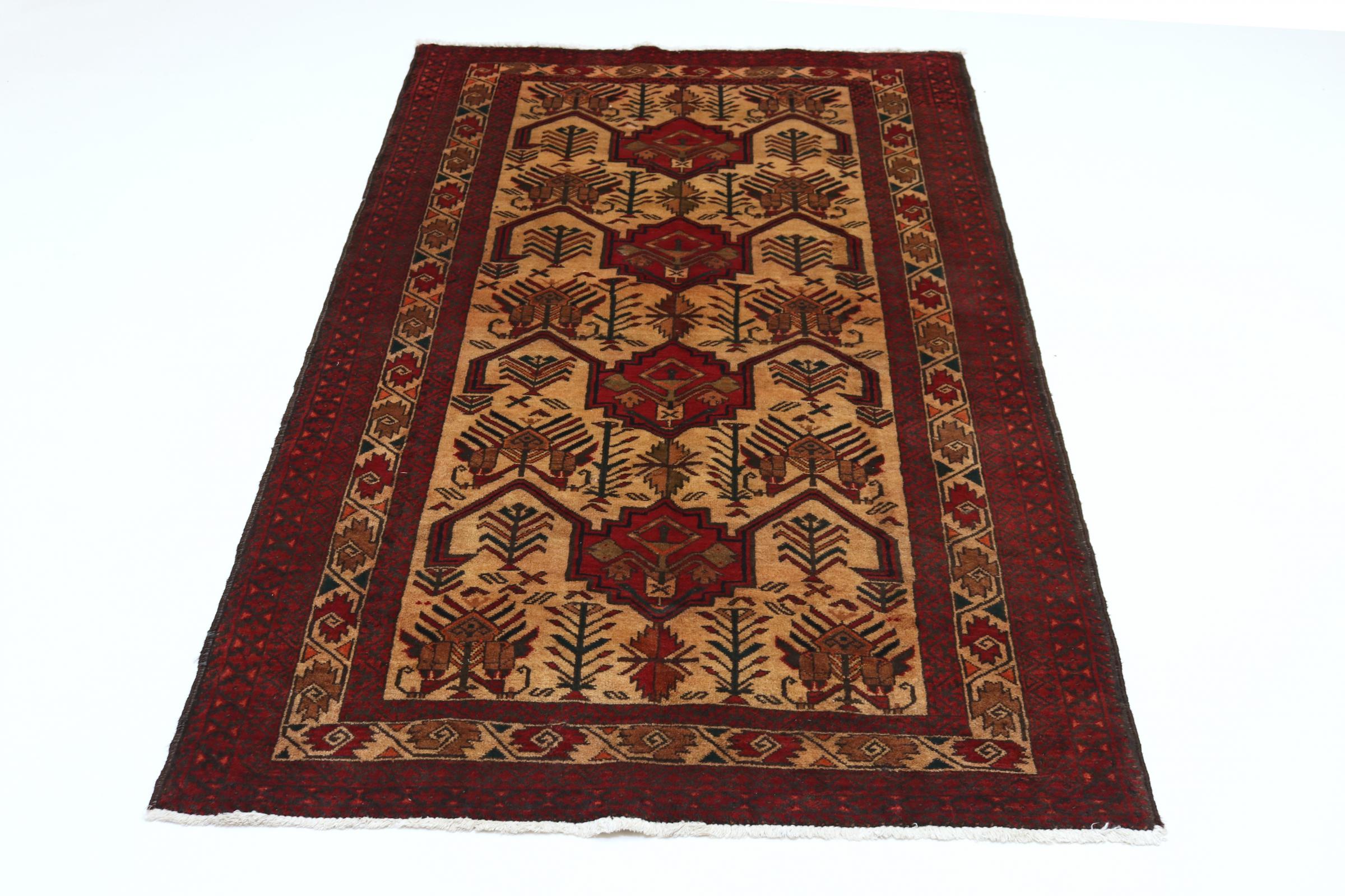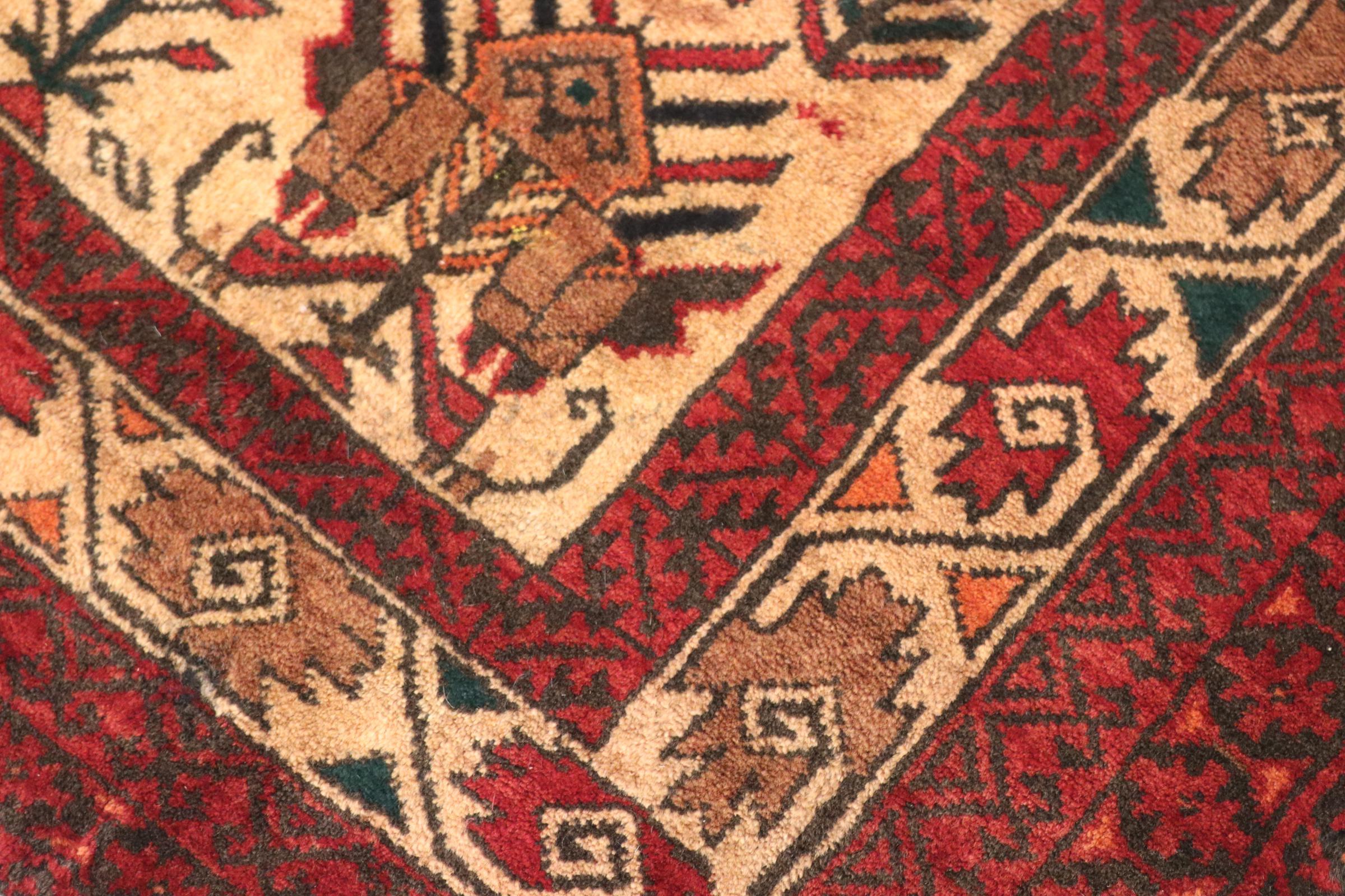 Este tapete Balúchi é um exemplo maravilhoso de arte nómada genuína. Fabricado na região fronteiriça entre o Irão e o Afeganistão, este tapete persa sabe como impressionar graças à sua trama densa e assimétrica. Os padrões vivos fazem dele um verdadeiro banquete para os olhos. Os tons escuros são típicos, espalhando um calor agradável. O seu belo fio natural transmite qualidade e torna-o extremamente durável. Típicos deste tapete são os padrões rectos que fazem dele um tapete nómada distinto.